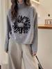 Suéter de Cuello Alto de Cachemira Pura con Patrón Jacquard Vintage Europeo para Mujer, Estilo Coreano, Combinable con Todo, Bajo Suelto, Cálido Suéter de Punto