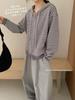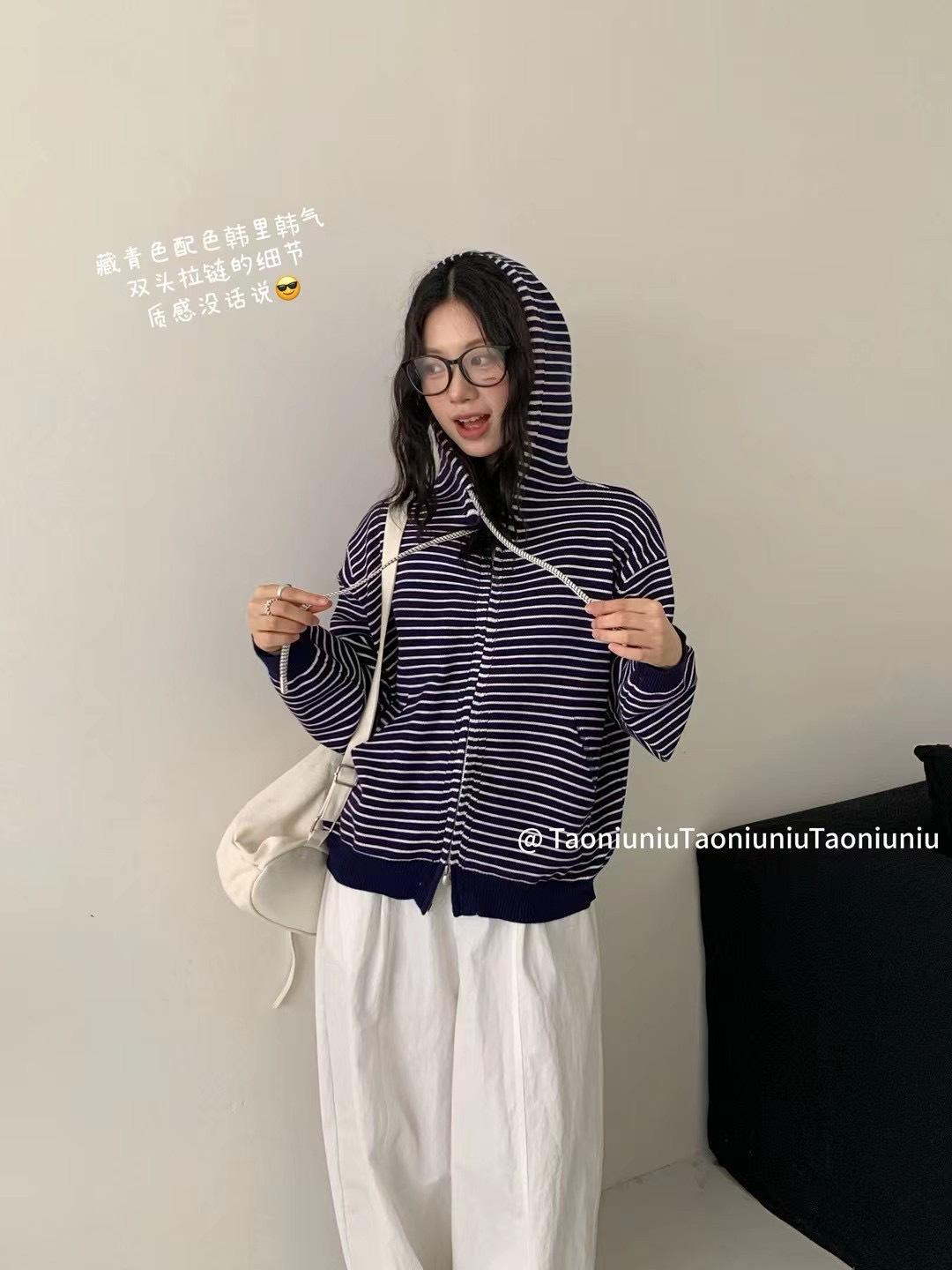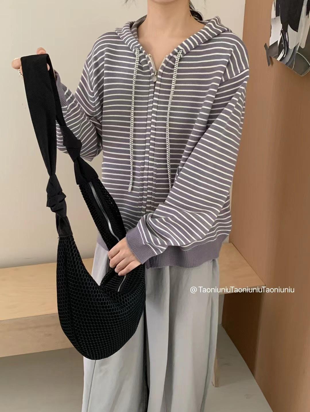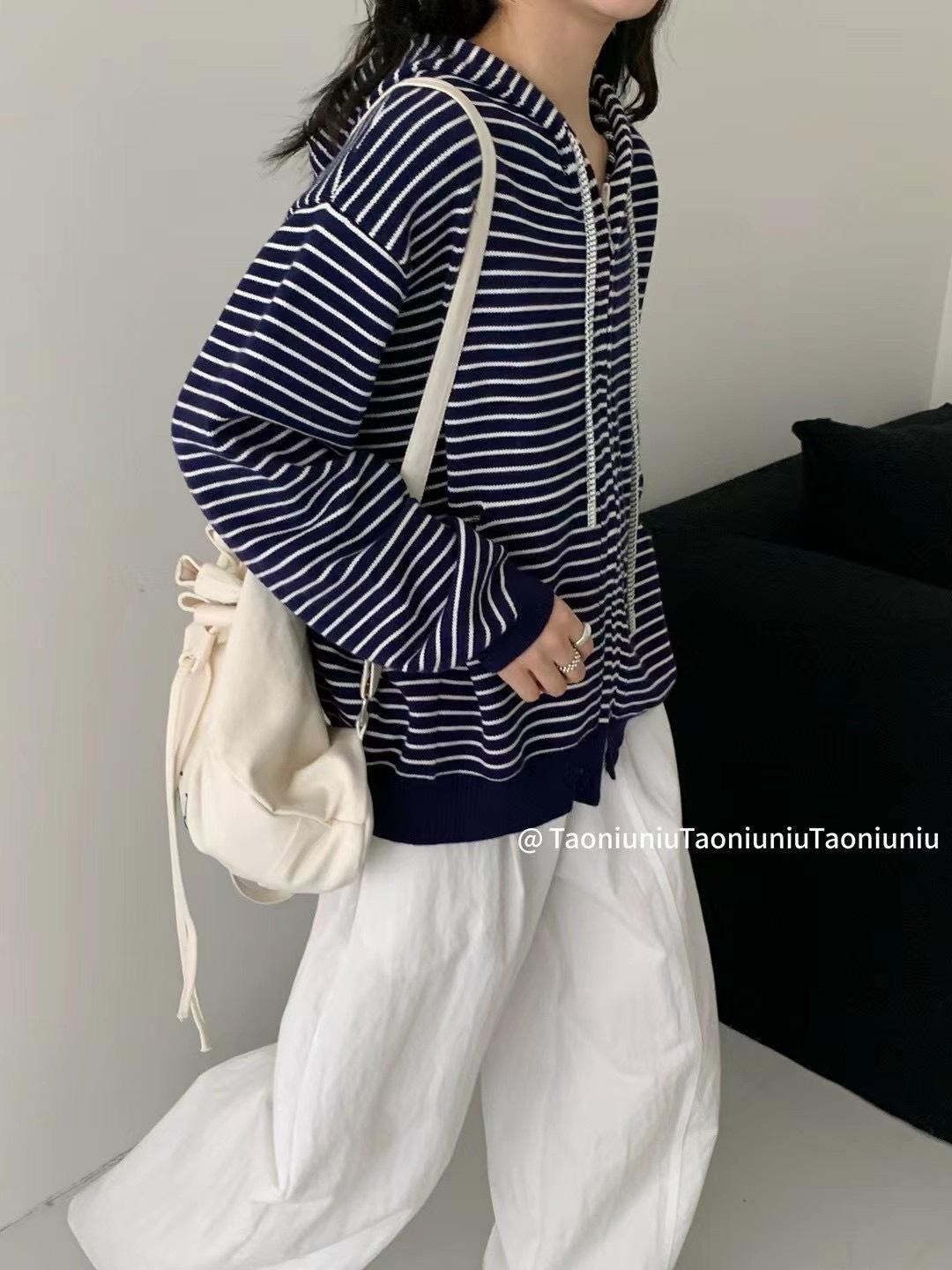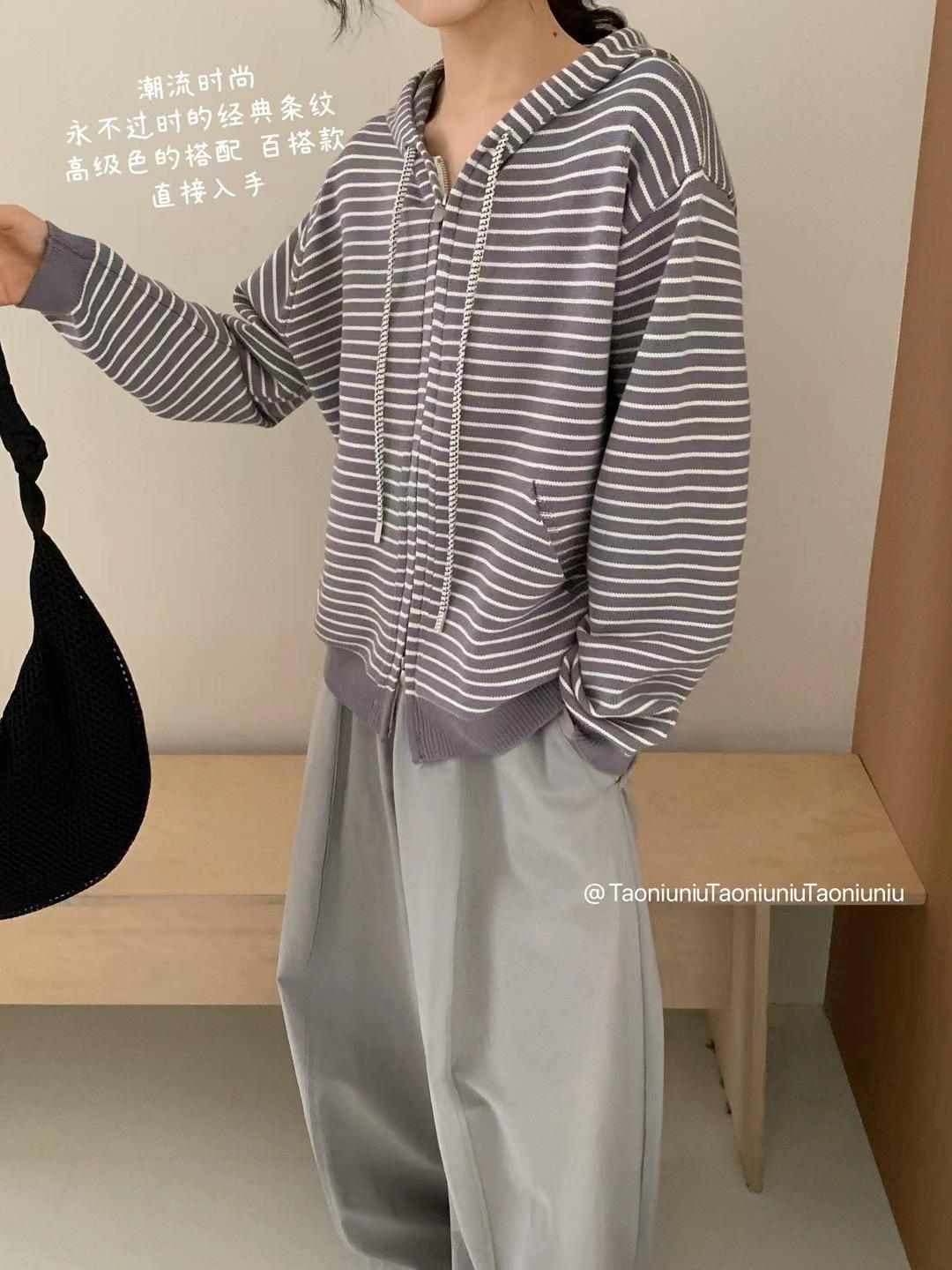 Cárdigan con cremallera para mujer Suéter a rayas 2025 Otoño/Invierno Nuevo estilo coreano Suelto Casual con capucha Manga larga Top Ropa exterior