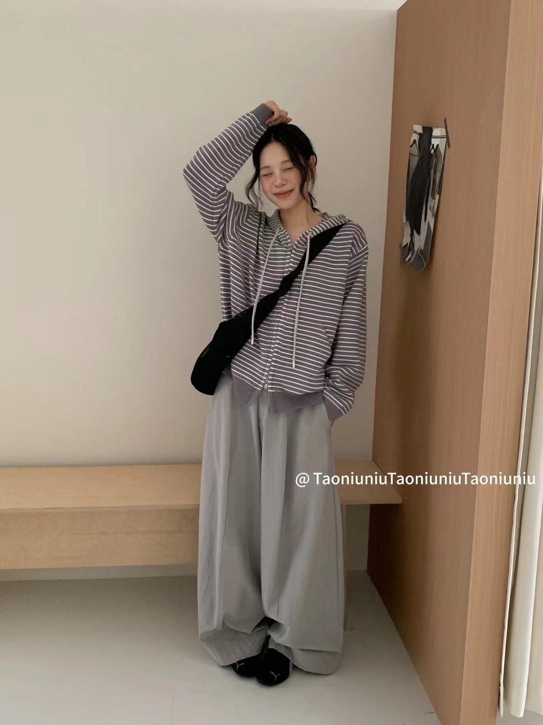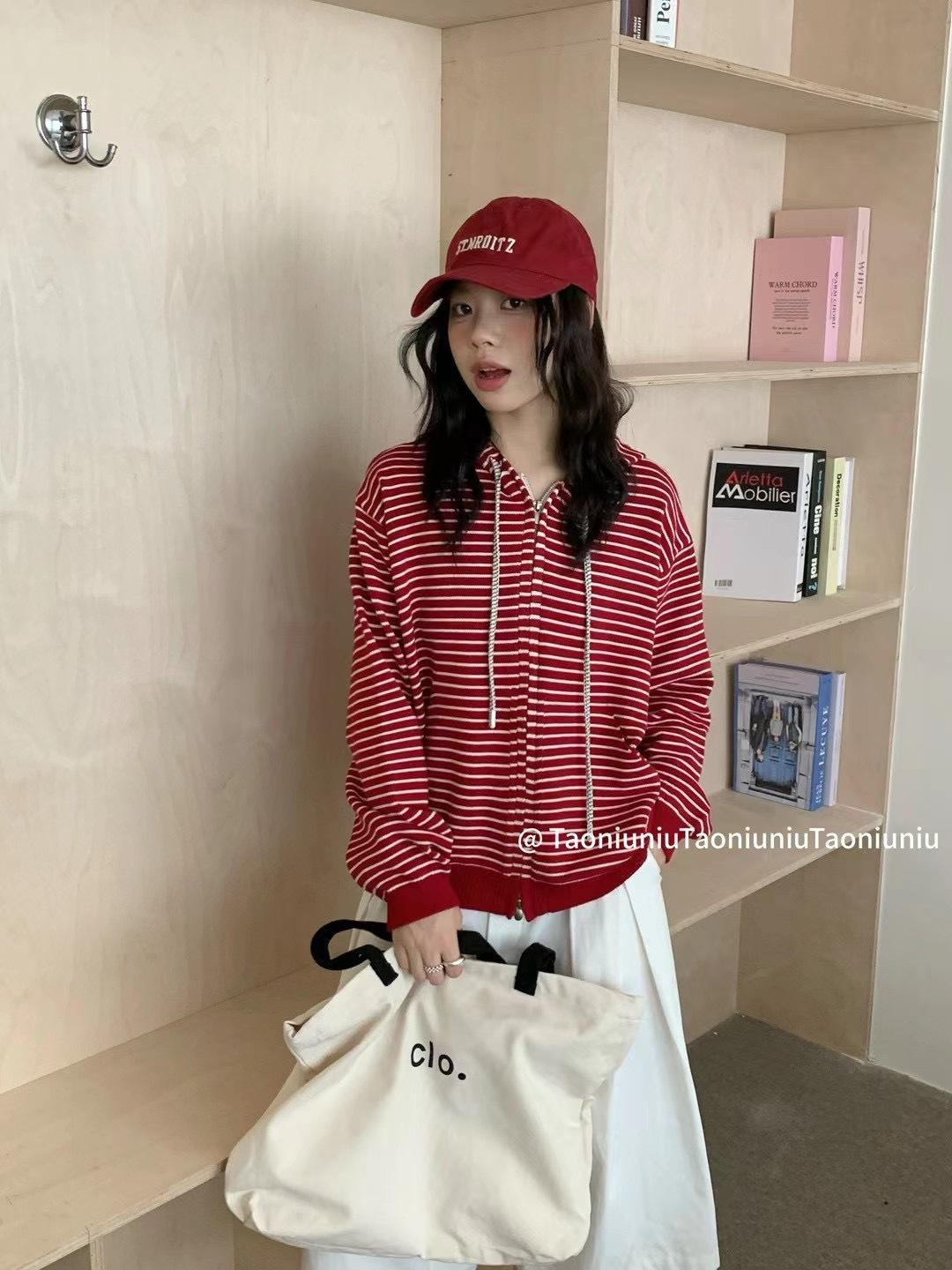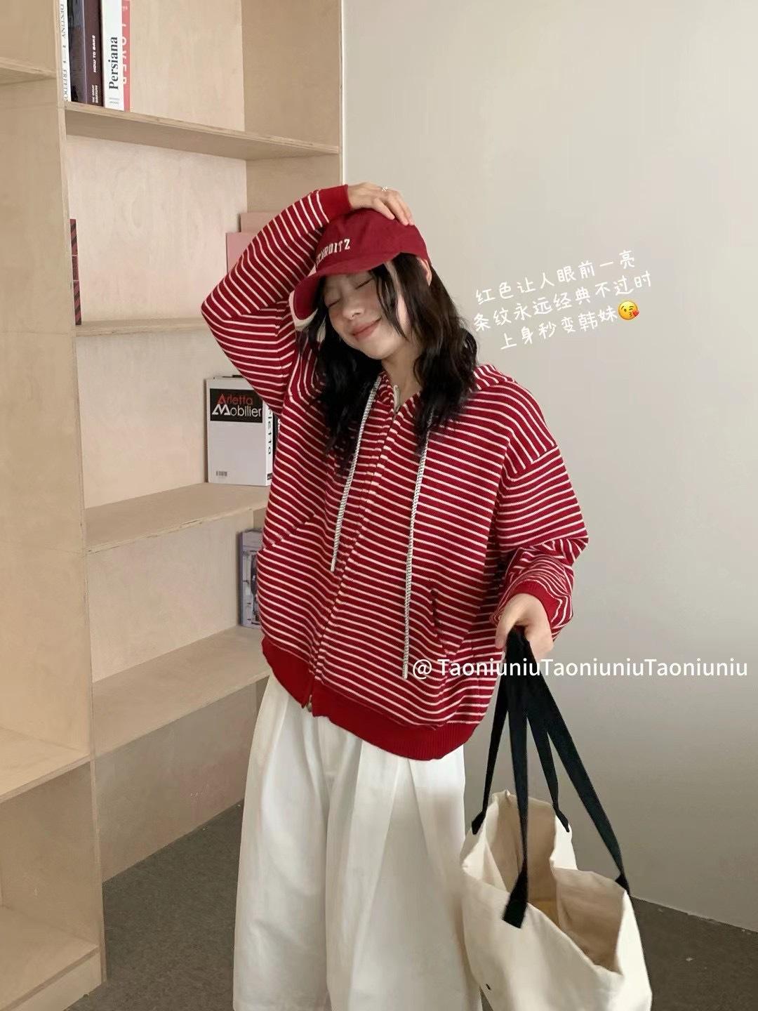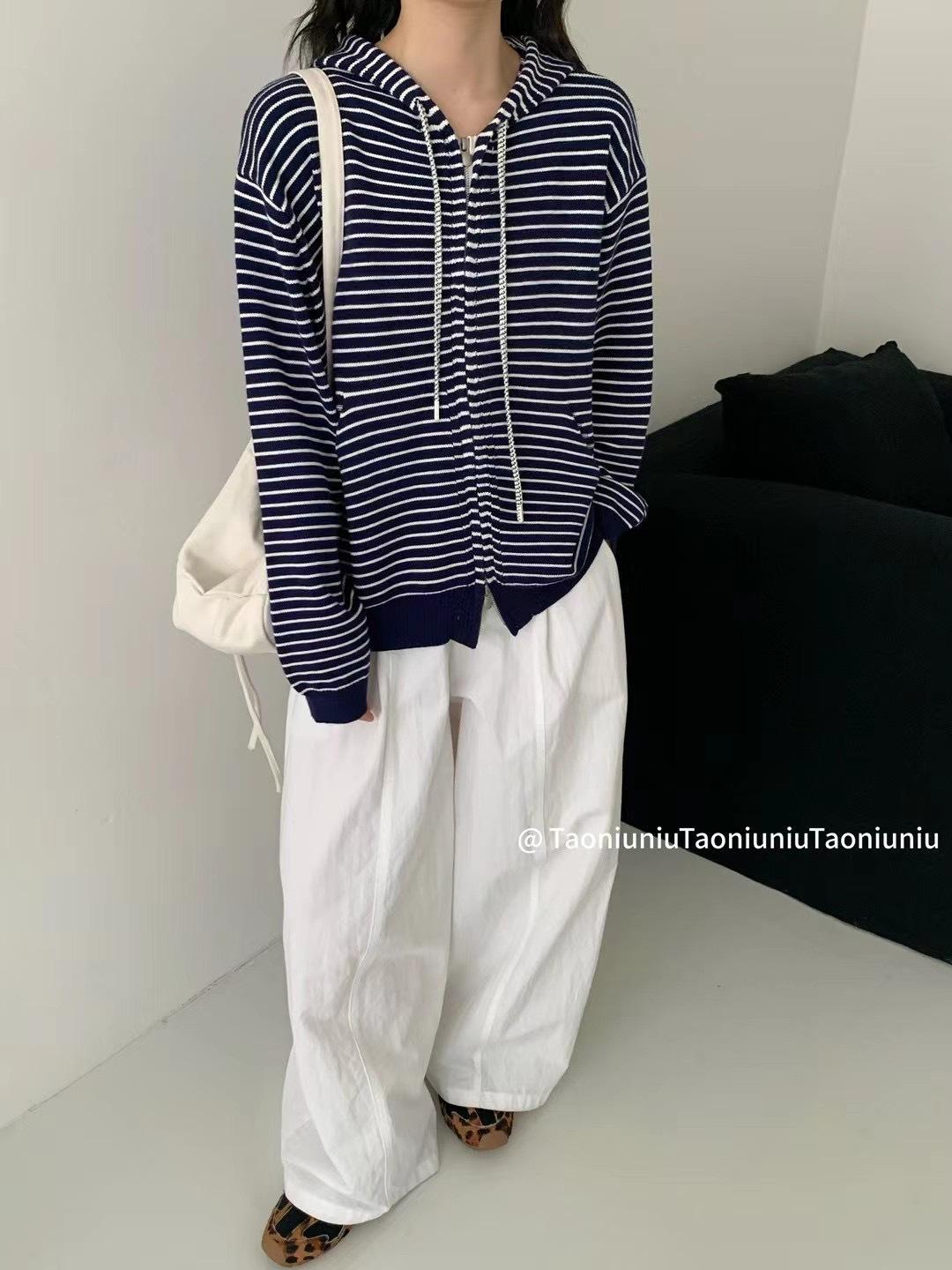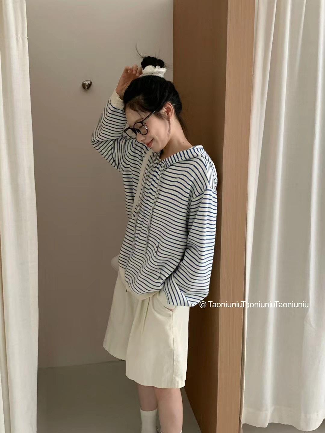 Cárdigan con cremallera para mujer Suéter a rayas 2025 Otoño/Invierno Nuevo estilo coreano Suelto Casual con capucha Manga larga Top Ropa exterior