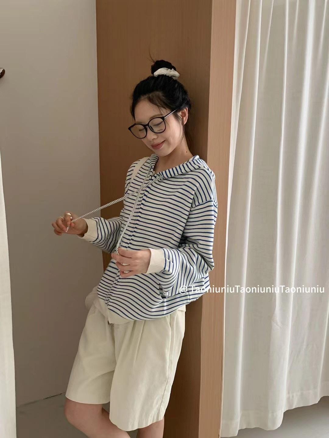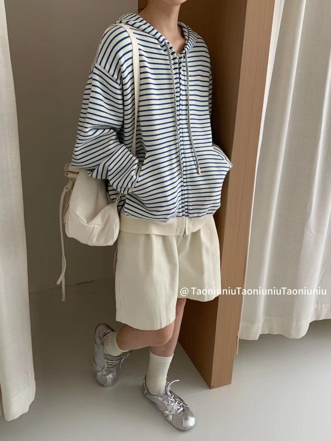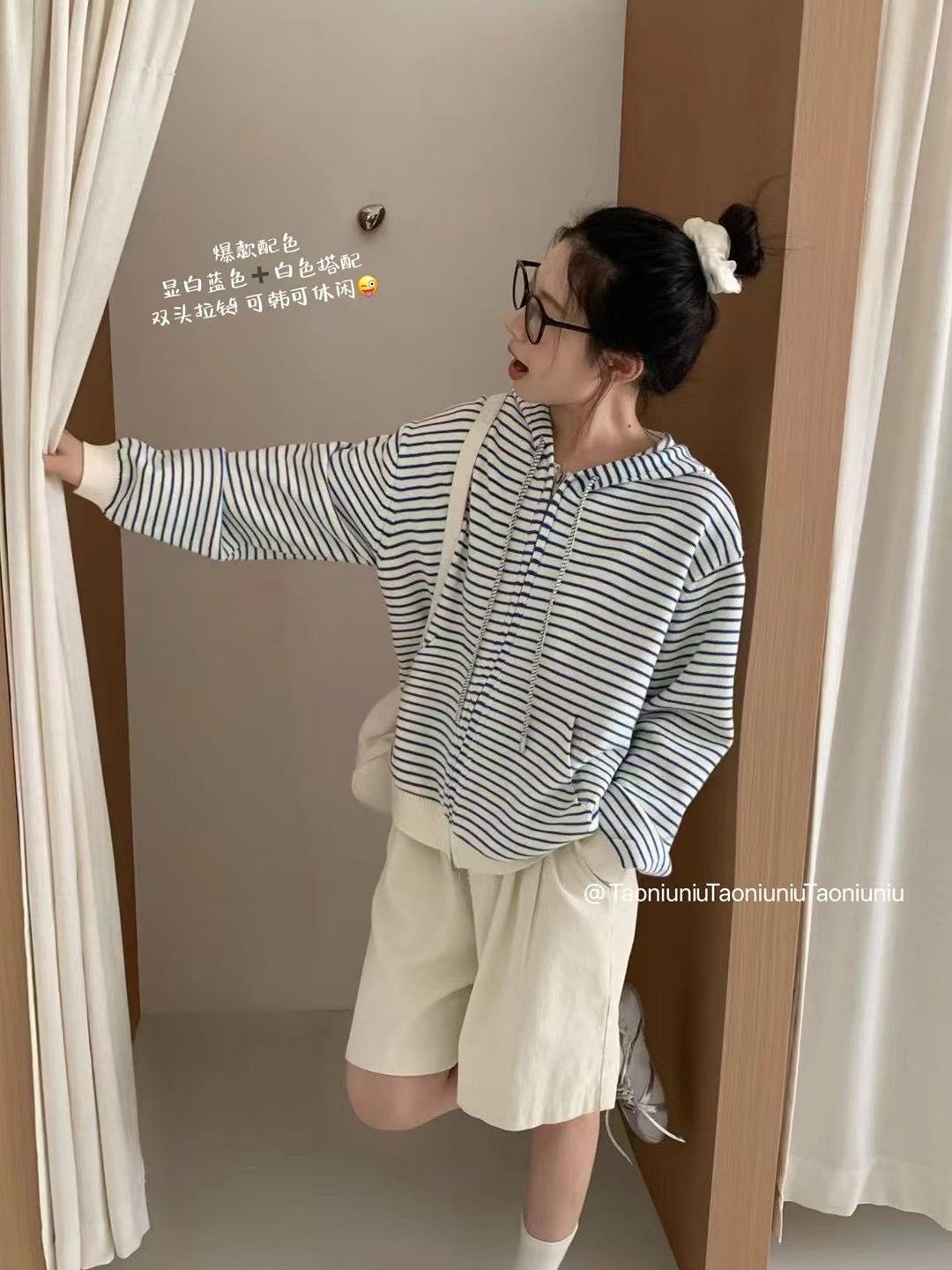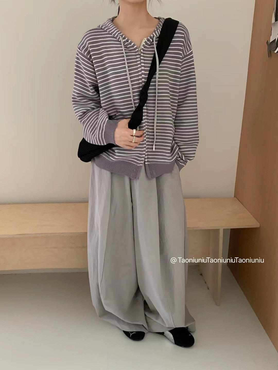 Cárdigan con cremallera para mujer Suéter a rayas 2025 Otoño/Invierno Nuevo estilo coreano Suelto Casual con capucha Manga larga Top Ropa exterior