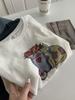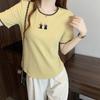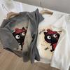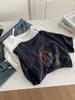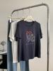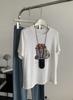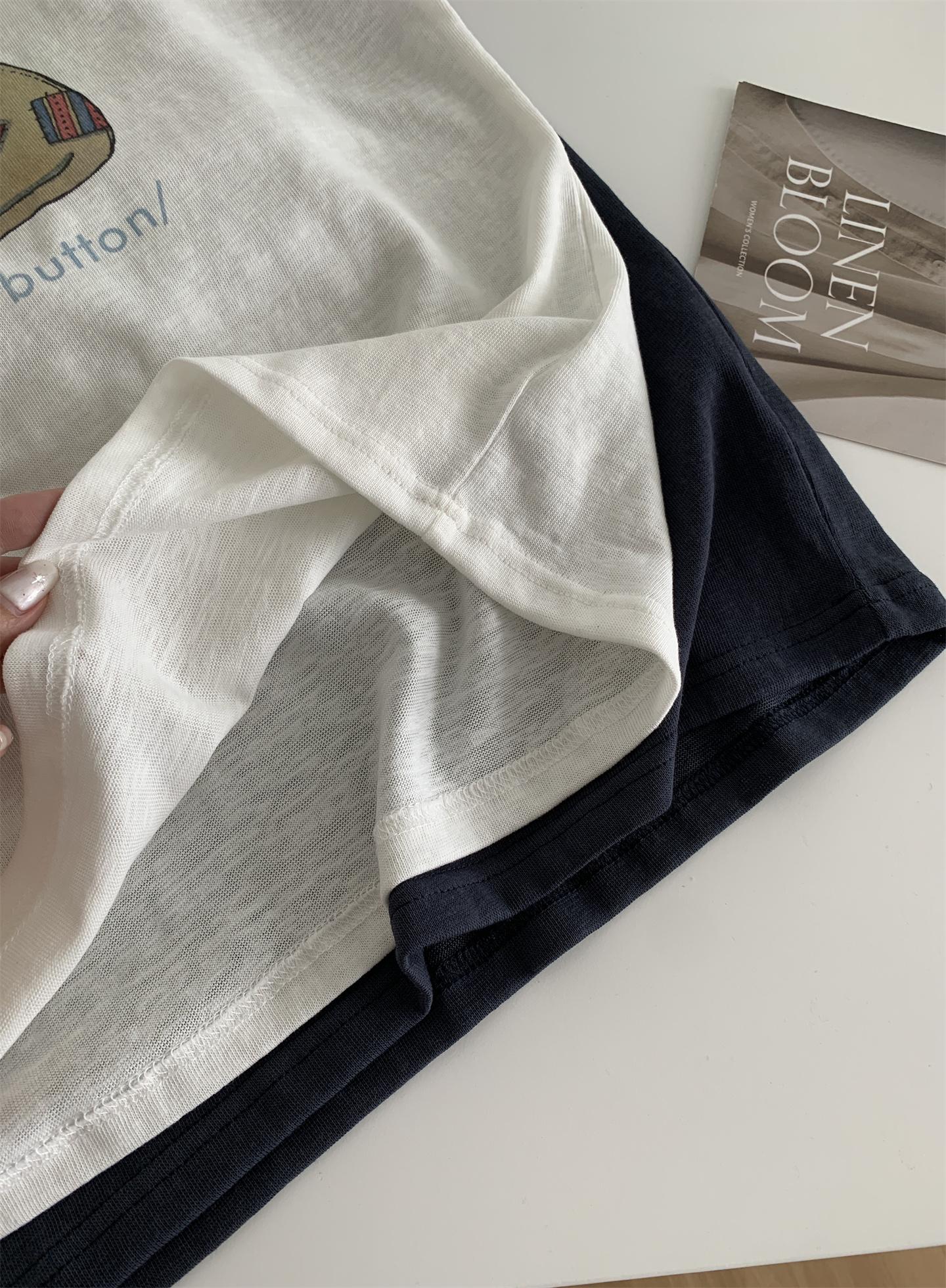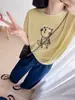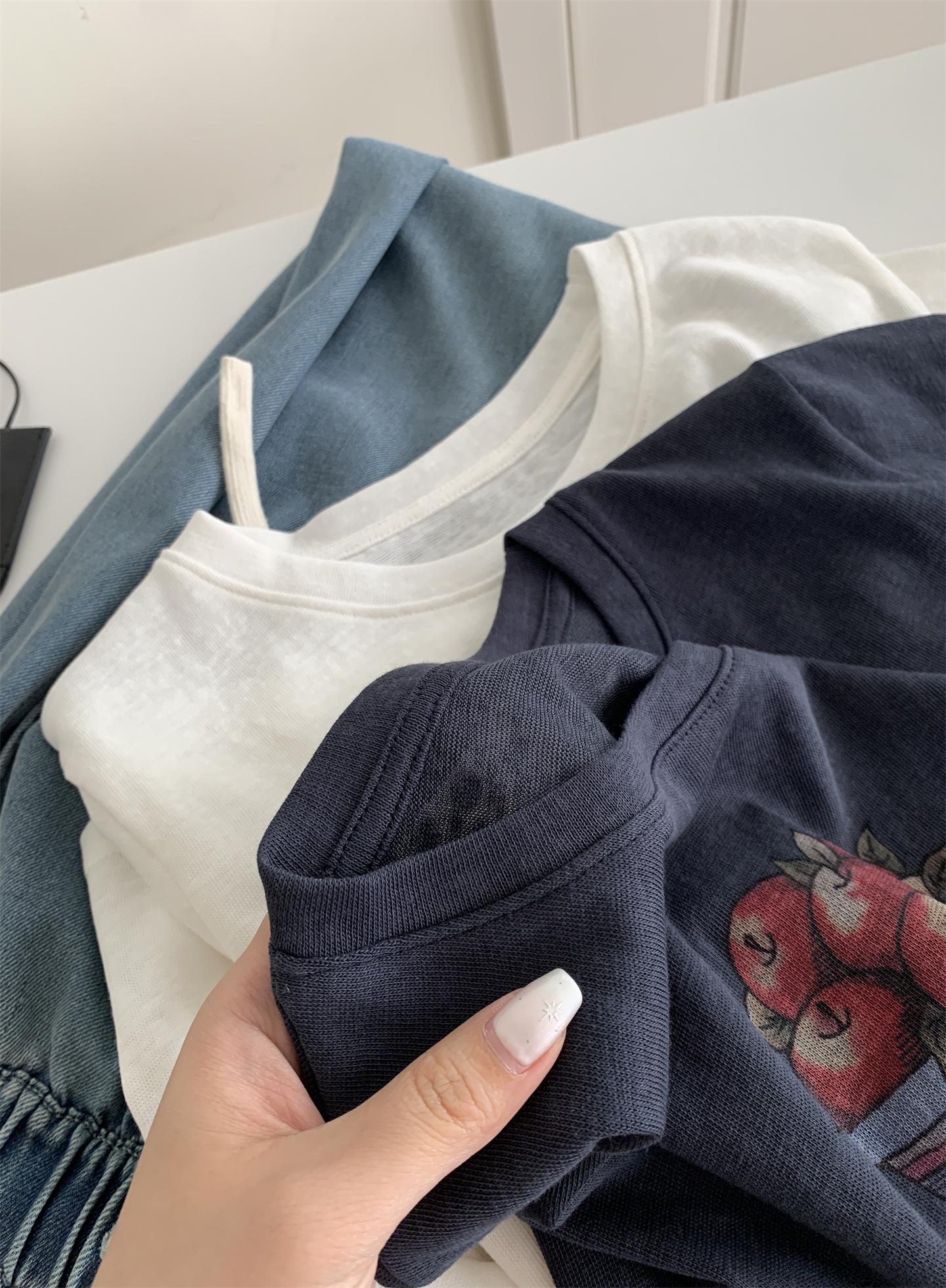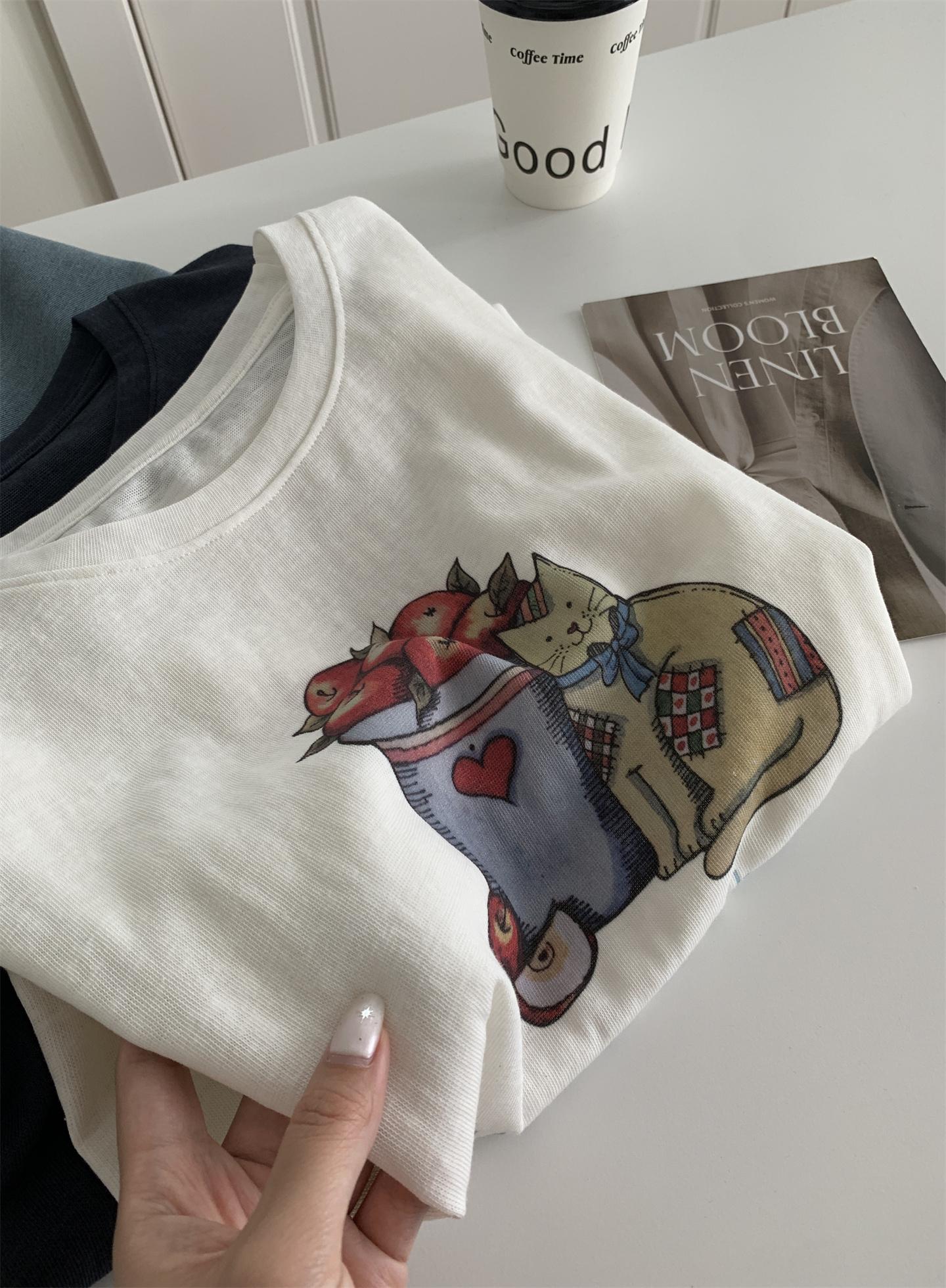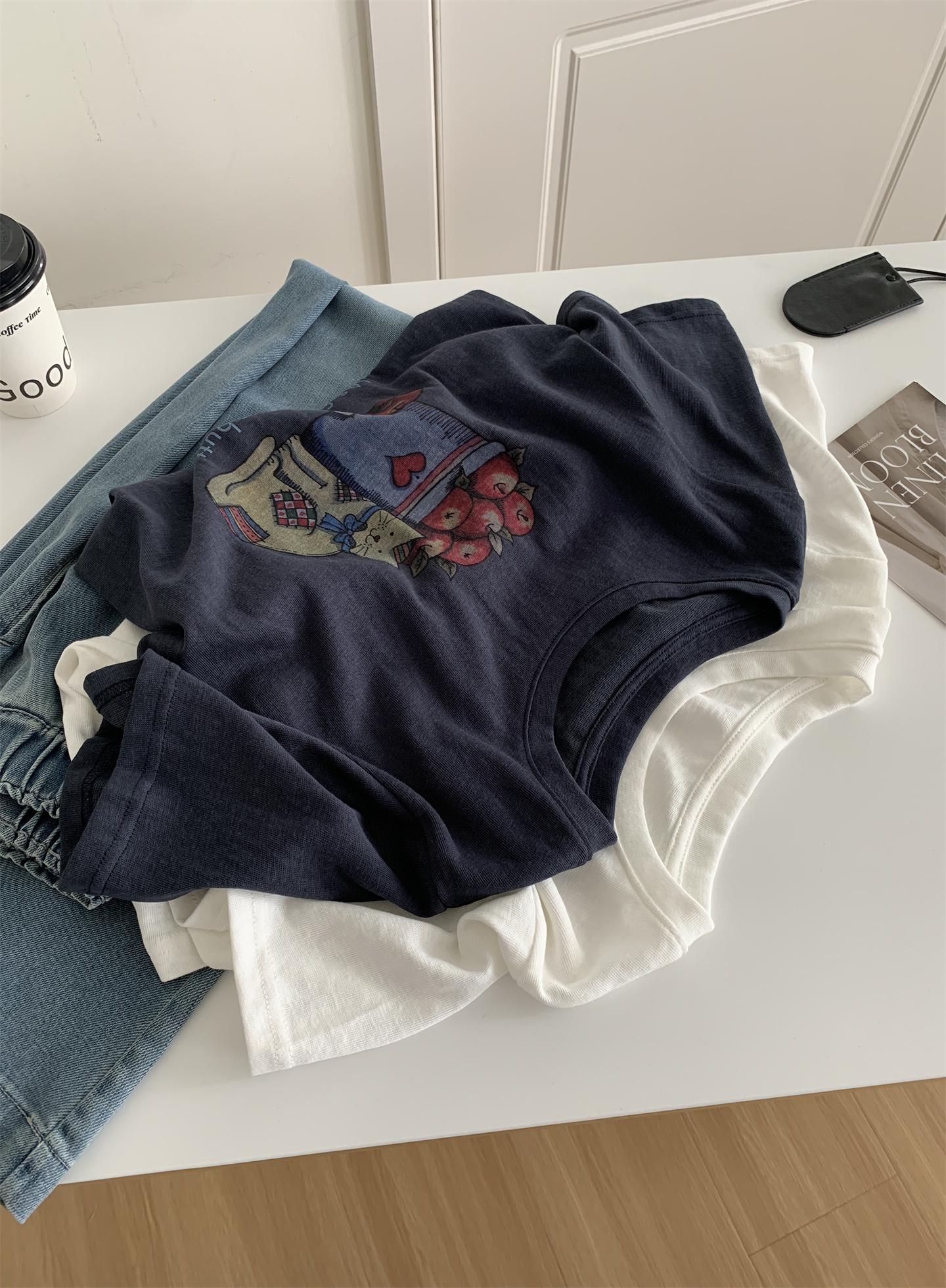 Camiseta de Verano Fina Estilo Coreano Reductor de Edad Estampado de Gato y Frutas para Mujer Algodón Copo de Nieve Suelta Cuello Redondo Manga Corta