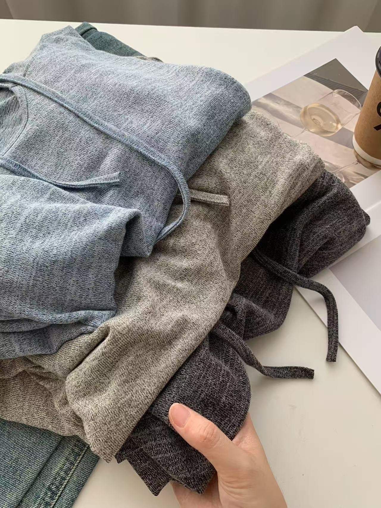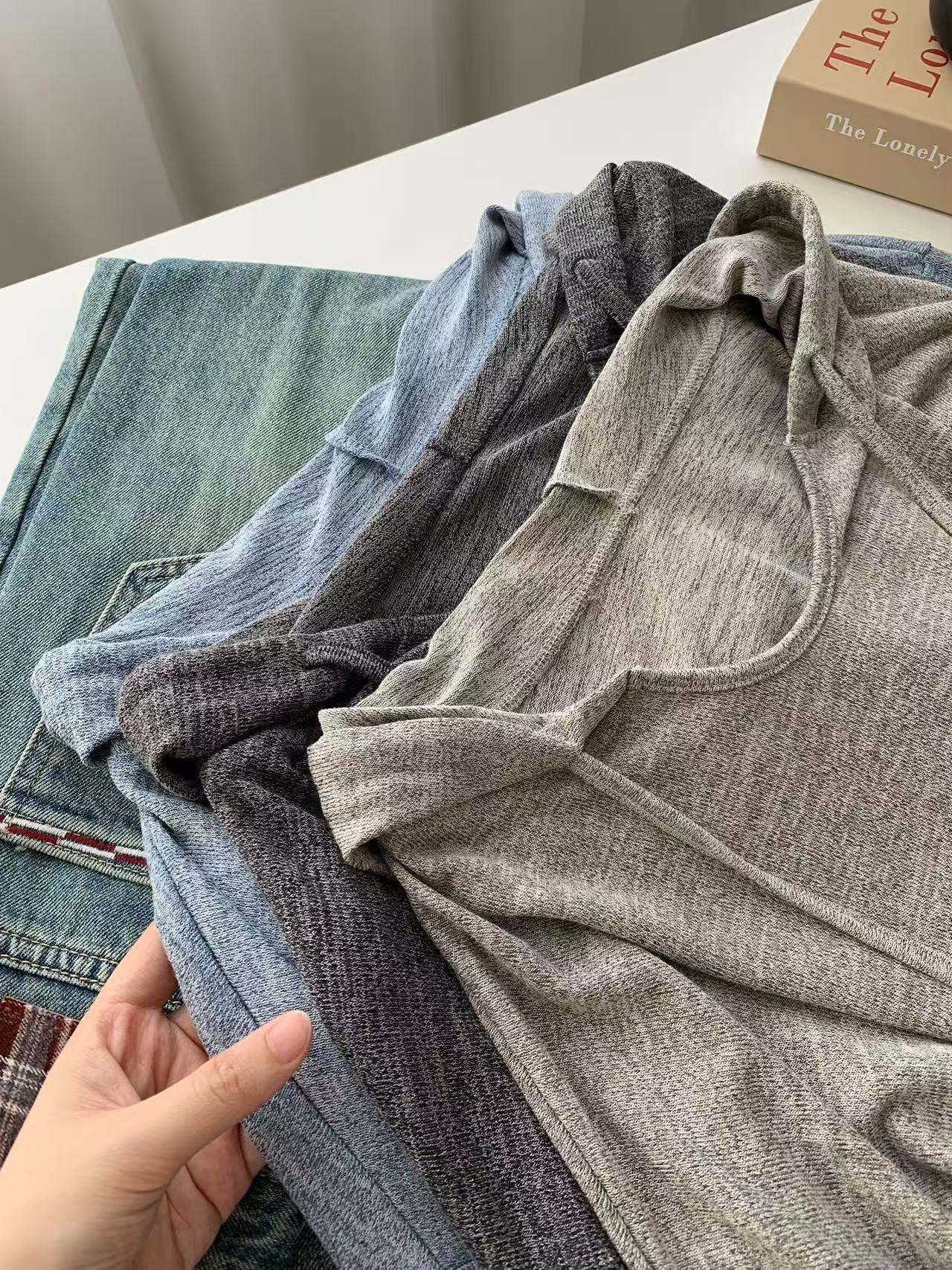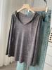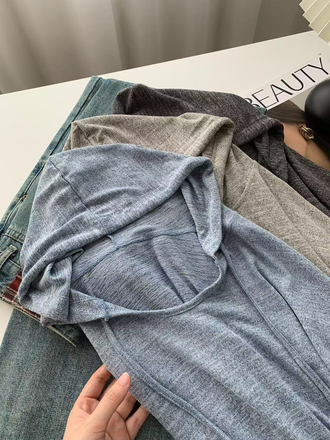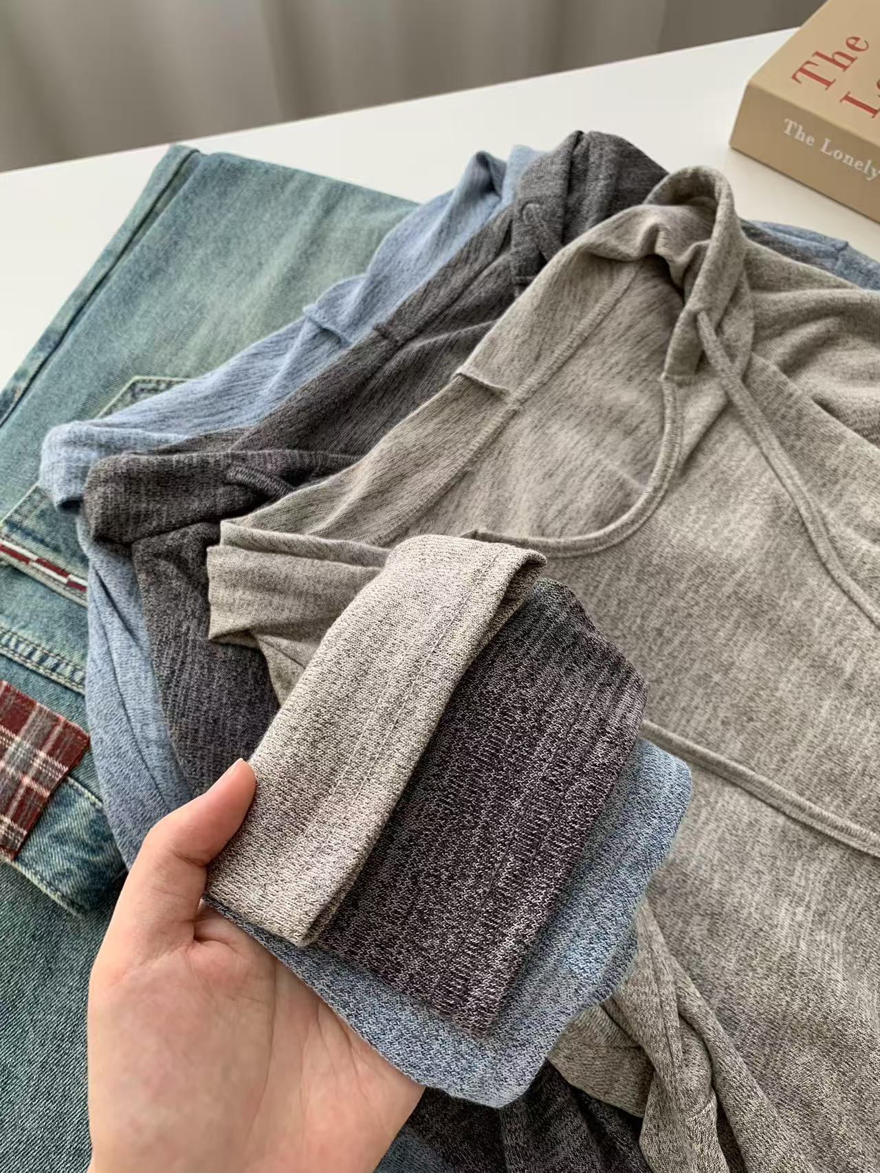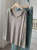 Sudadera holgada con capucha para mujer, estilo perezoso, cuello en U, con cordones, hombro caído, manga larga, color sólido, dobladillo arqueado, camiseta básica, sudadera delgada