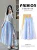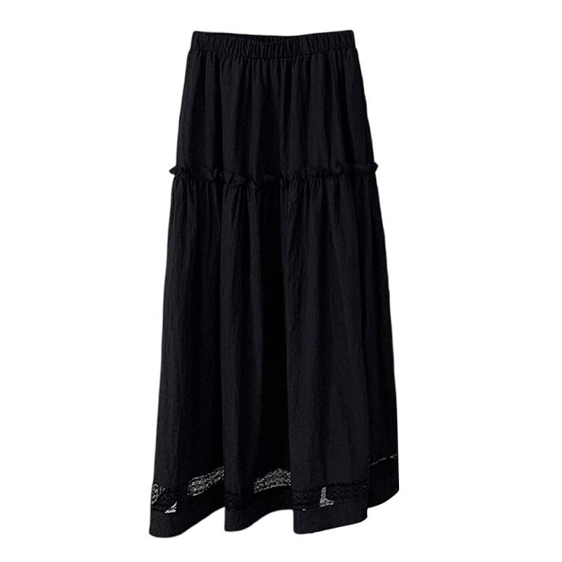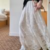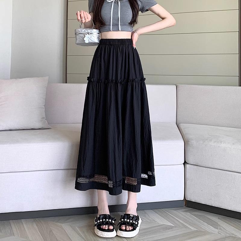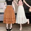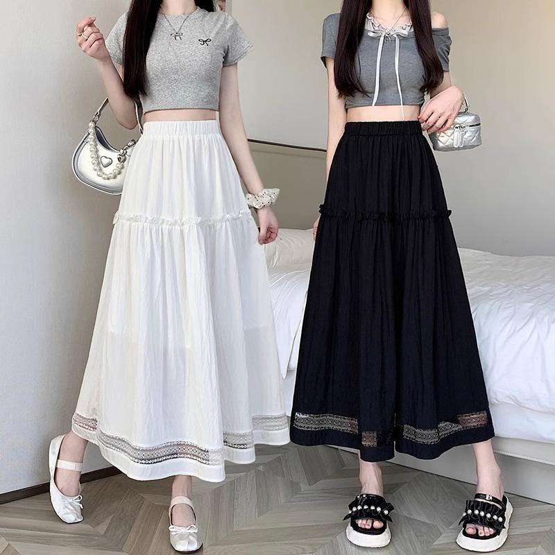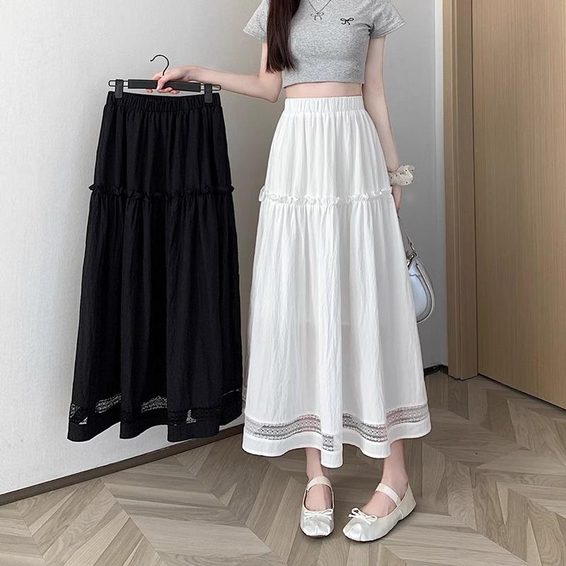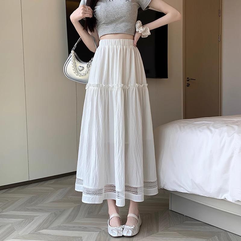 Falda de Encaje Blanco Estilo Coreano para Mujer, Primavera y Verano Cintura Alta Largo Medio Línea A Acampanada Paraguas con Diseño Patchwork Estilo Ins