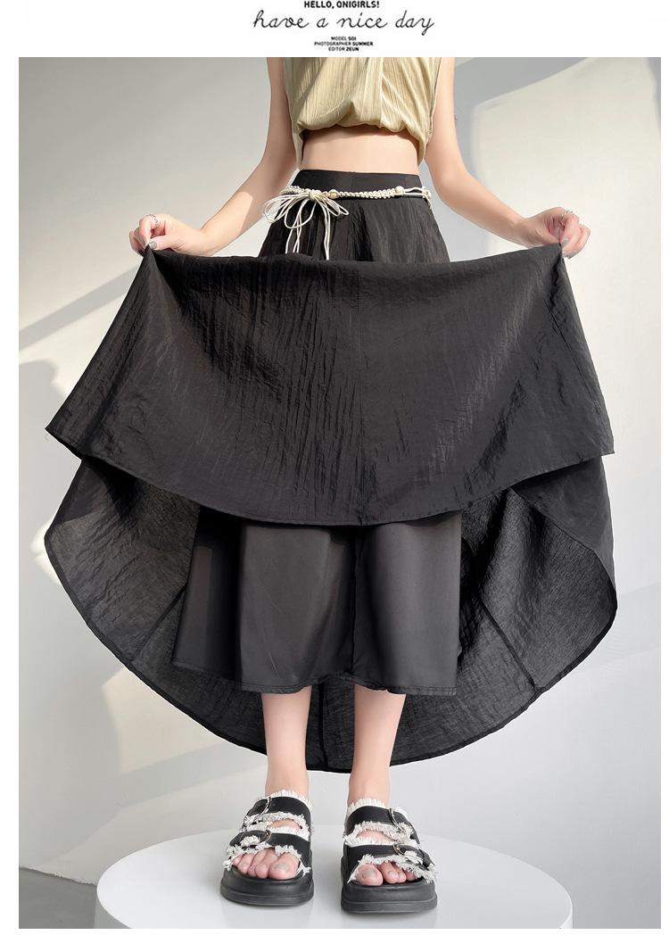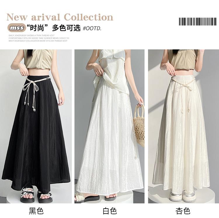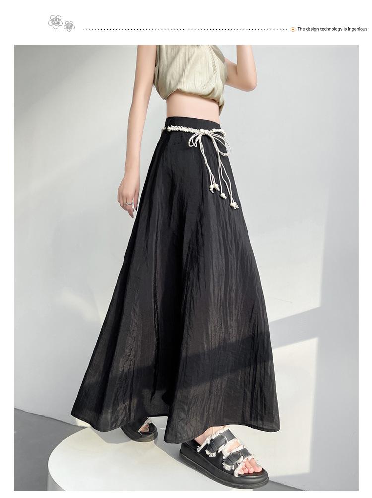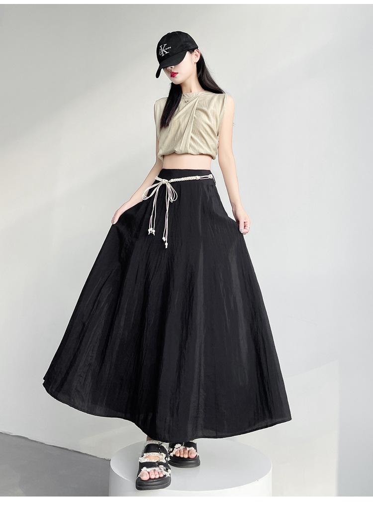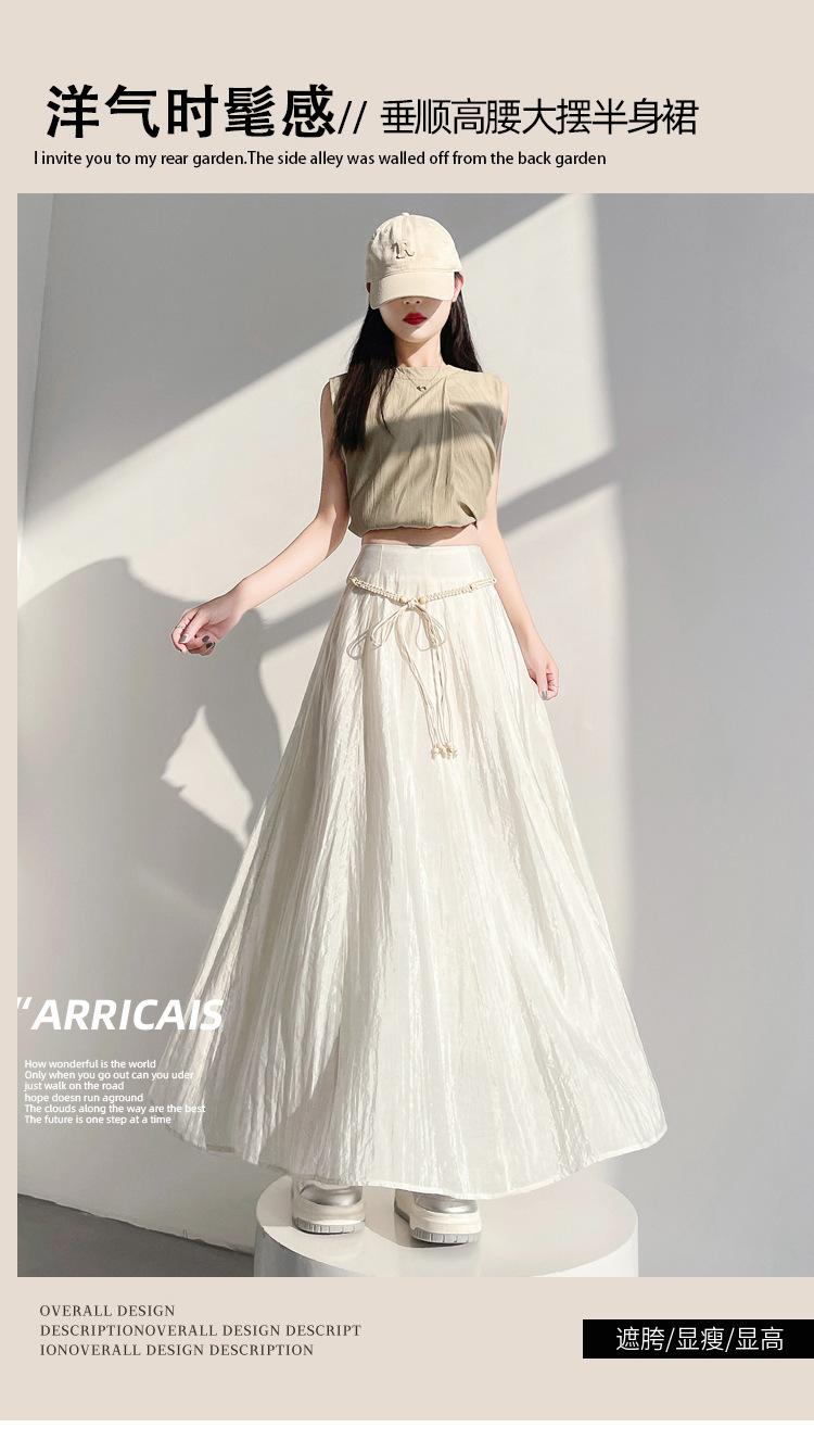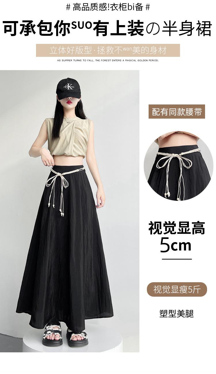 Falda midi de cintura alta que cubre las caderas para mujer 2025 nuevo estilo coreano de principios de otoño adelgazante versátil línea A de gran vuelo falda media A5579
