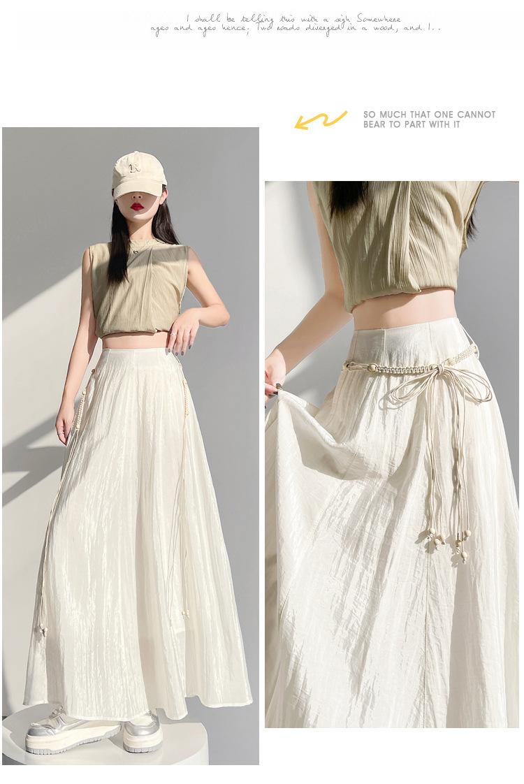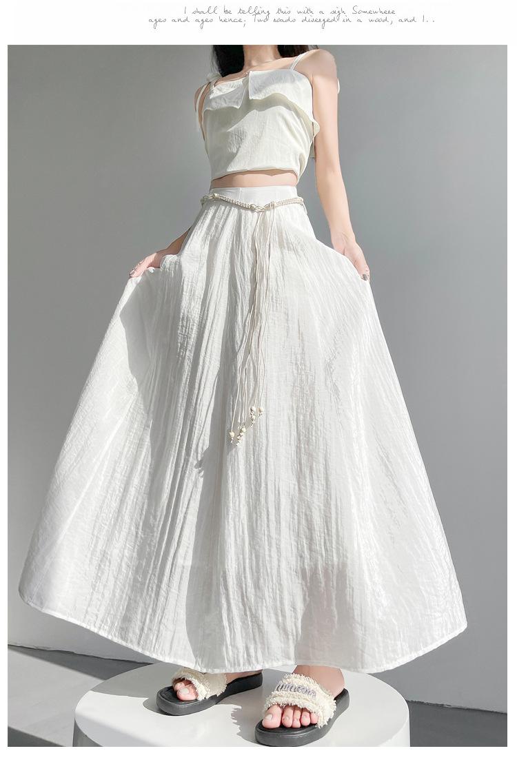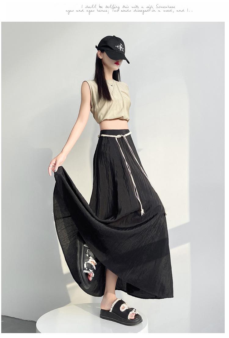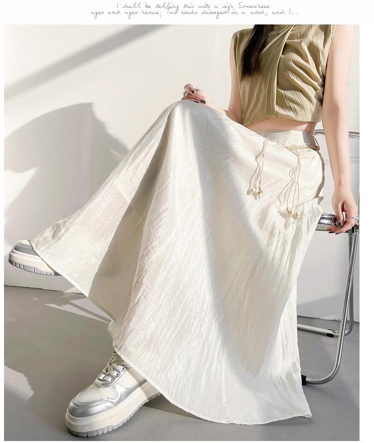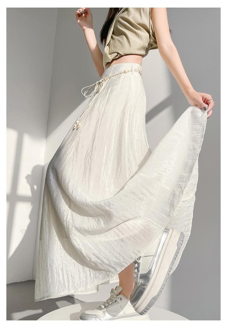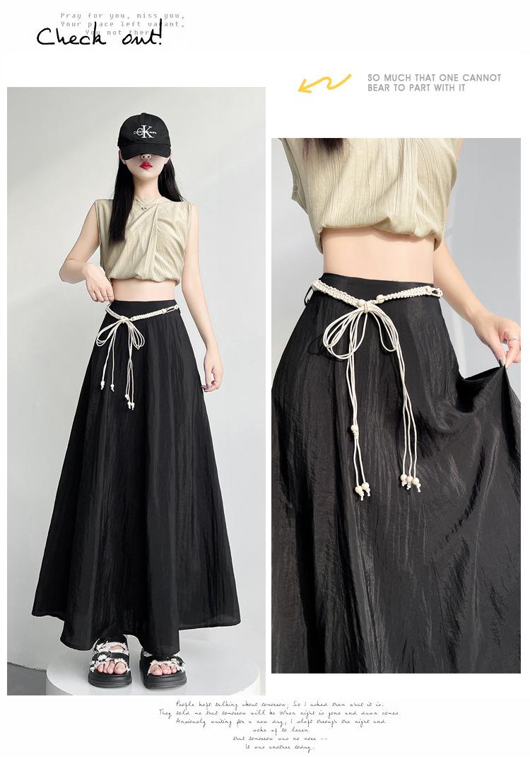 Falda midi de cintura alta que cubre las caderas para mujer 2025 nuevo estilo coreano de principios de otoño adelgazante versátil línea A de gran vuelo falda media A5579