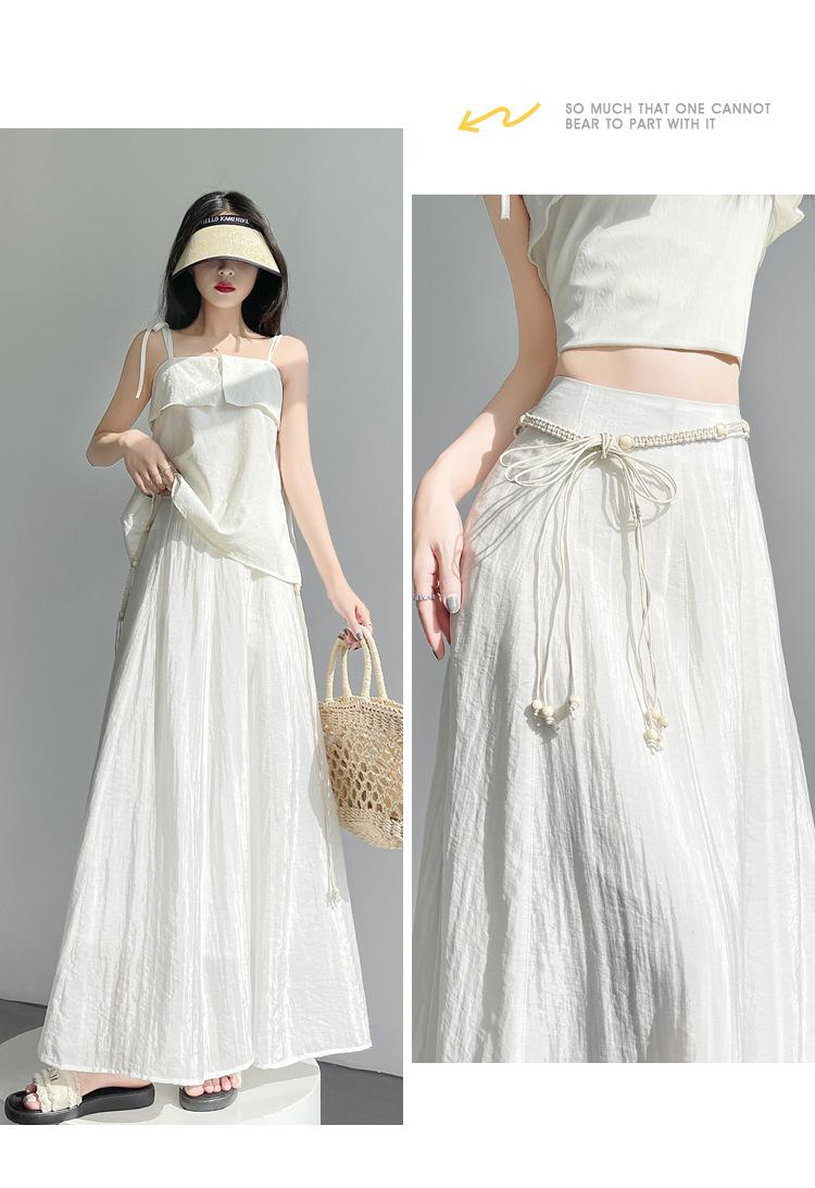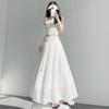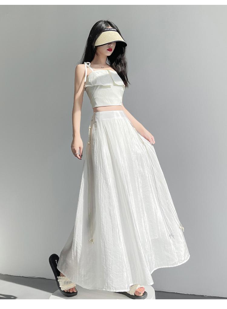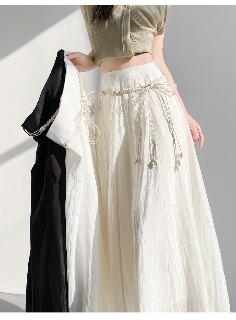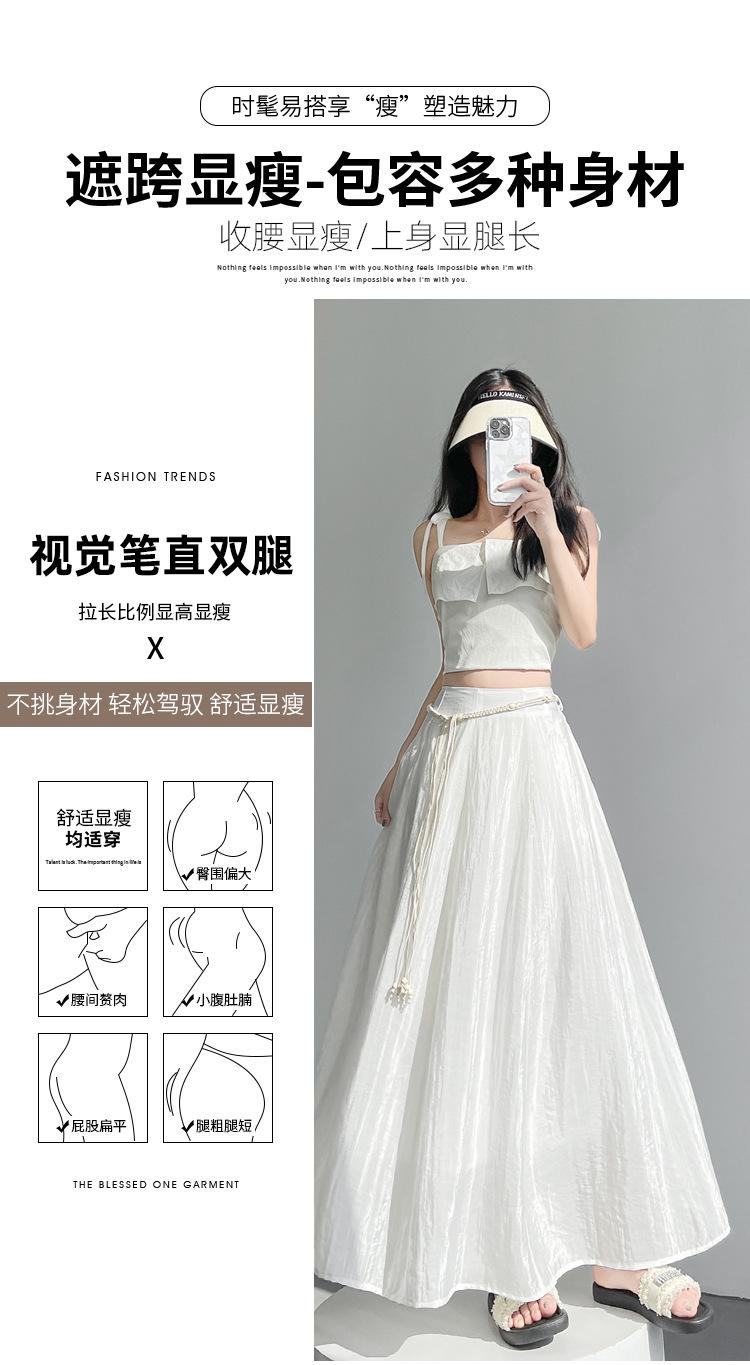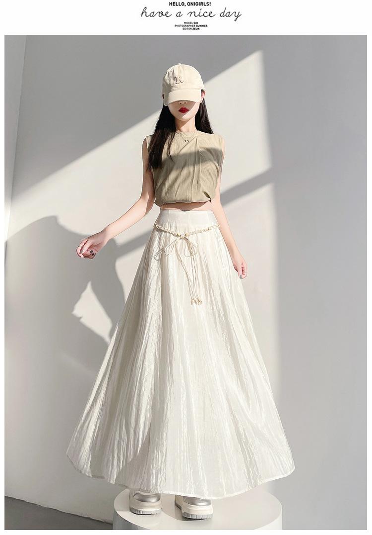 Falda midi de cintura alta que cubre las caderas para mujer 2025 nuevo estilo coreano de principios de otoño adelgazante versátil línea A de gran vuelo falda media A5579