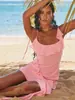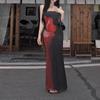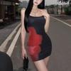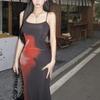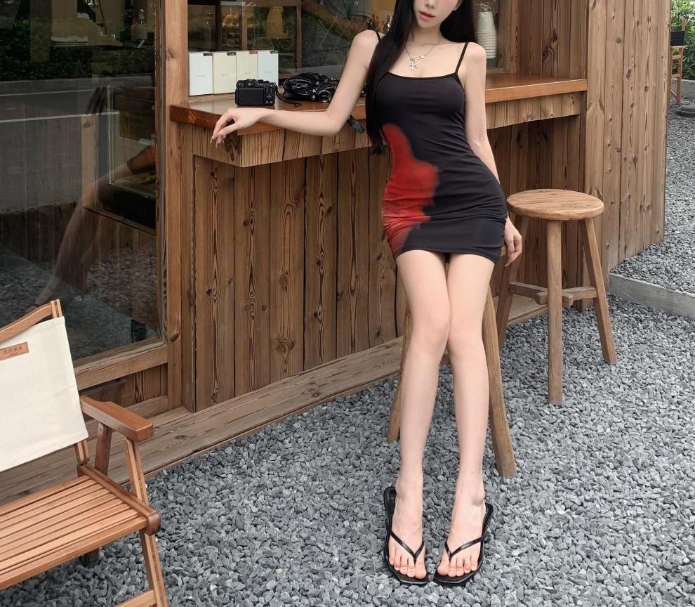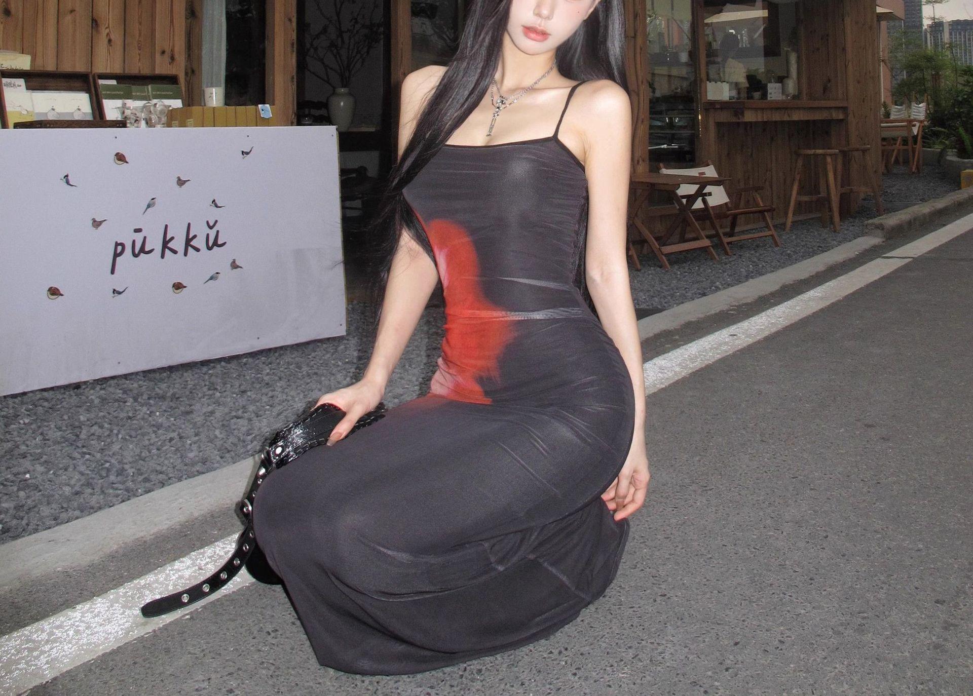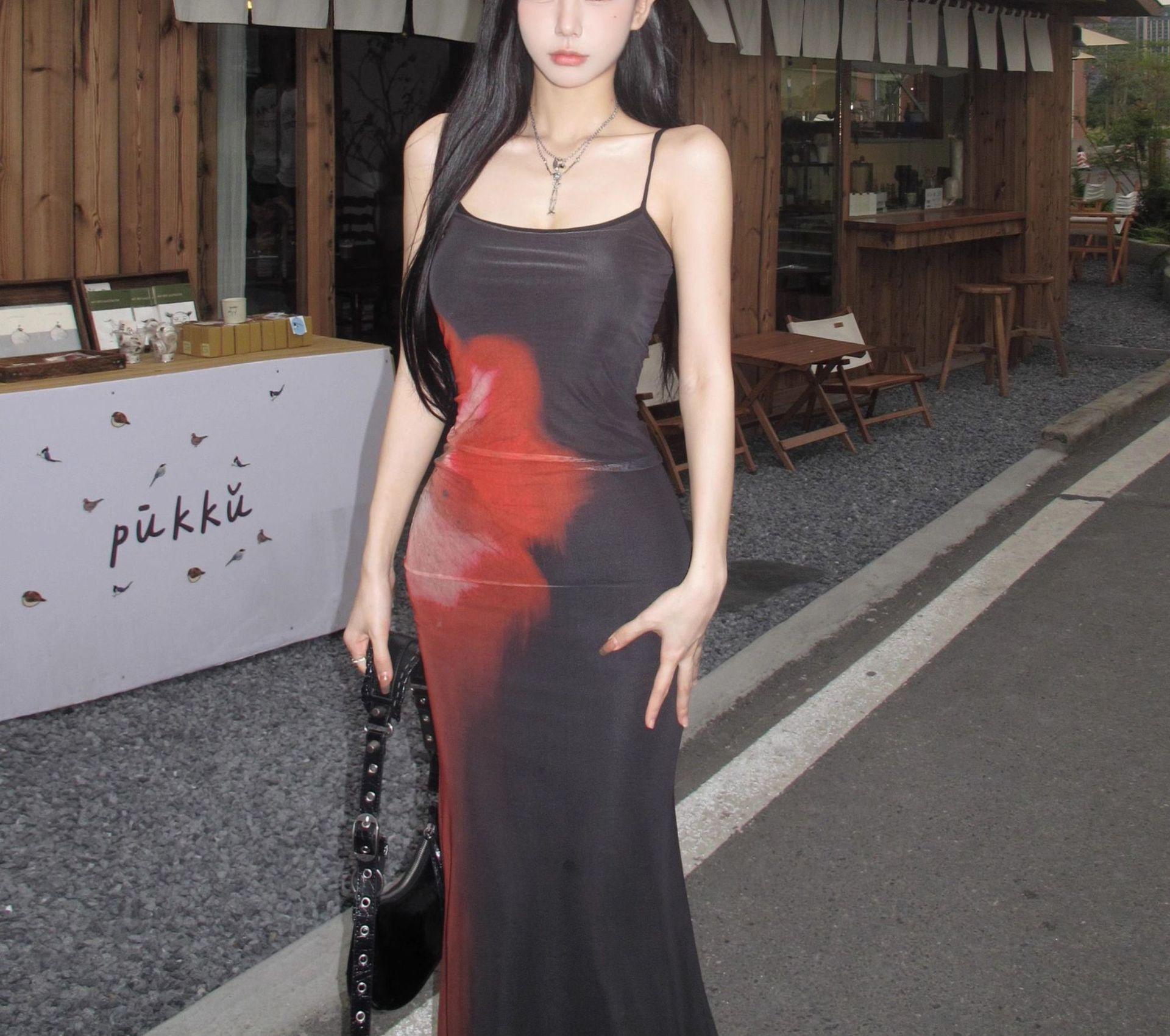 Estilo Lujuria Pura Sexy Vestido de Tirantes Estampado de Chica Caliente para Mujer Verano Nuevo Estilo Cintura Ajustada Cadera Falda Larga