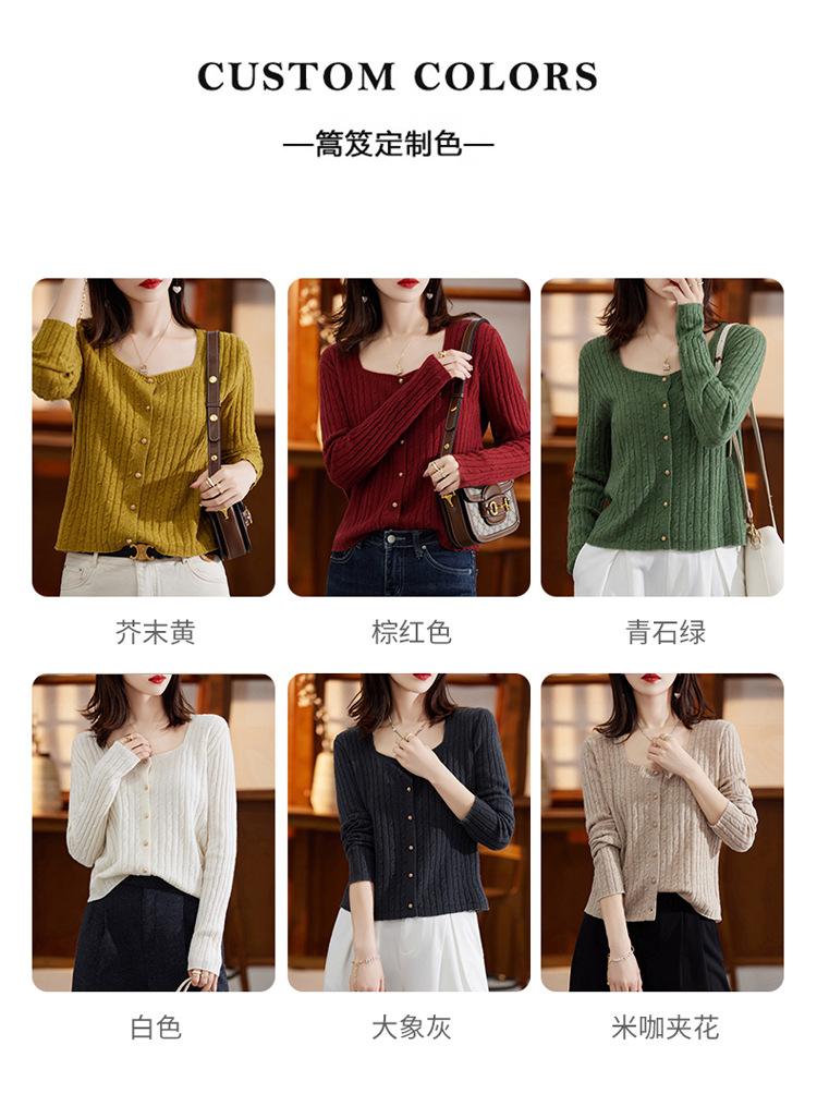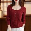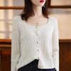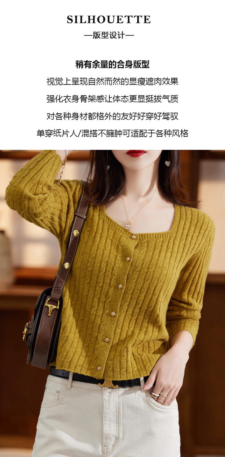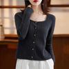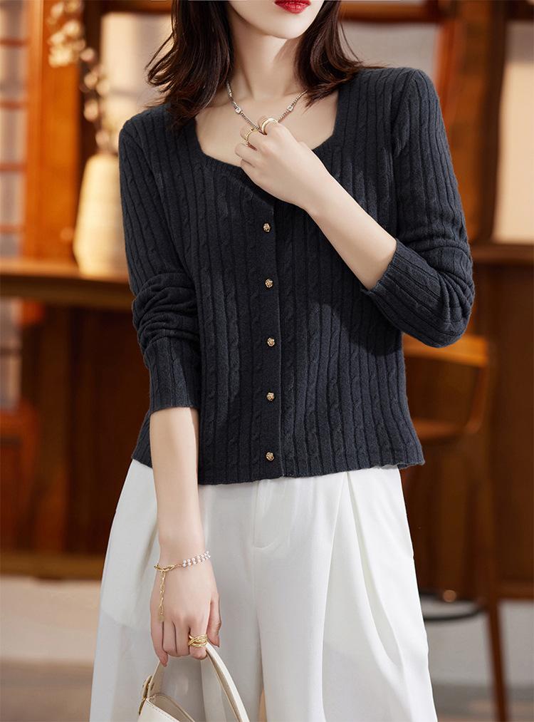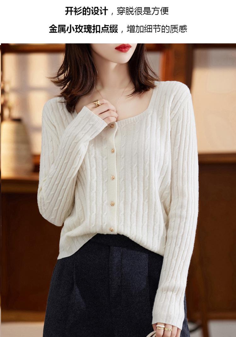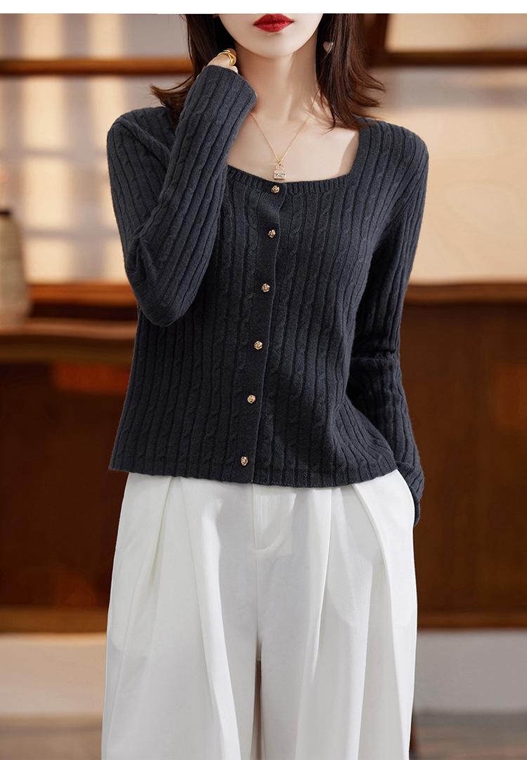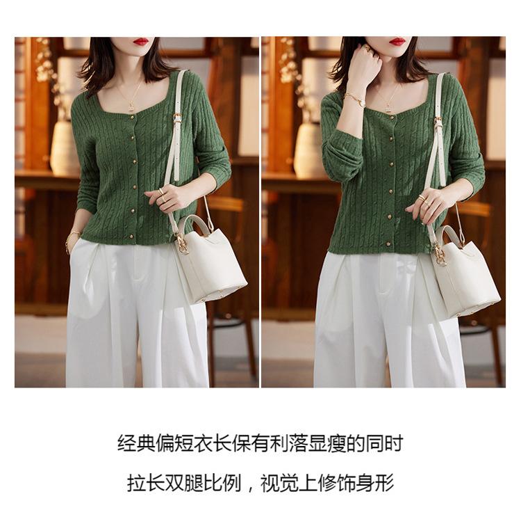 Cárdigan Retro de Punto Trenzado de Lana Pura para Mujer Otoño/Invierno Nuevo Estilo Versátil Diseño de Cuello Cuadrado Suéter Abrigo Corto