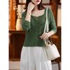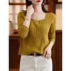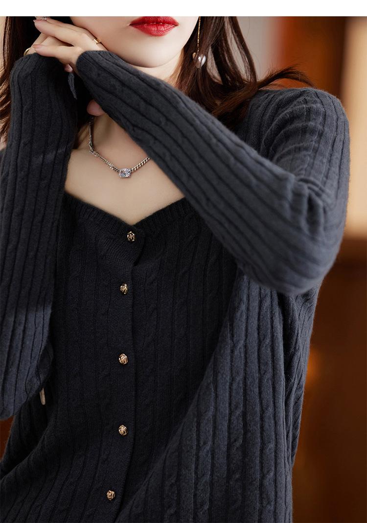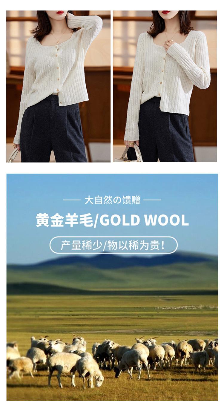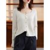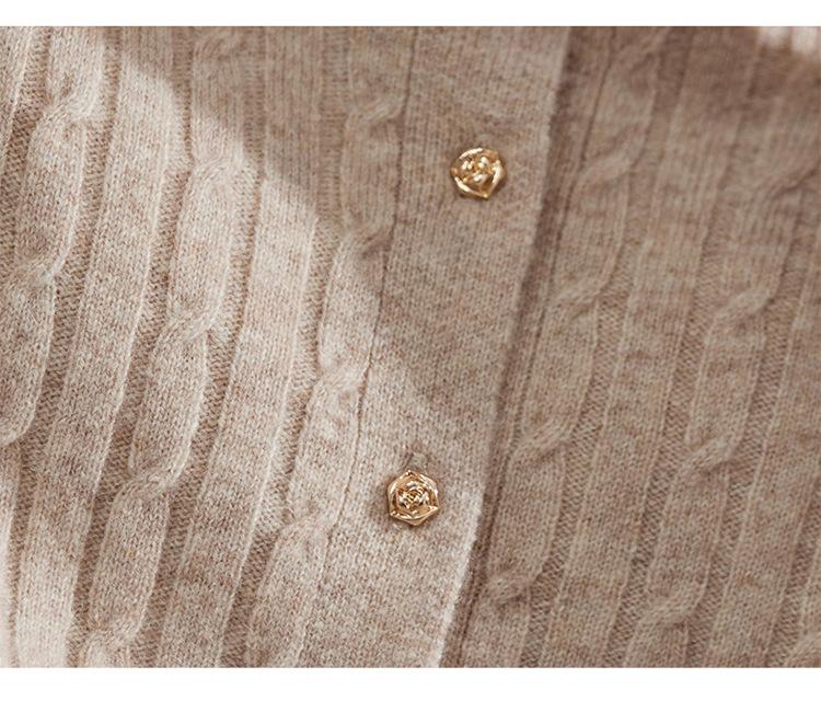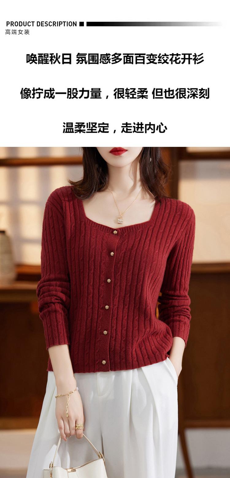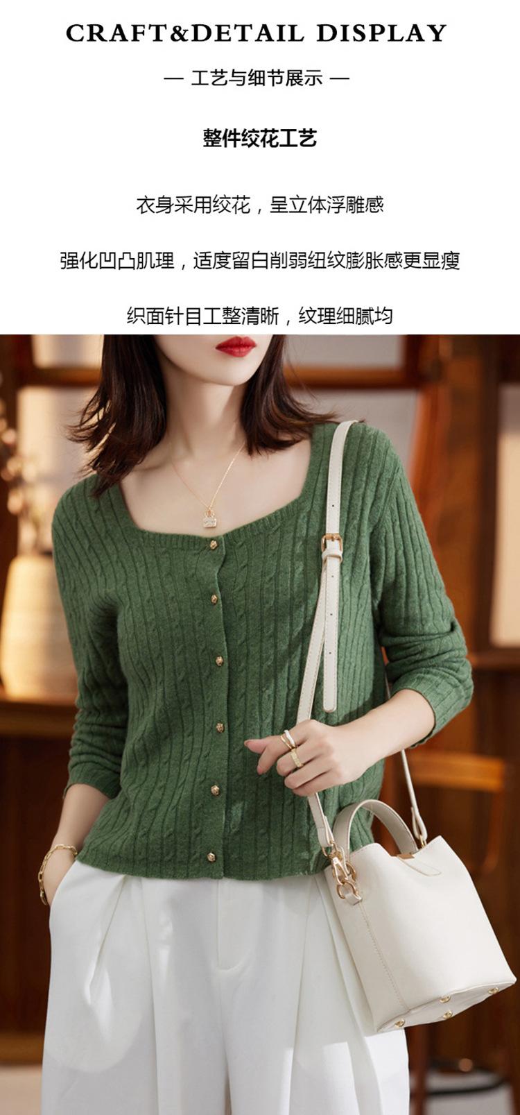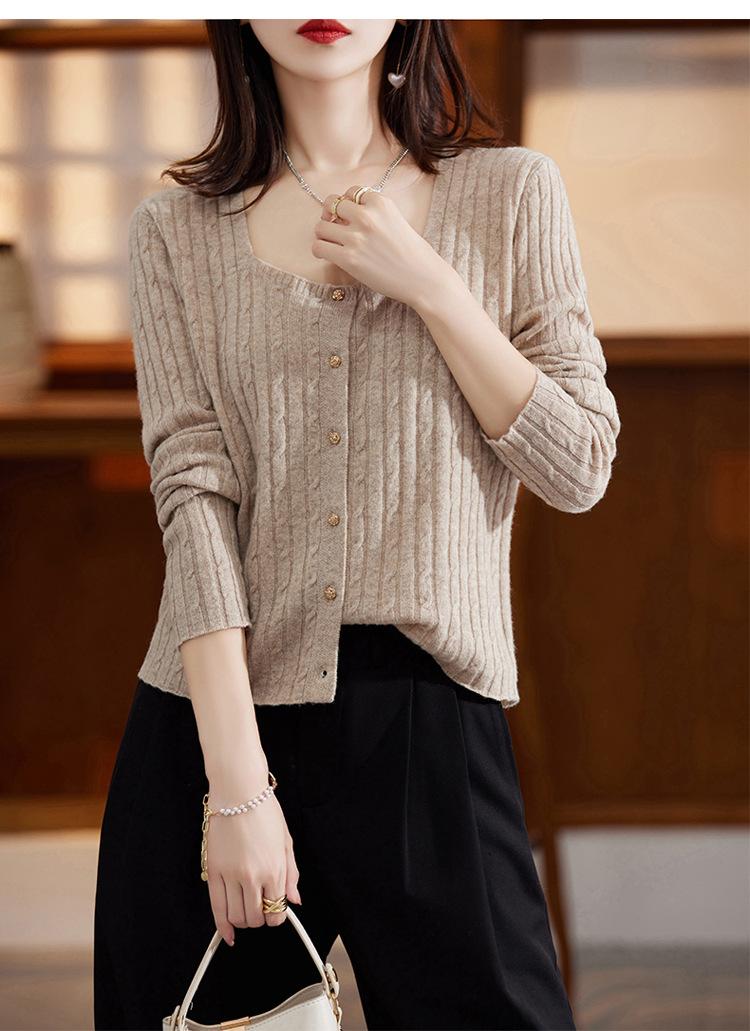 Cárdigan Retro de Punto Trenzado de Lana Pura para Mujer Otoño/Invierno Nuevo Estilo Versátil Diseño de Cuello Cuadrado Suéter Abrigo Corto