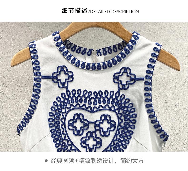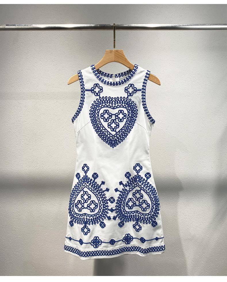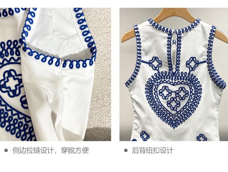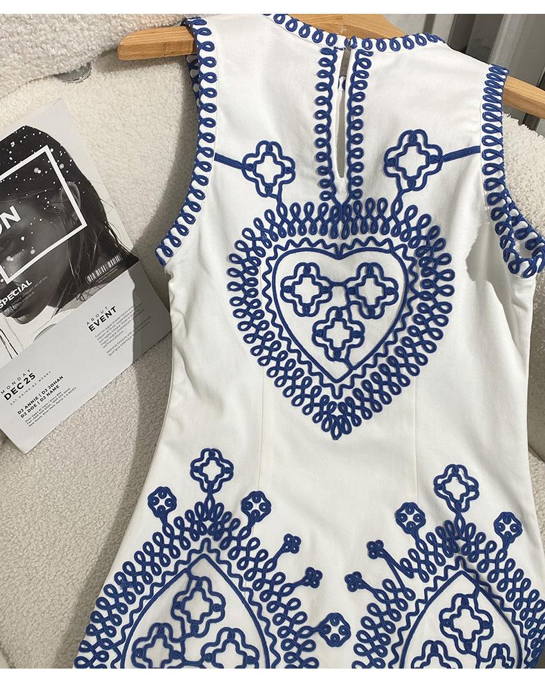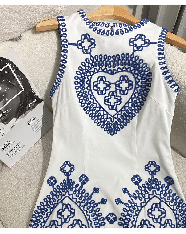 Xiaozhong 2024 Verano Nuevo Blanco Vintage Gouhua Vestido sin Mangas con Cuello Redondo