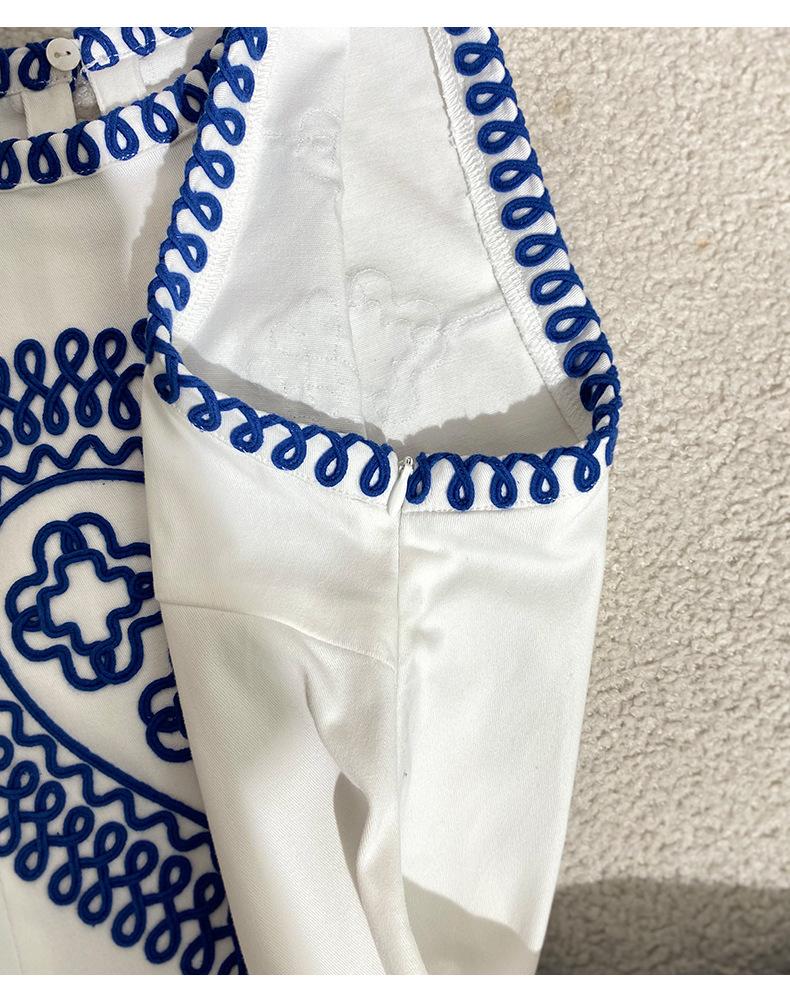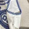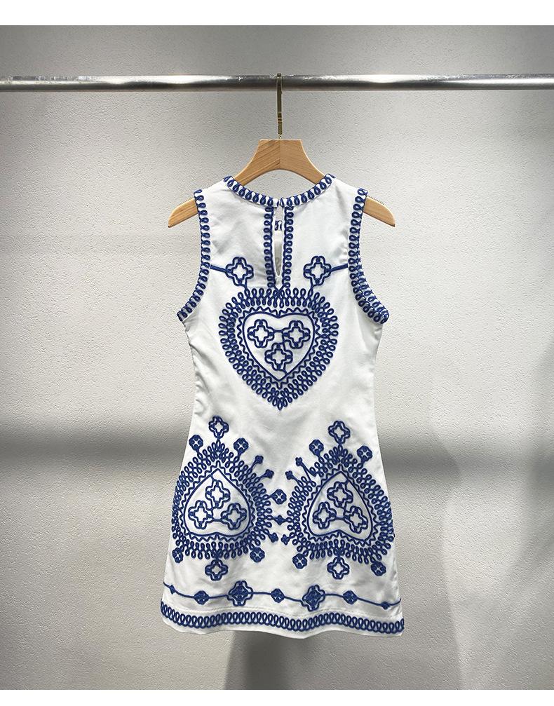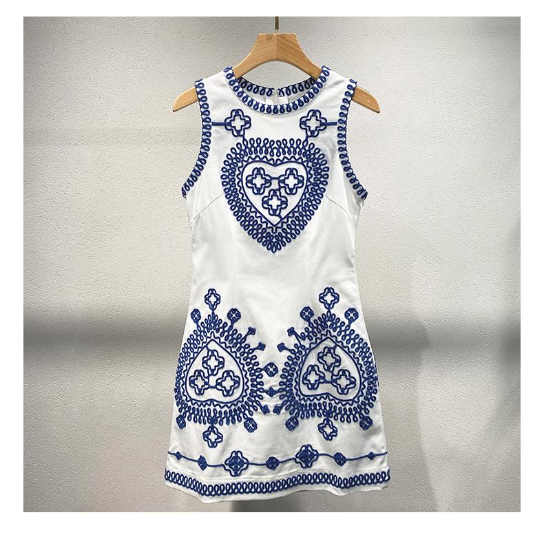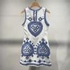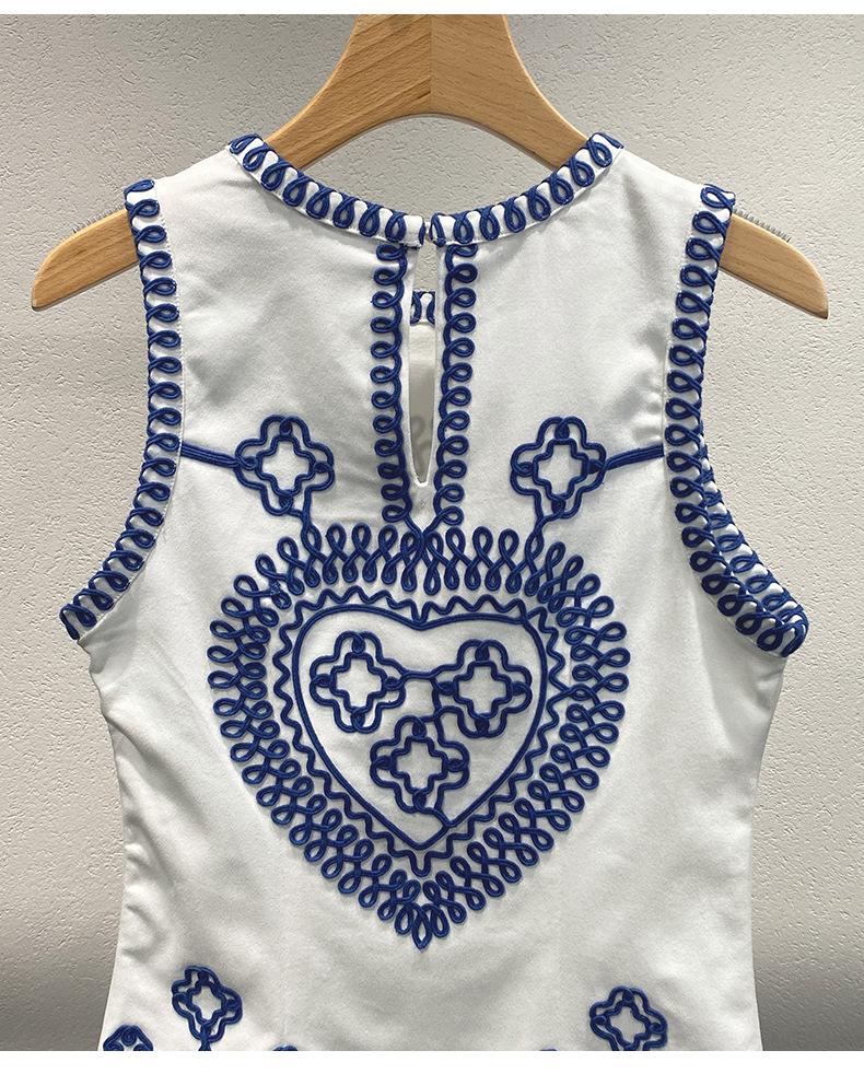 Xiaozhong 2024 Verano Nuevo Blanco Vintage Gouhua Vestido sin Mangas con Cuello Redondo