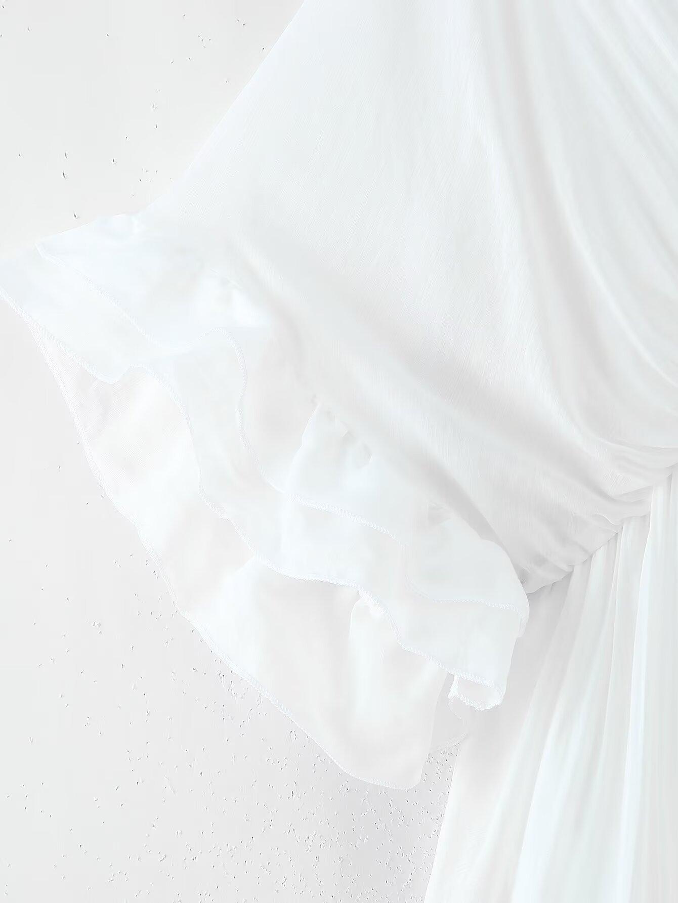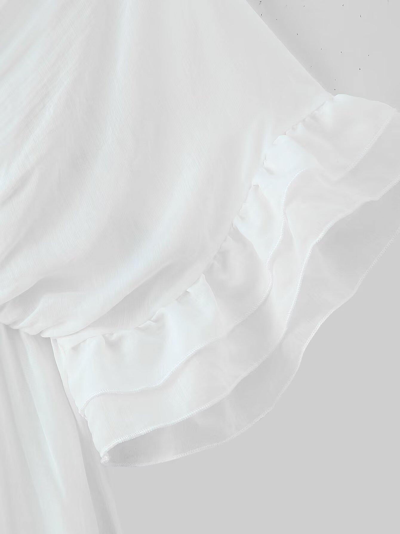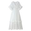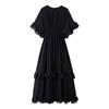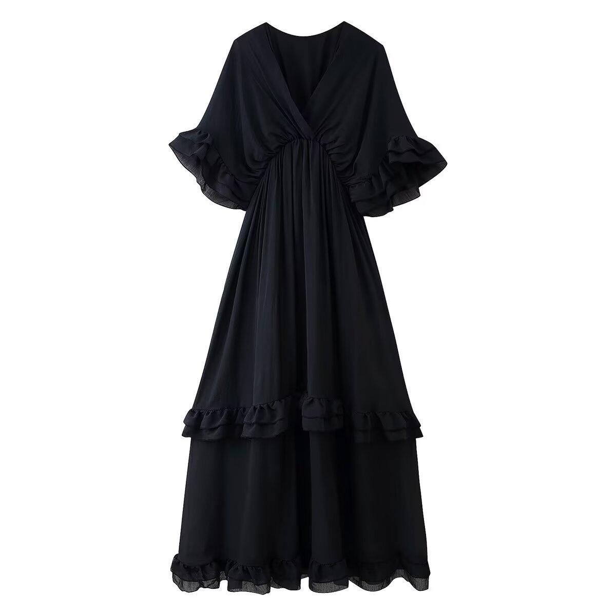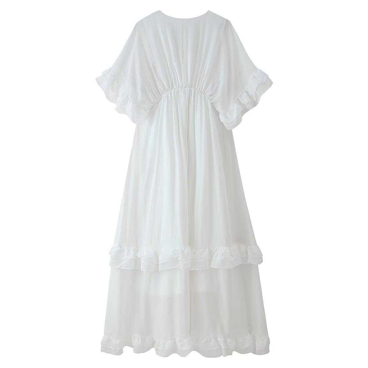 2025 Nueva Ropa de Verano para Mujer Estilo Europeo y Americano Moda Sencillo Elegante Cuello en V Vestido de Volantes Bicolor
