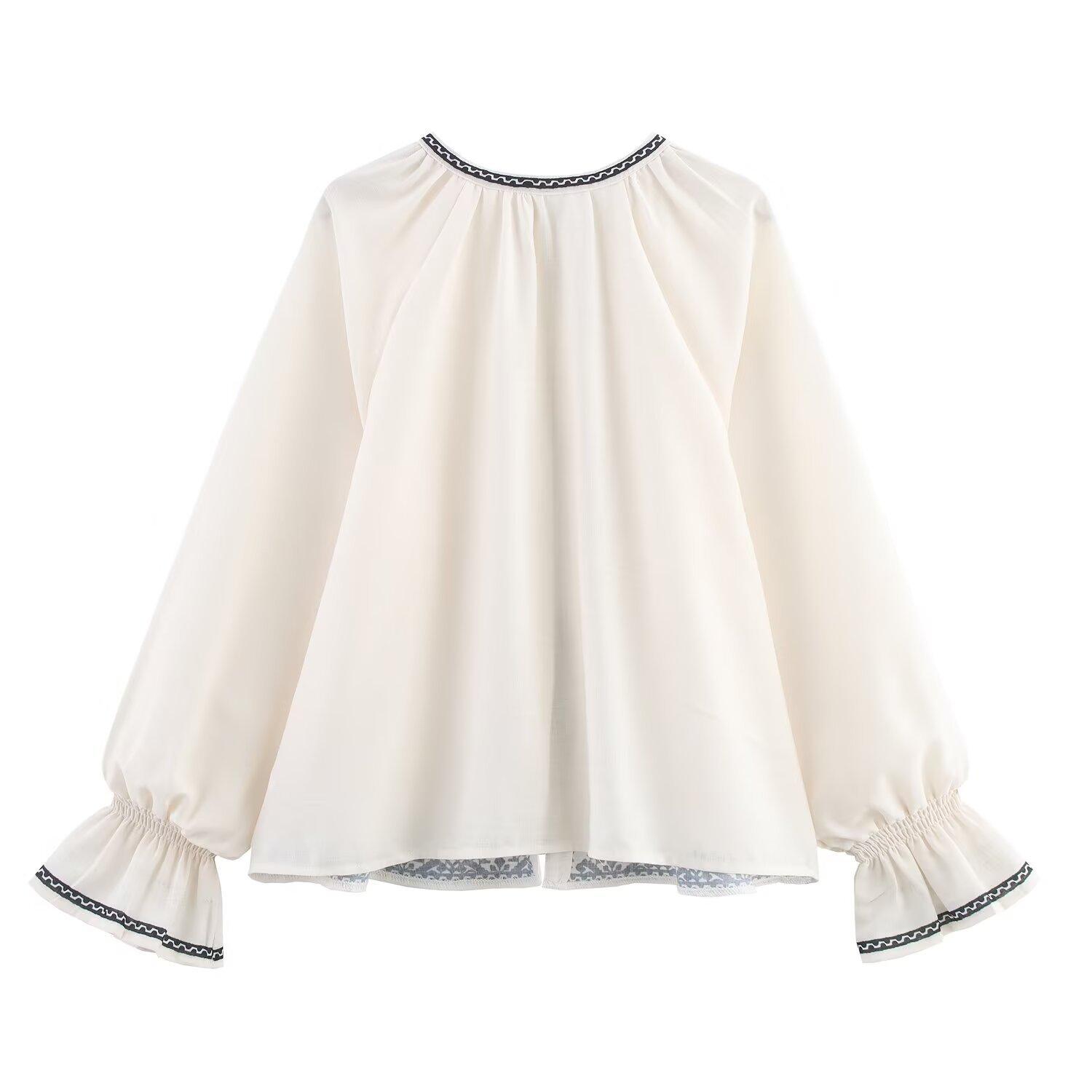2025 Nueva Ropa de Verano para Mujer Estilo Europeo y Americano Moda Sencilla Versátil Camisa Estampada en Contraste 5770043