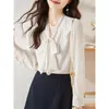 Camisa de Estilo Niche Inspirada en el Diseño con Cuello Volante Nueva Temporada Primavera 2026 Blusa Adelgazante con Volantes Top para Mujer A5811