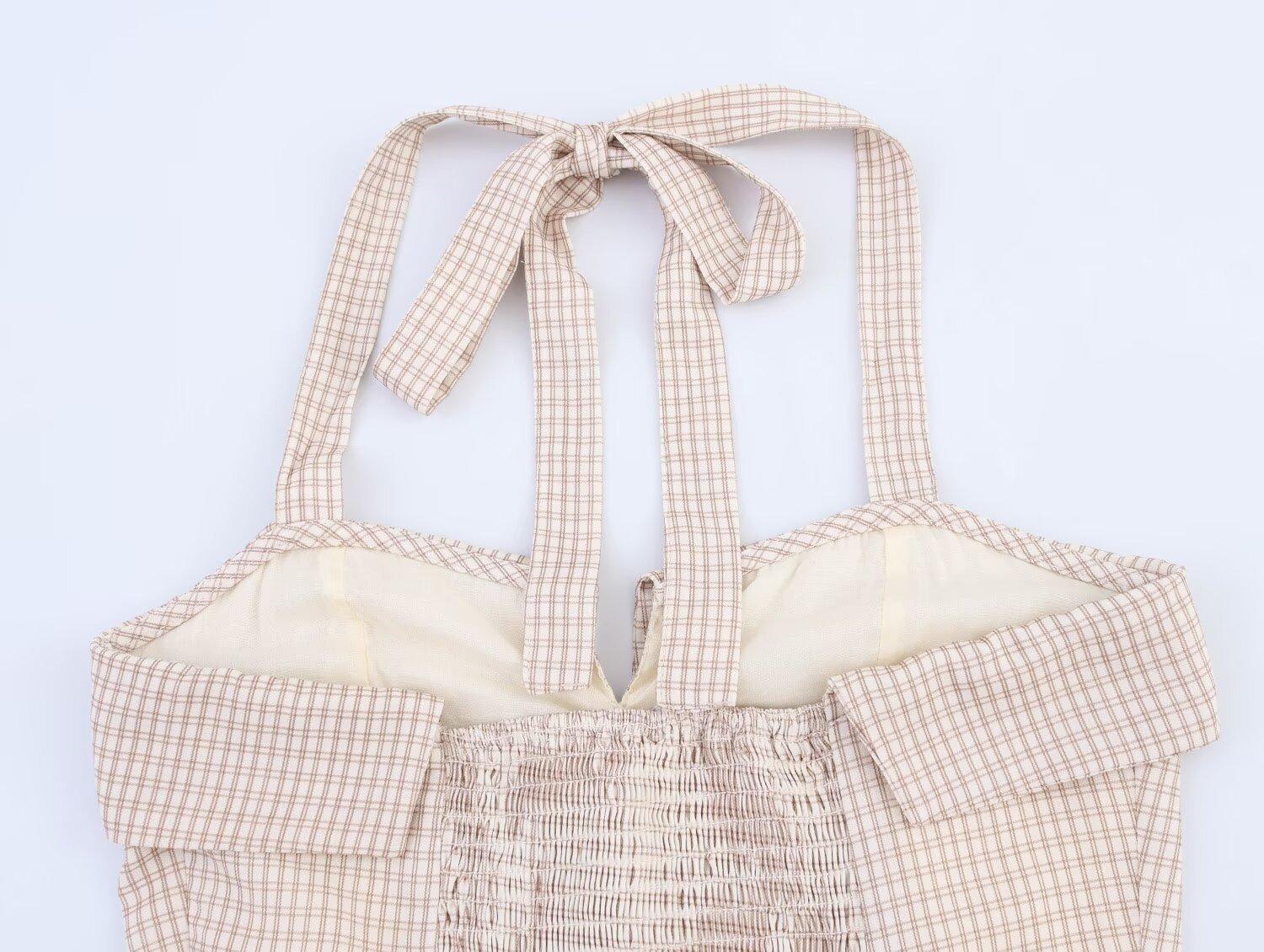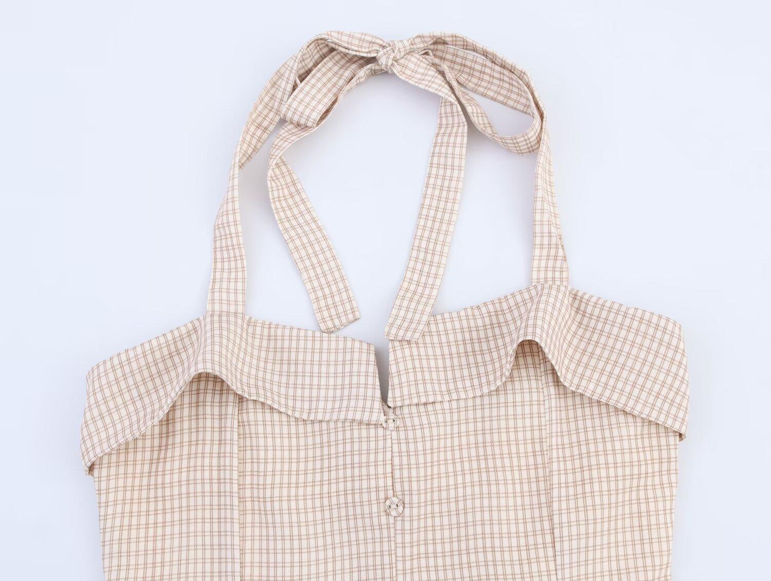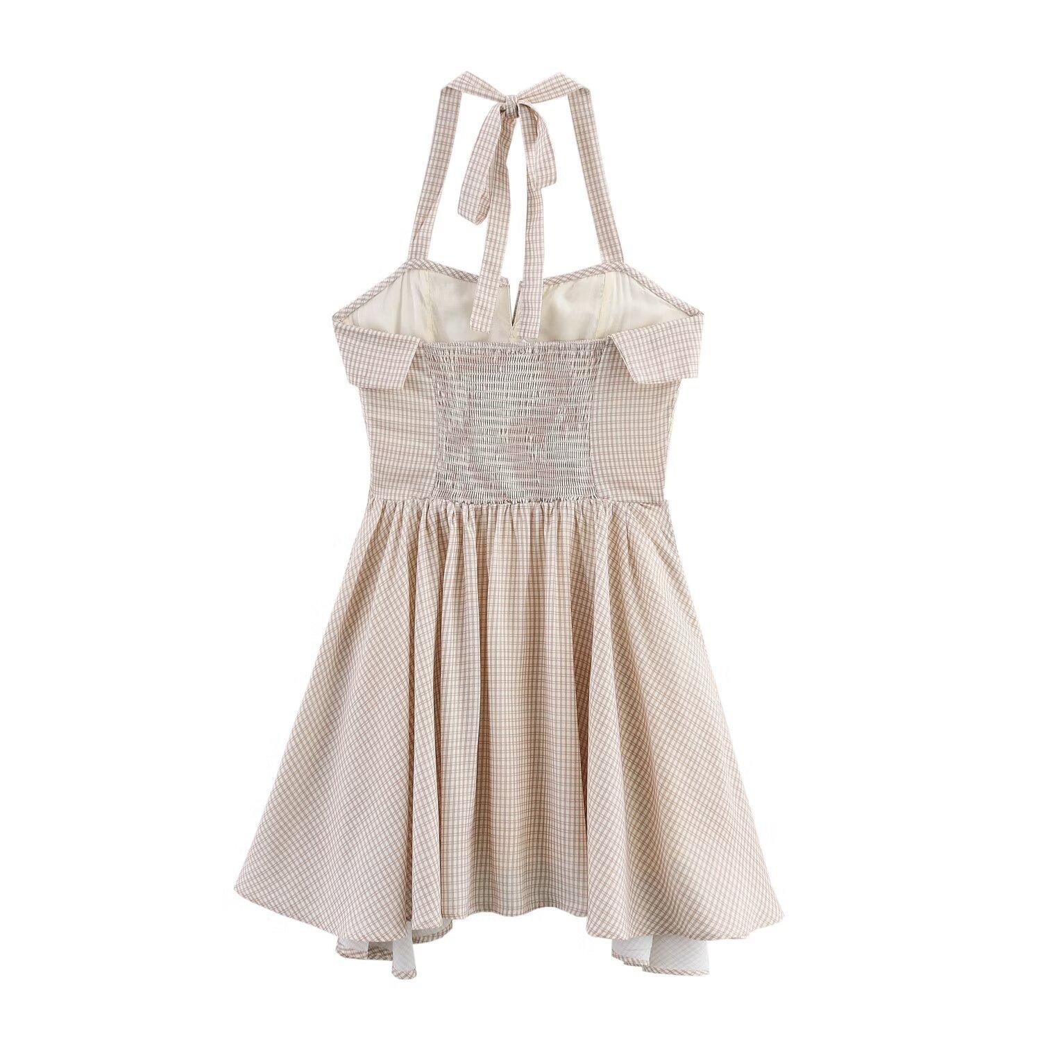 Exclusivo Transfronterizo Comercio Exterior al por Mayor 2025 Verano Nuevo Estilo Europeo y Americano Moda Temperamento Cuello Halter Vestido a Cuadros para Mujer