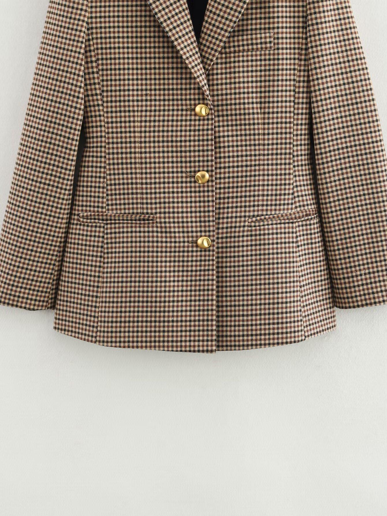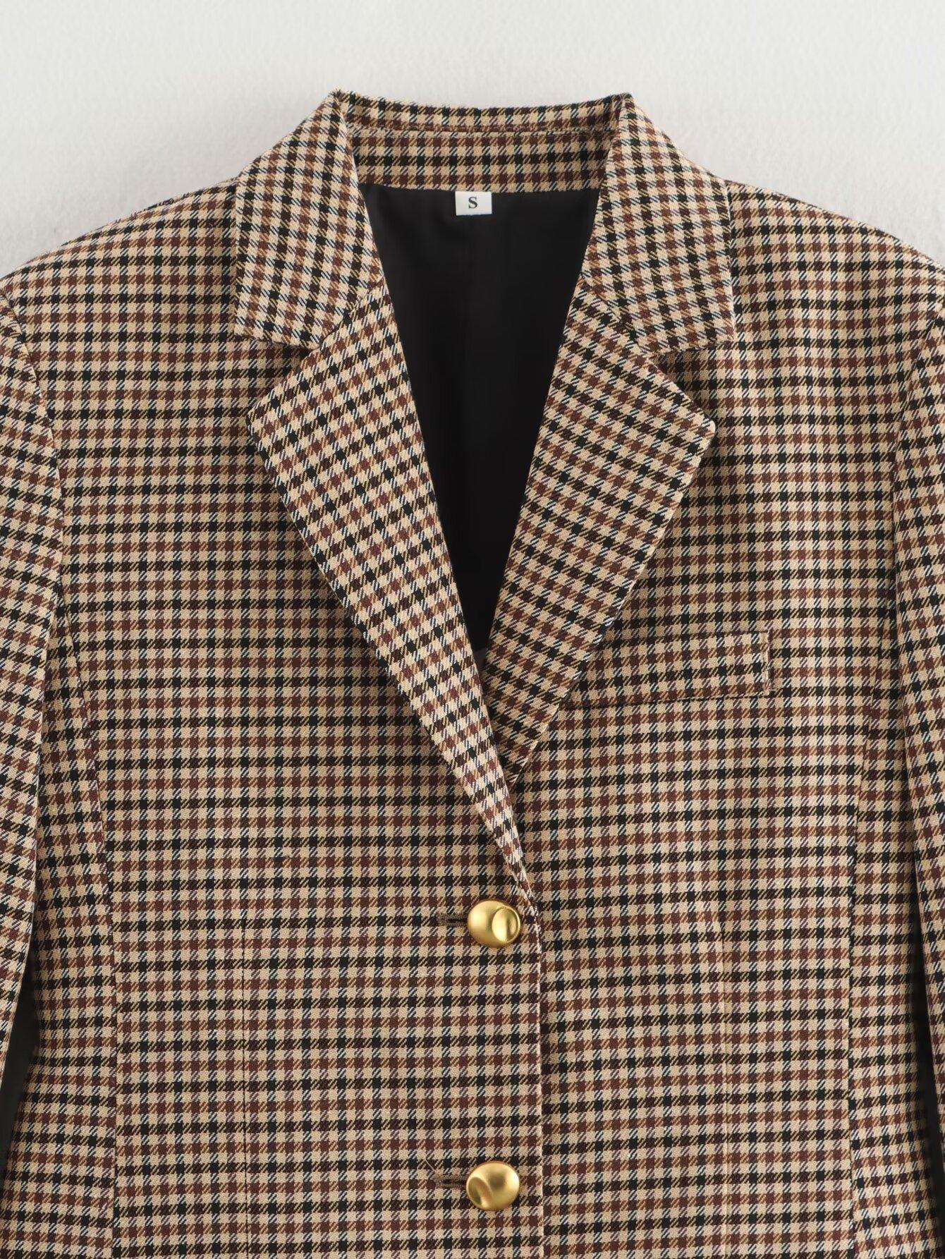 Comercio Exterior Transfronterizo Moda Pata de Gallo Chaqueta Top para Mujer Primavera y Otoño Nuevo Retro Cruzado Cinturón Chaqueta de Traje
