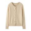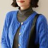 25 Otoño/Invierno Cárdigan Retro de Cachemira con Punto de Cable para Mujer Suéter de Cuello Redondo Holgado Corto de Punto Ropa Exterior Suéter Base