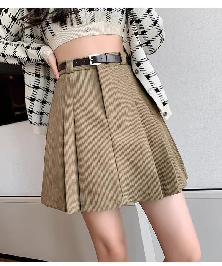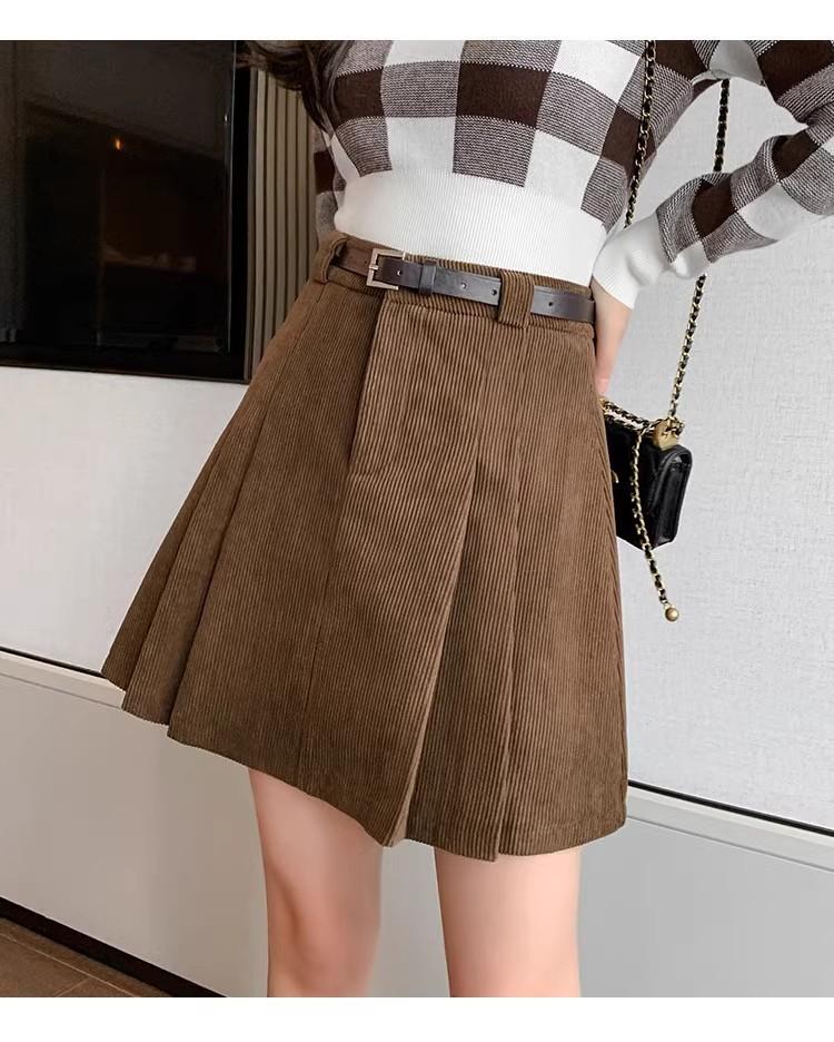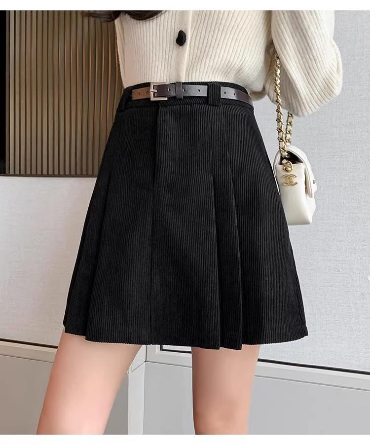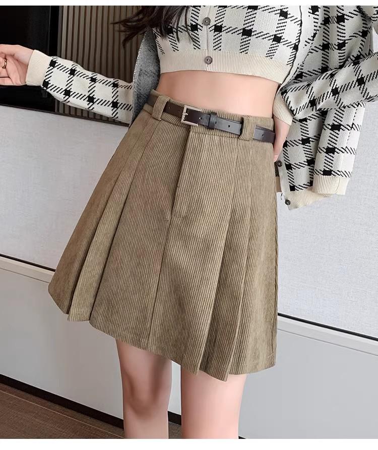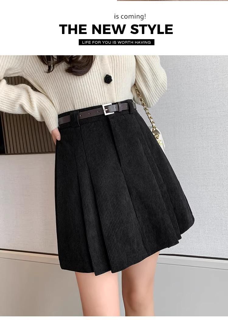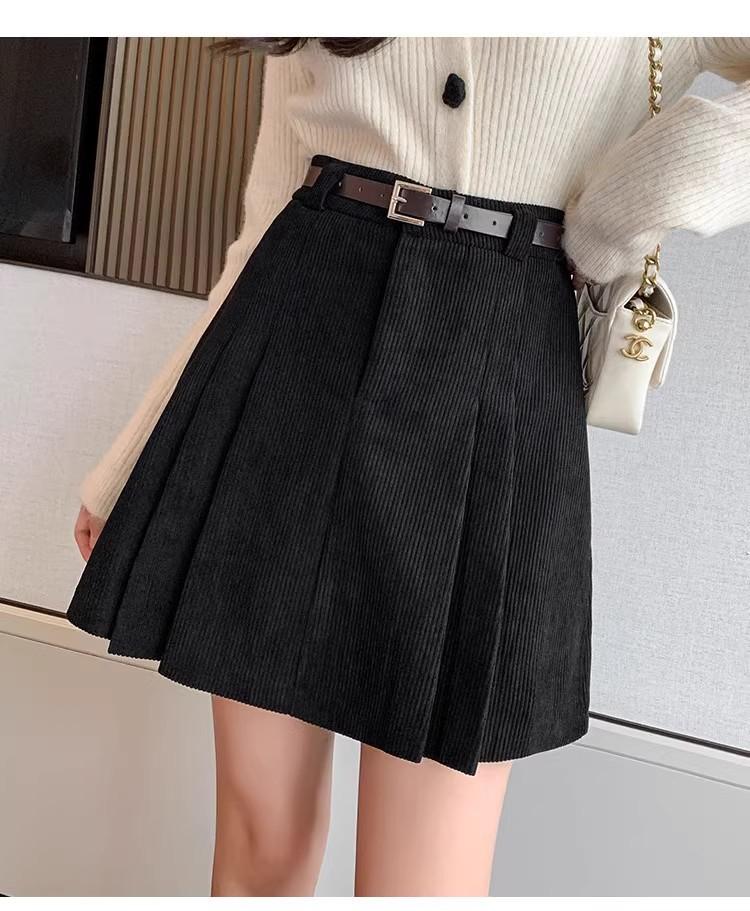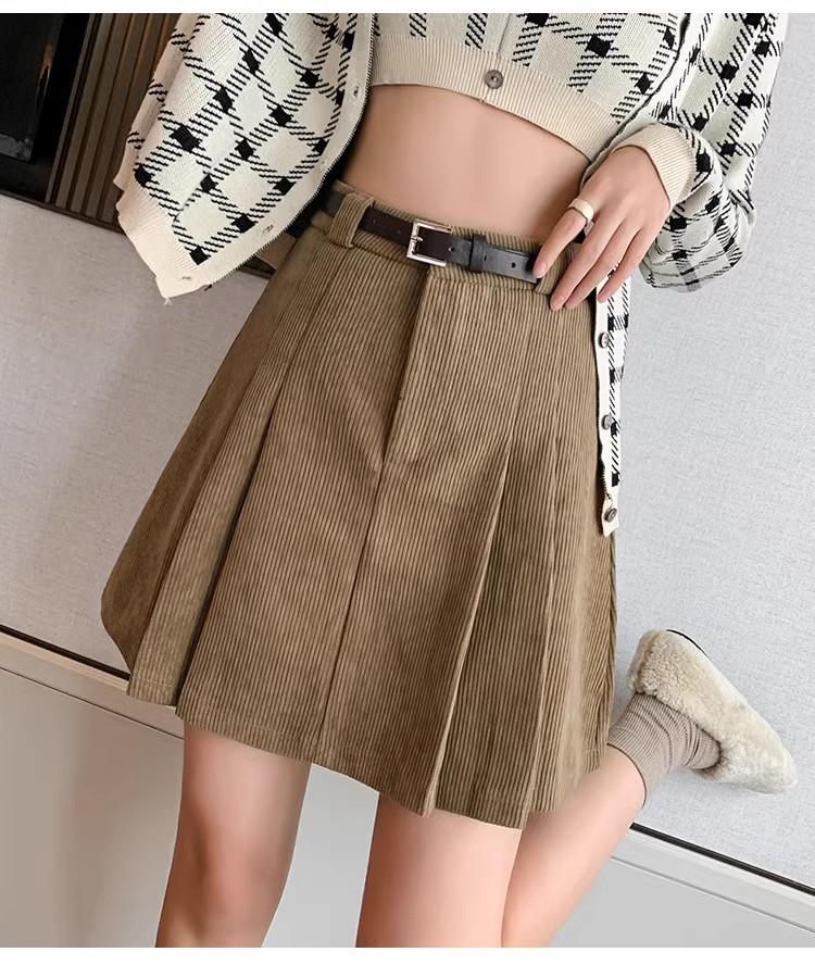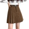 Falda de pana plisada para mujer Primavera Otoño Invierno 2024 Nueva Talla Pequeña Temperamento Cintura Alta Línea A Falda Corta