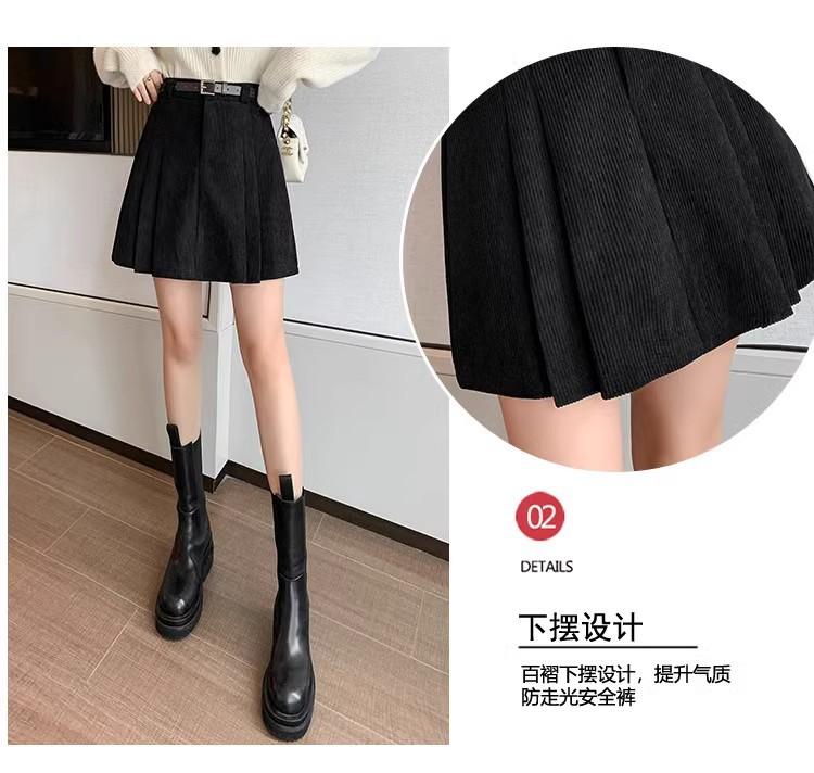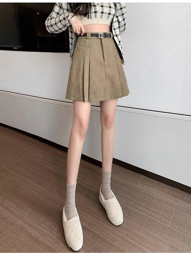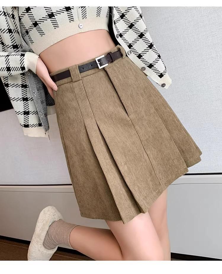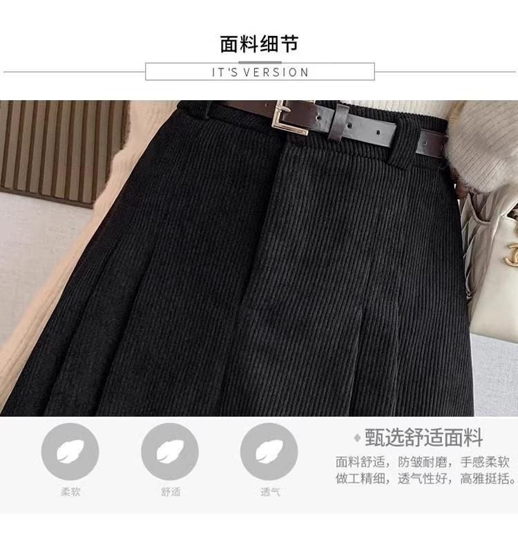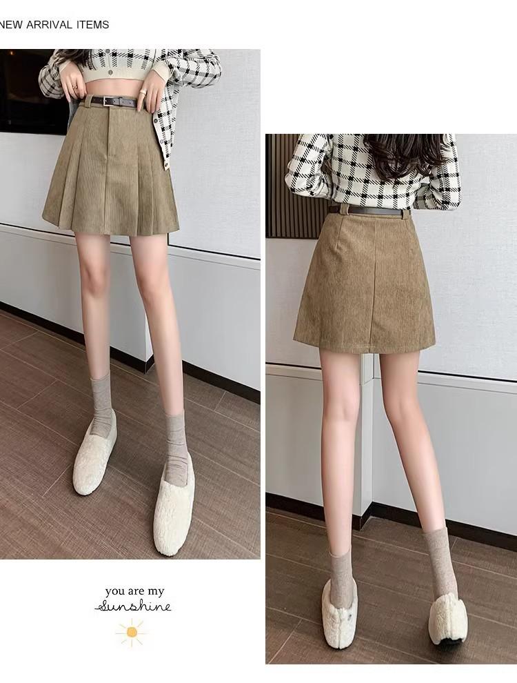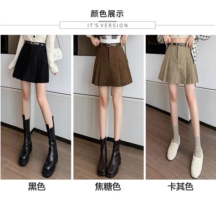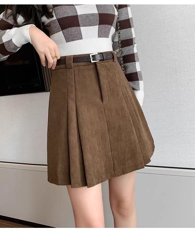 Falda de pana plisada para mujer Primavera Otoño Invierno 2024 Nueva Talla Pequeña Temperamento Cintura Alta Línea A Falda Corta