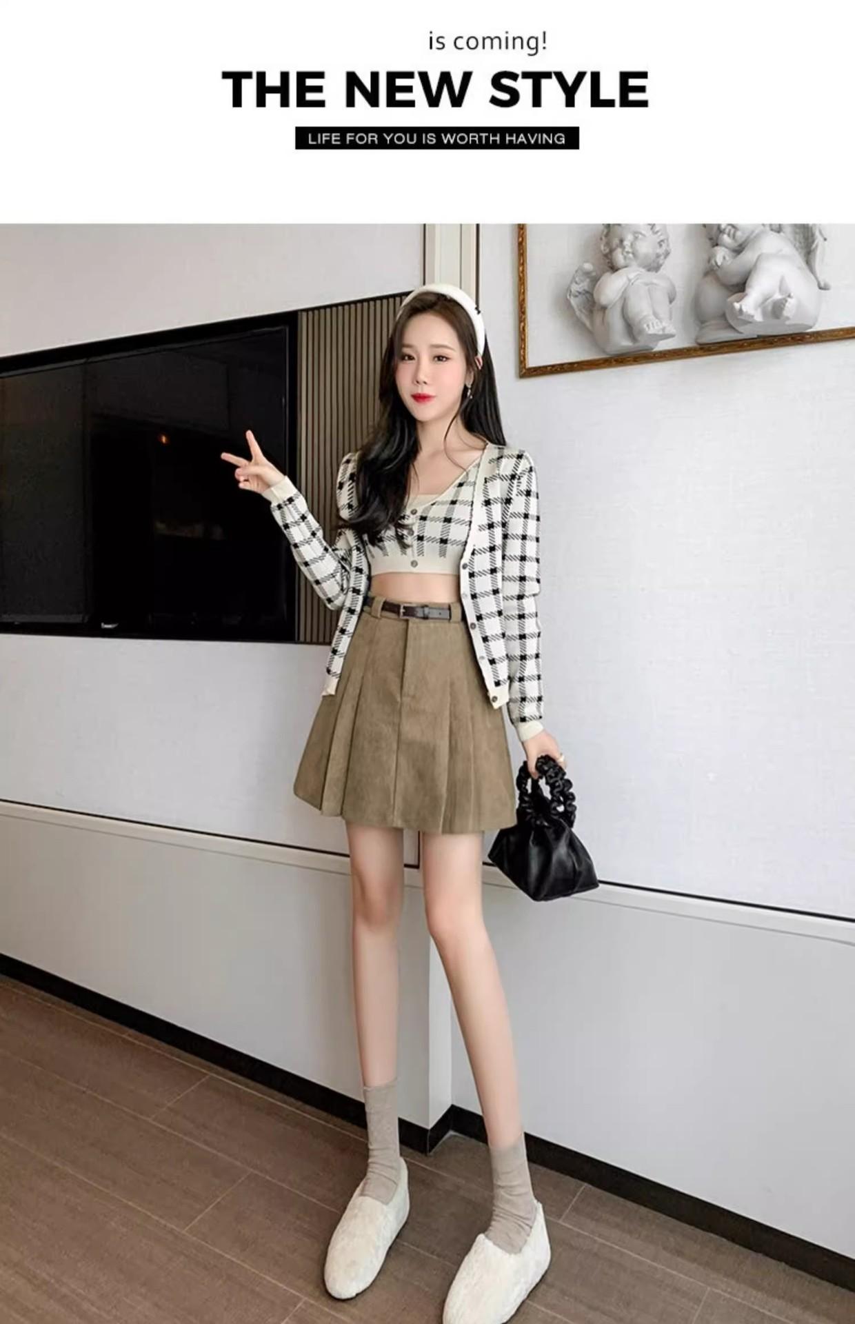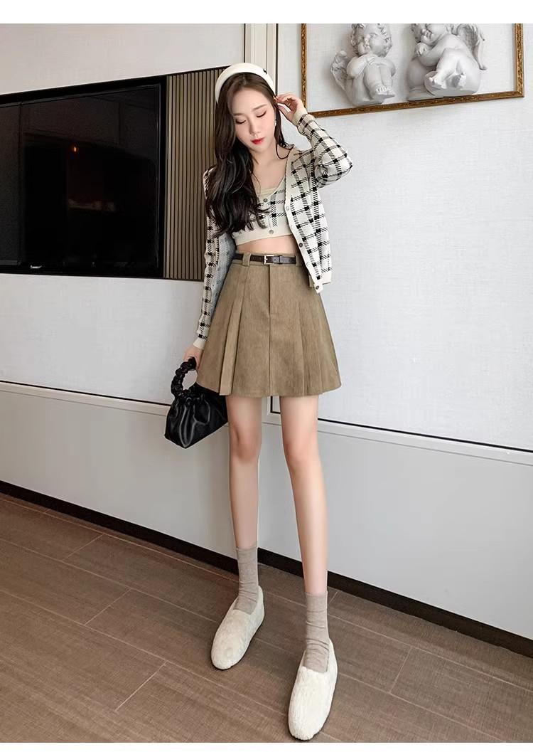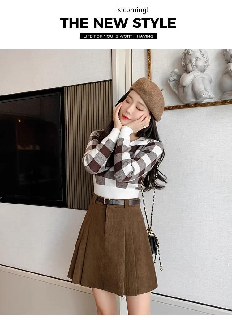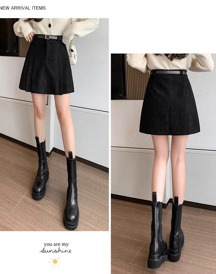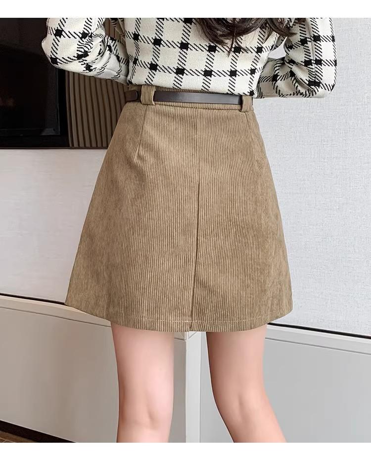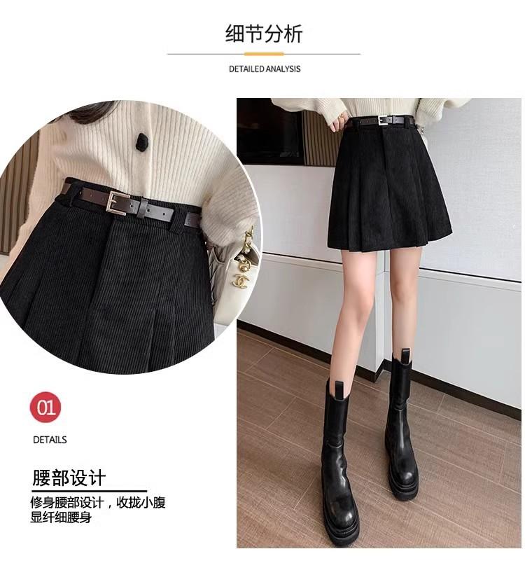 Falda de pana plisada para mujer Primavera Otoño Invierno 2024 Nueva Talla Pequeña Temperamento Cintura Alta Línea A Falda Corta