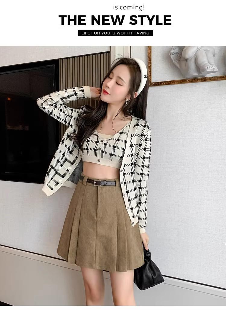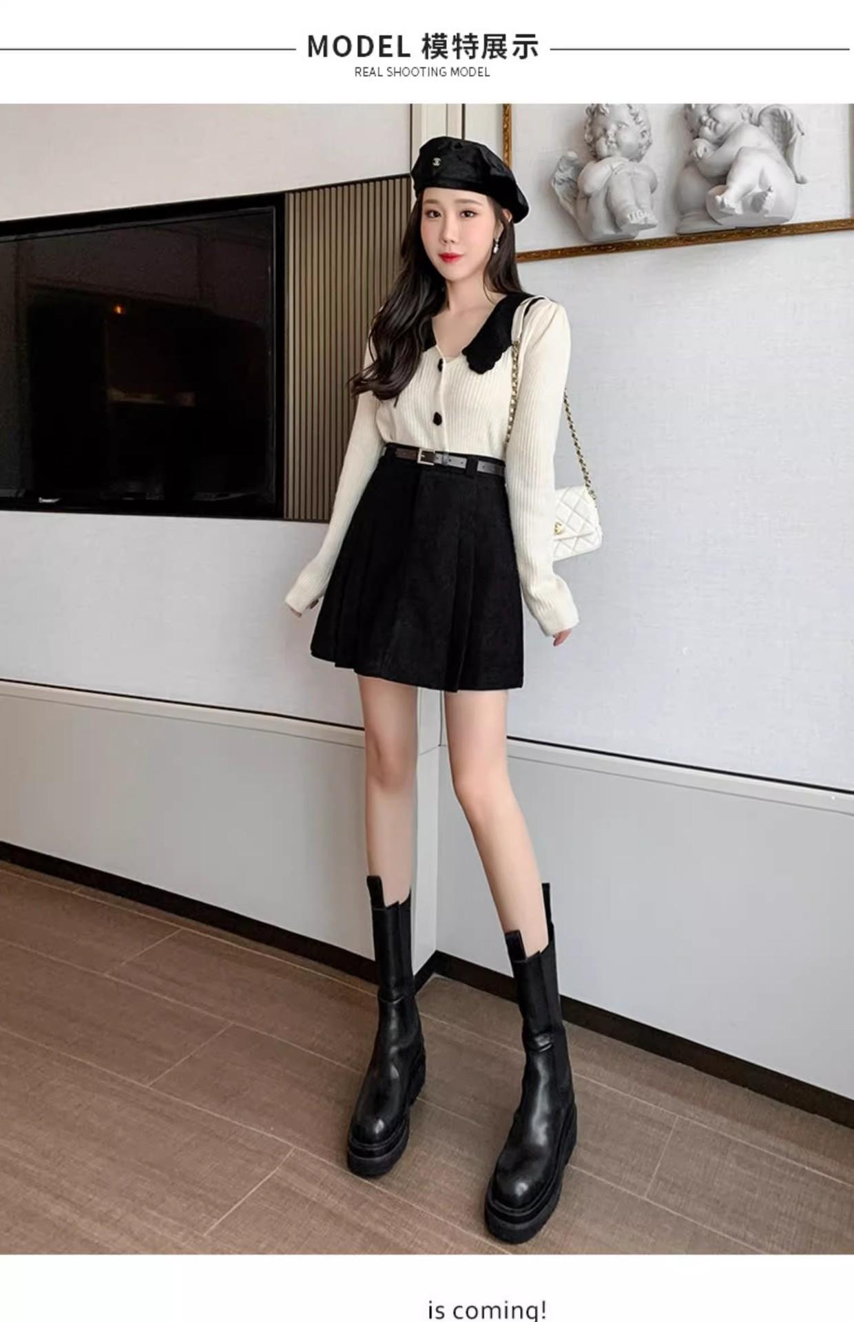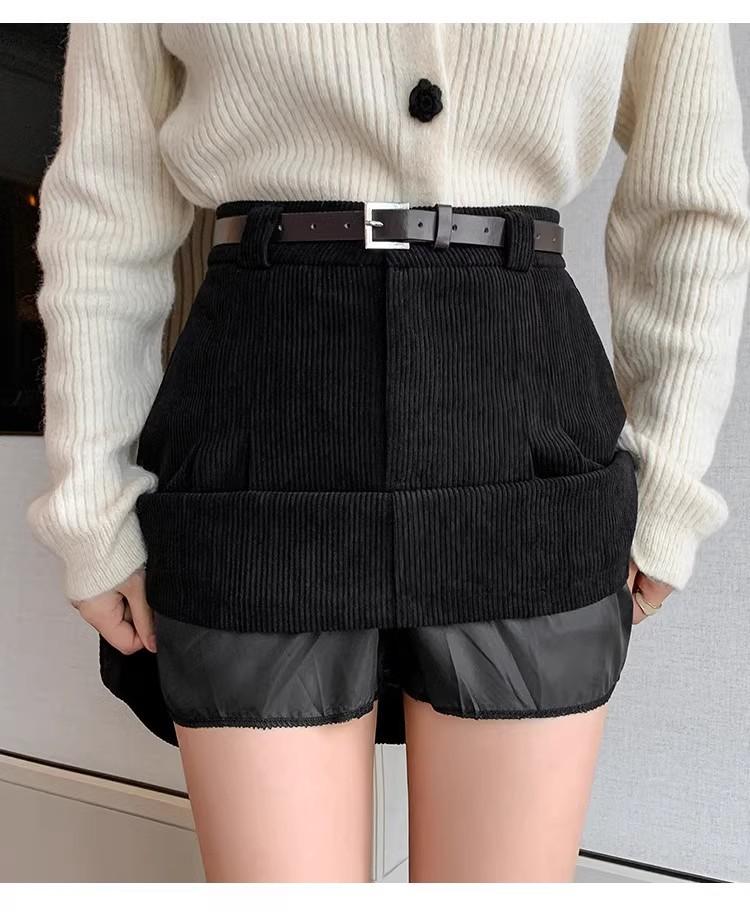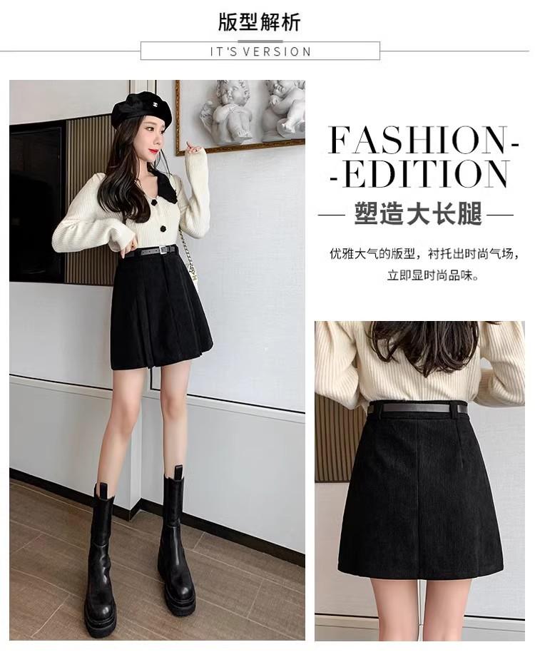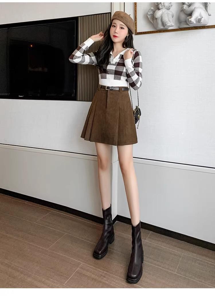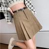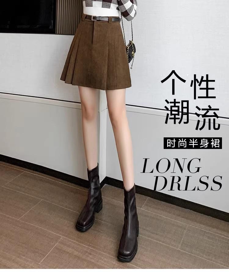 Falda de pana plisada para mujer Primavera Otoño Invierno 2024 Nueva Talla Pequeña Temperamento Cintura Alta Línea A Falda Corta