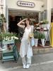 Vestido Blanco con Cordones y Lazo para Mujer Verano 2025 Nuevo Apilado Moda Adelgazante Chic Sling Vestido Midi