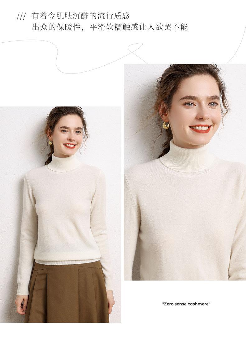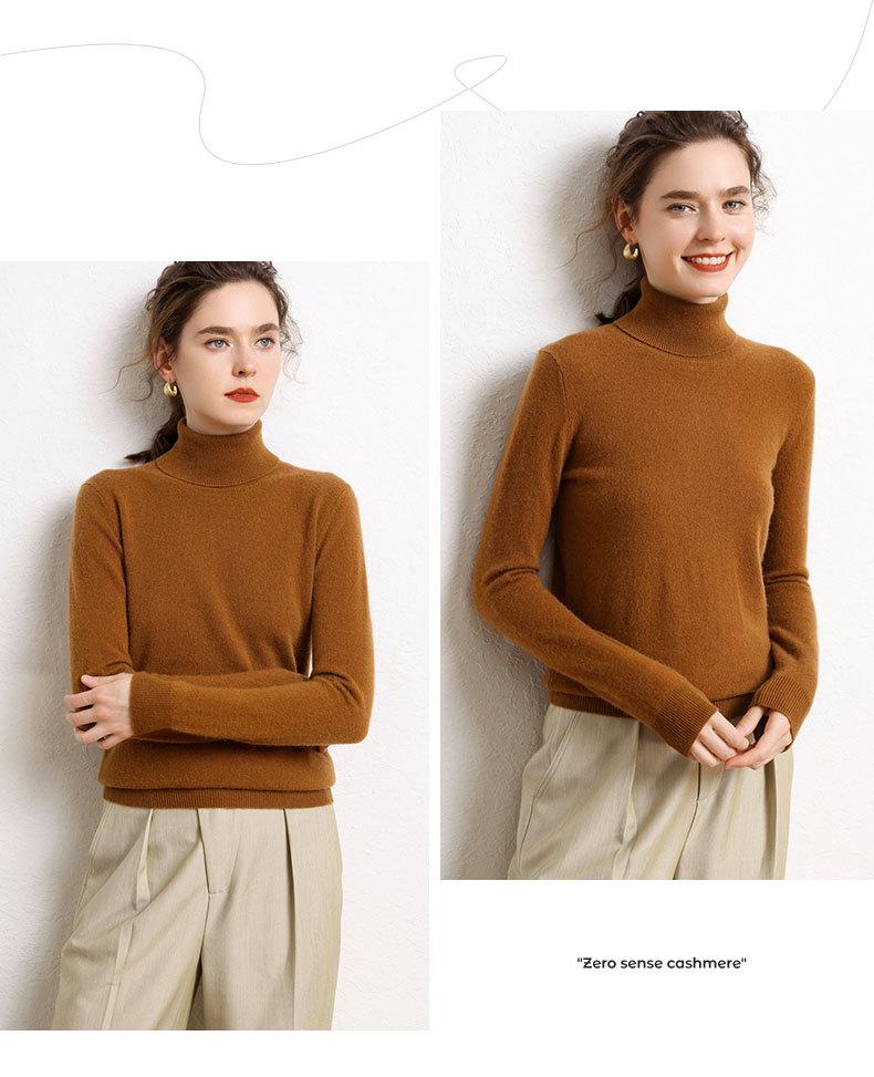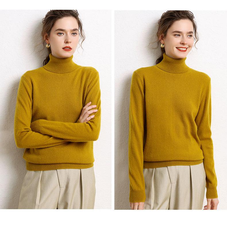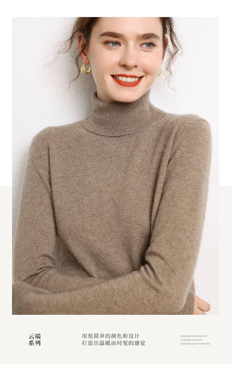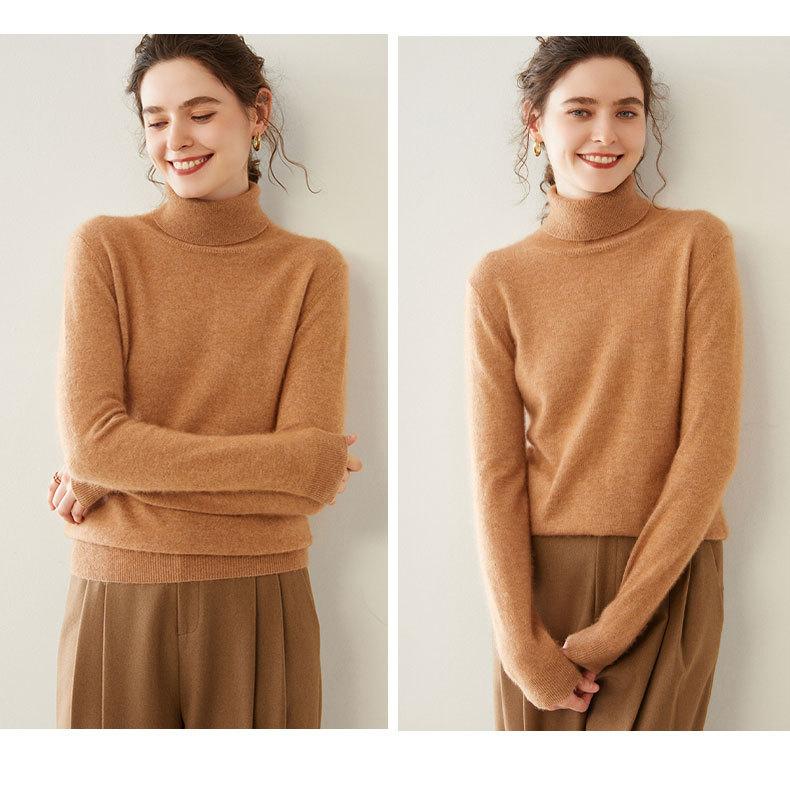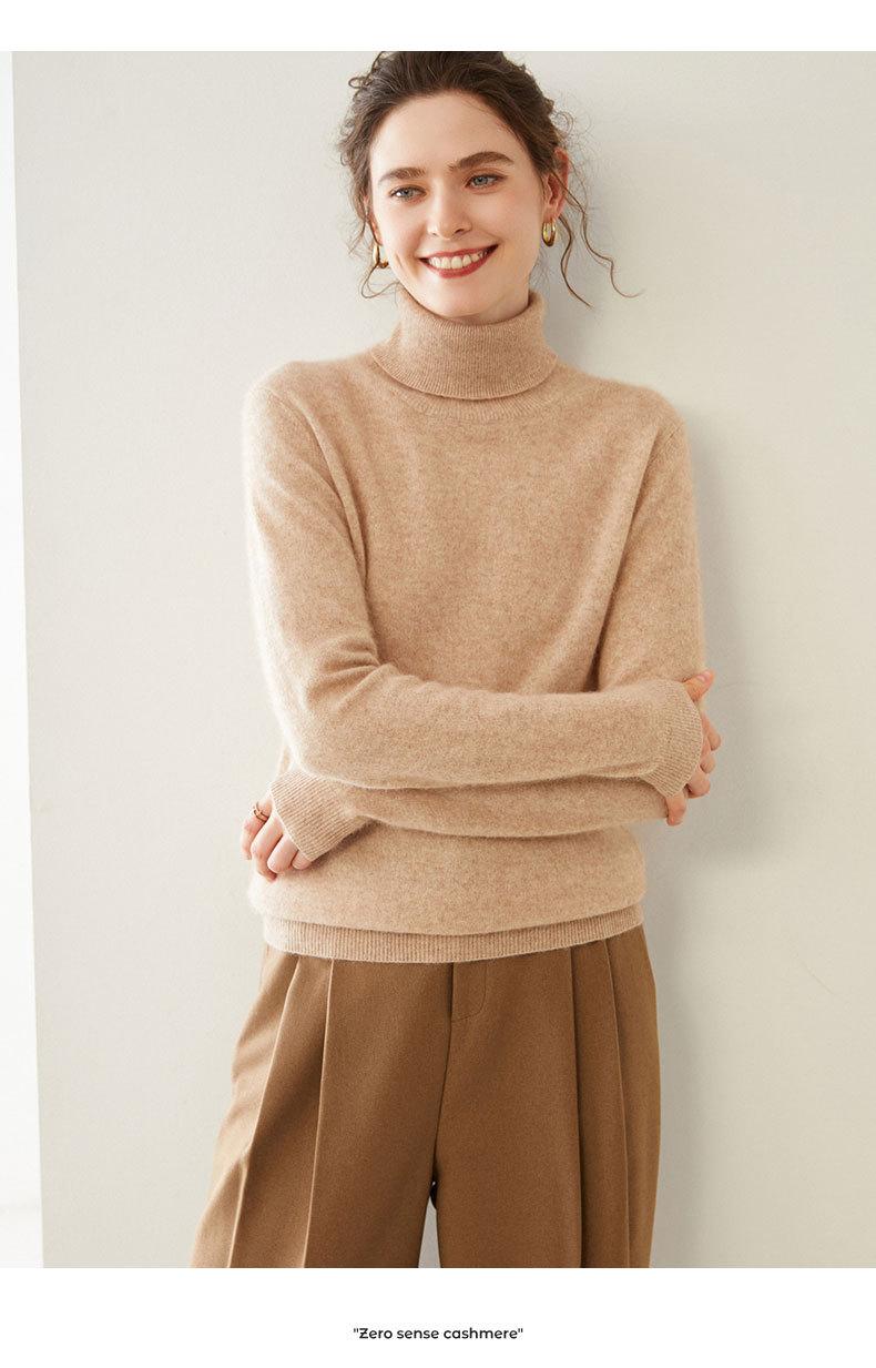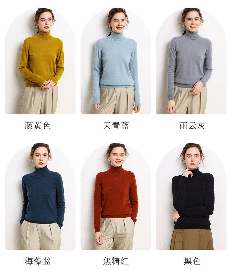 Suéter de cachemira sin costuras de otoño e invierno de manga larga ajustado de cuello alto tejido de lana base suéter cálido versátil cálido moda