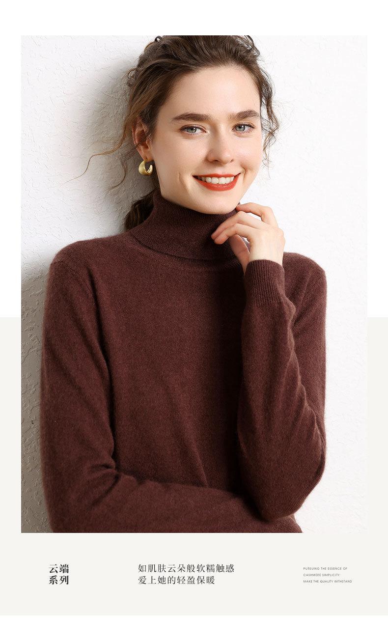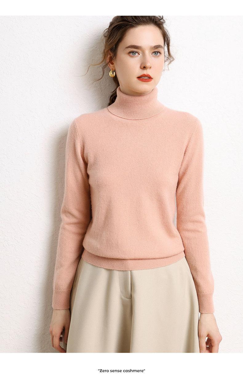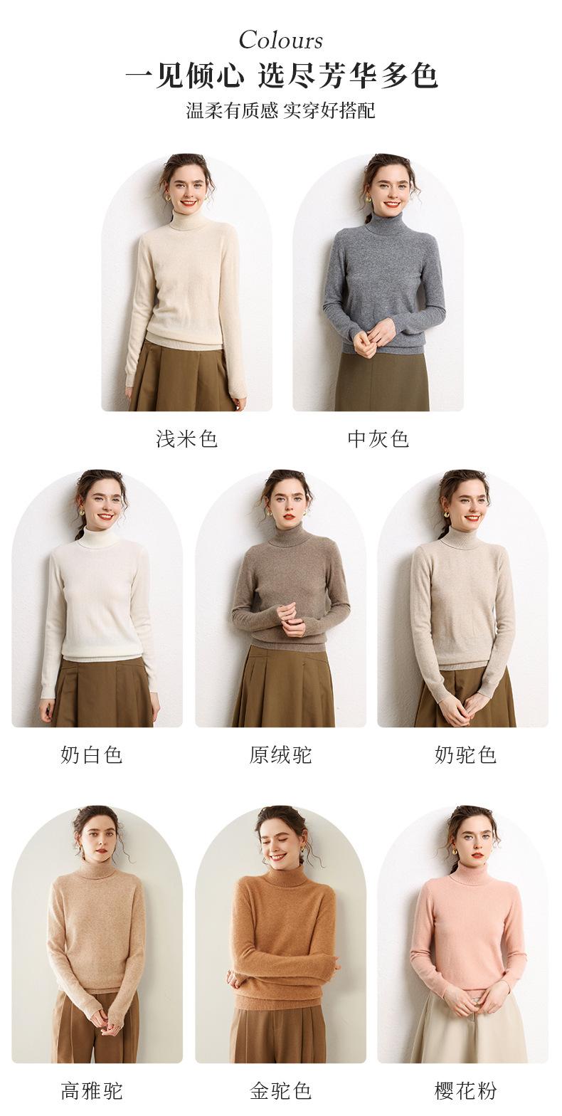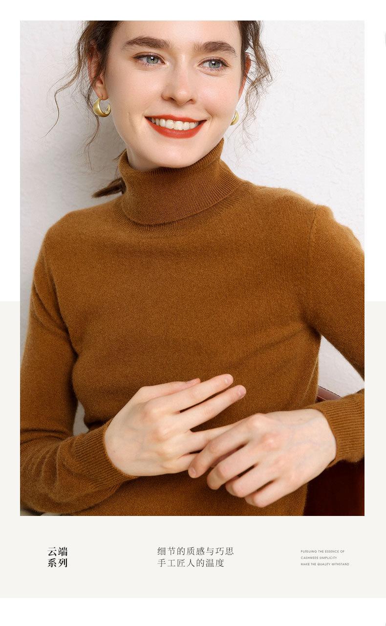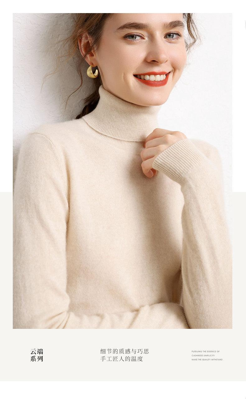 Suéter de cachemira sin costuras de otoño e invierno de manga larga ajustado de cuello alto tejido de lana base suéter cálido versátil cálido moda