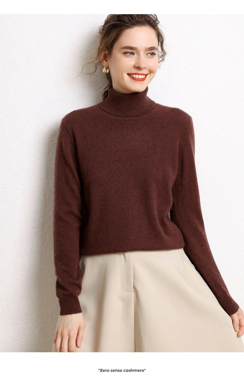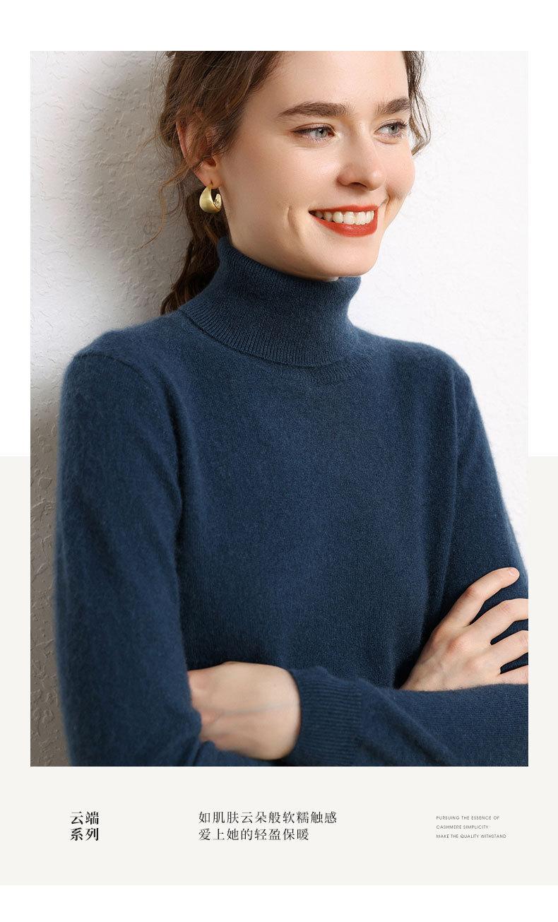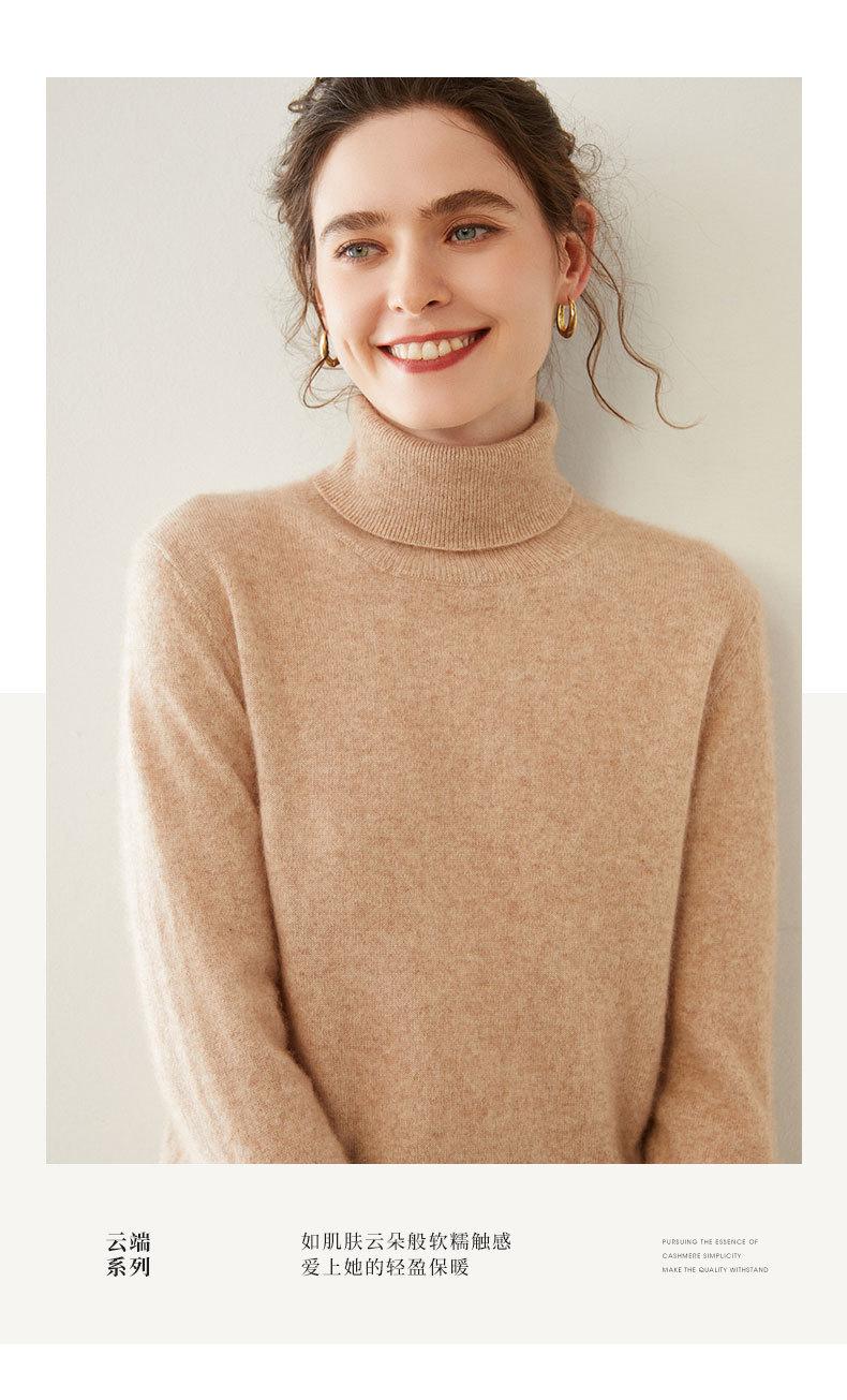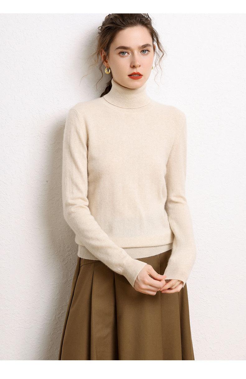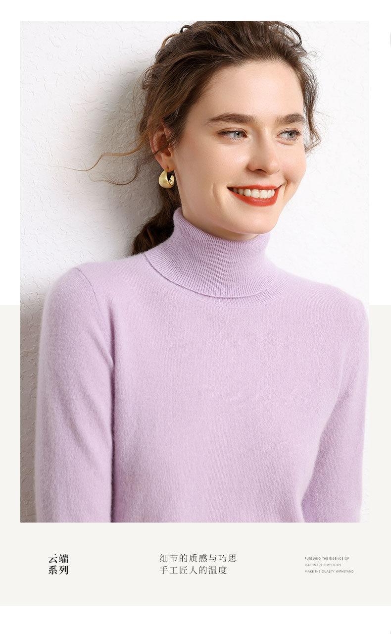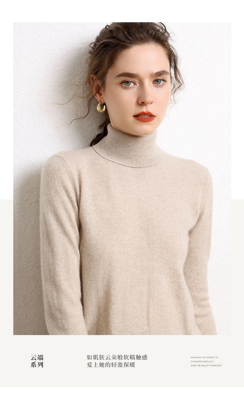 Suéter de cachemira sin costuras de otoño e invierno de manga larga ajustado de cuello alto tejido de lana base suéter cálido versátil cálido moda