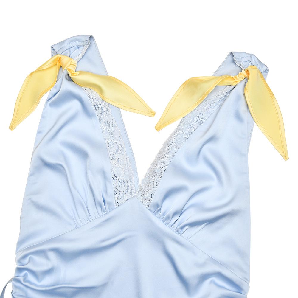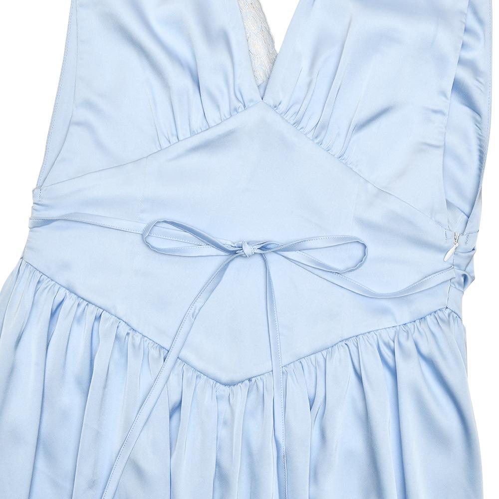 blue, Pink, Made of satin fabric, with lace deep V backless design