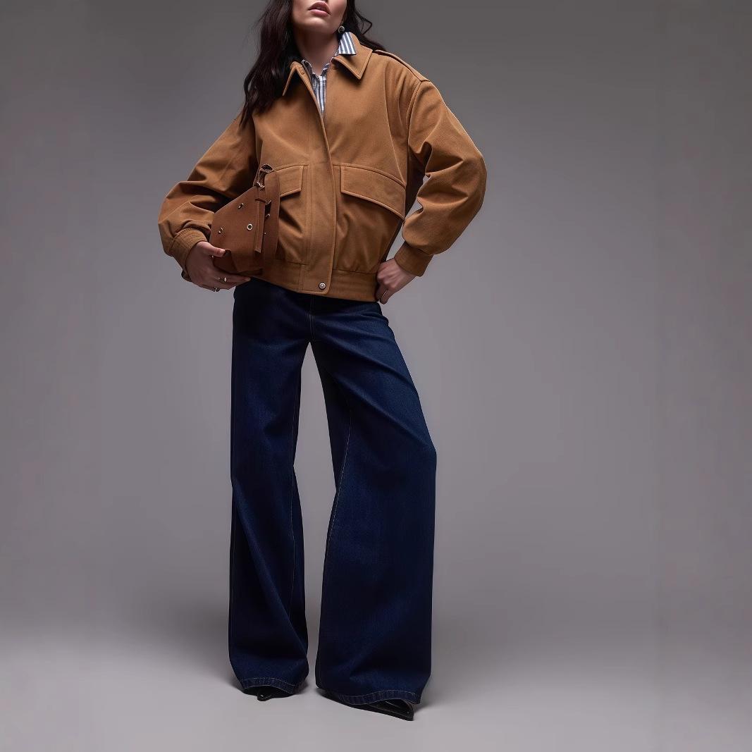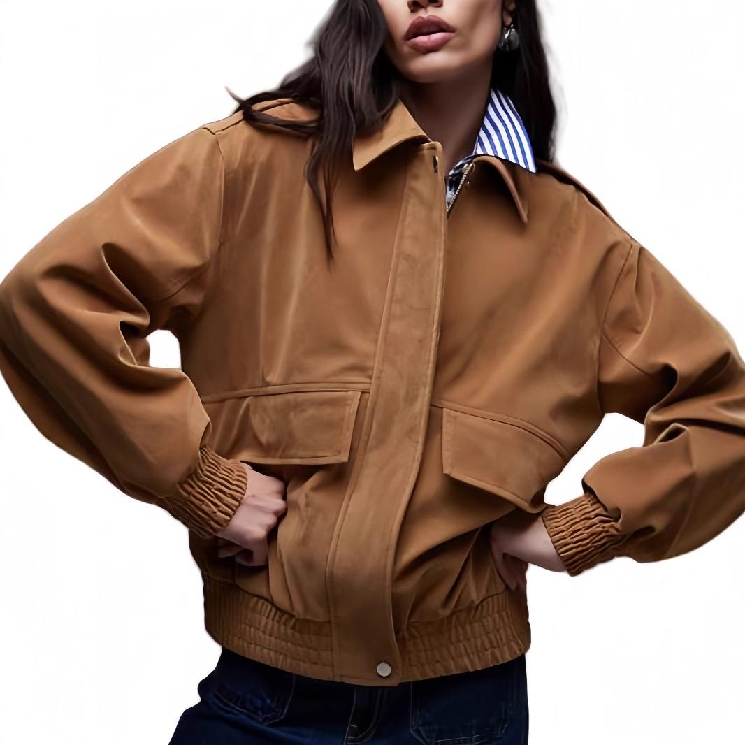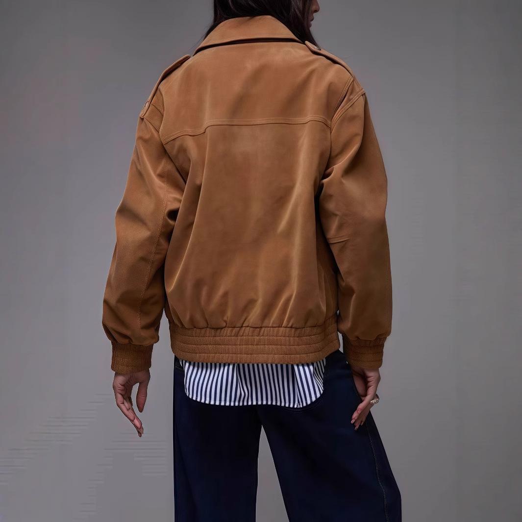 Chaqueta Estilo Americano Chaqueta Bomber de Gamuza Sintética de Alta Gama 2025 Transfronteriza Amazon para Mujer Holgada Manga Larga