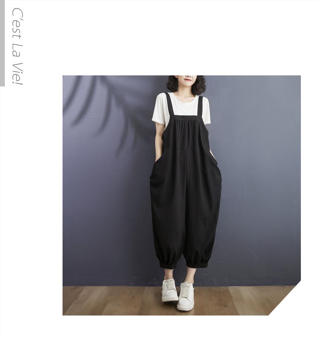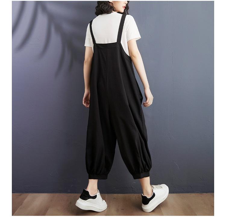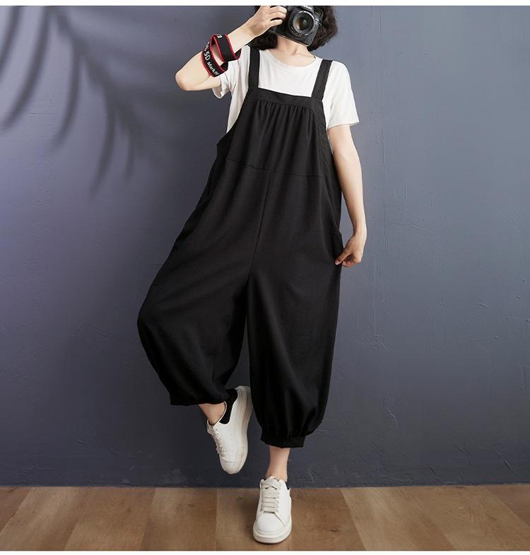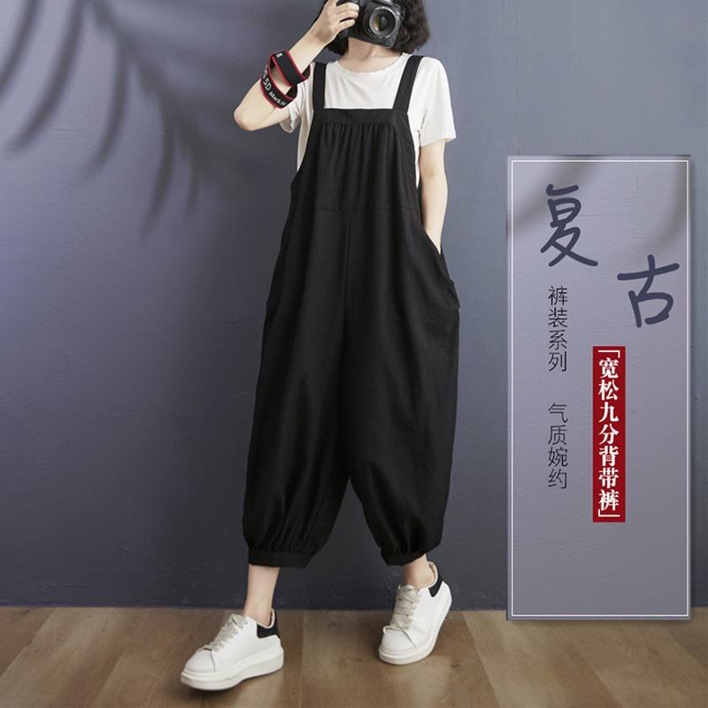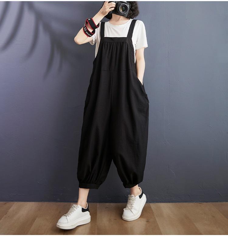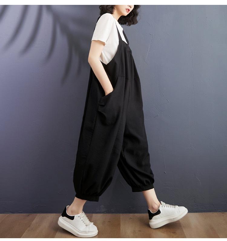 2025 Verano Literario Talla Grande para Mujer Overol Casual Suelto Bolsillo Grande Entrepierna Baja Casual Pantalón Harem Nueve Puntos