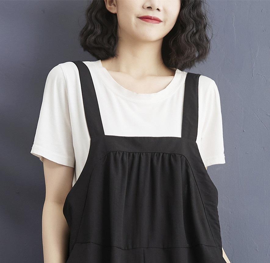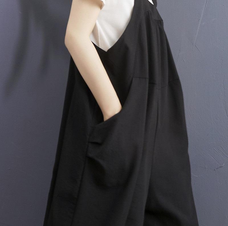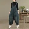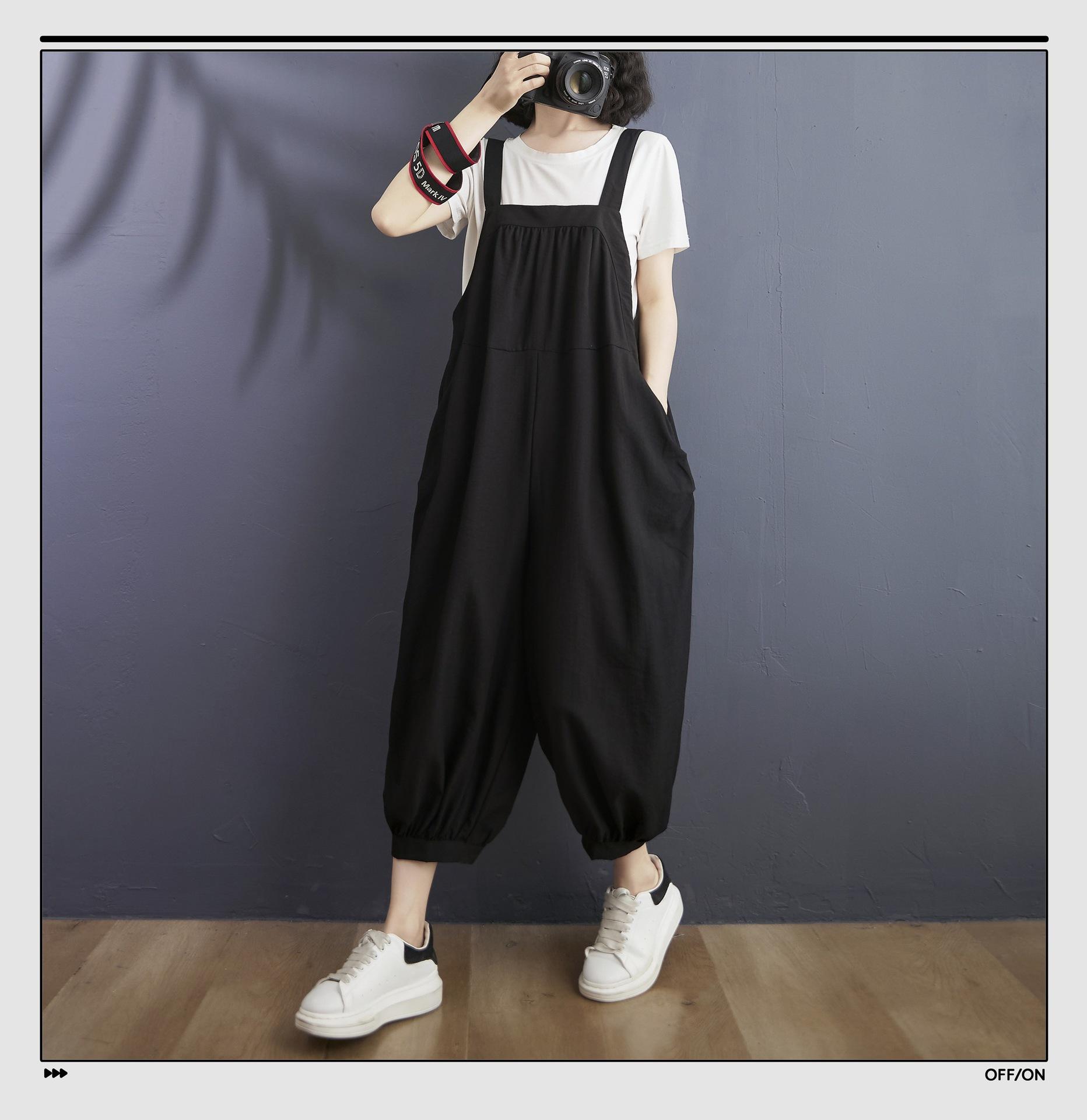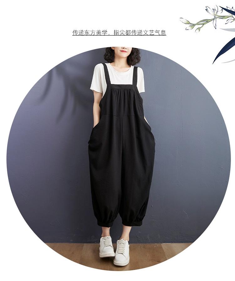 2025 Verano Literario Talla Grande para Mujer Overol Casual Suelto Bolsillo Grande Entrepierna Baja Casual Pantalón Harem Nueve Puntos