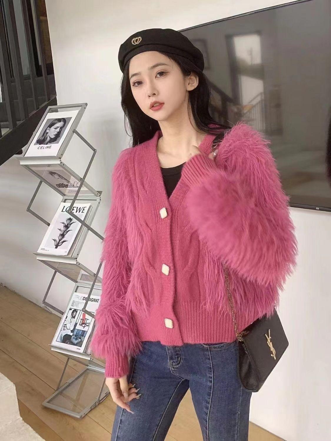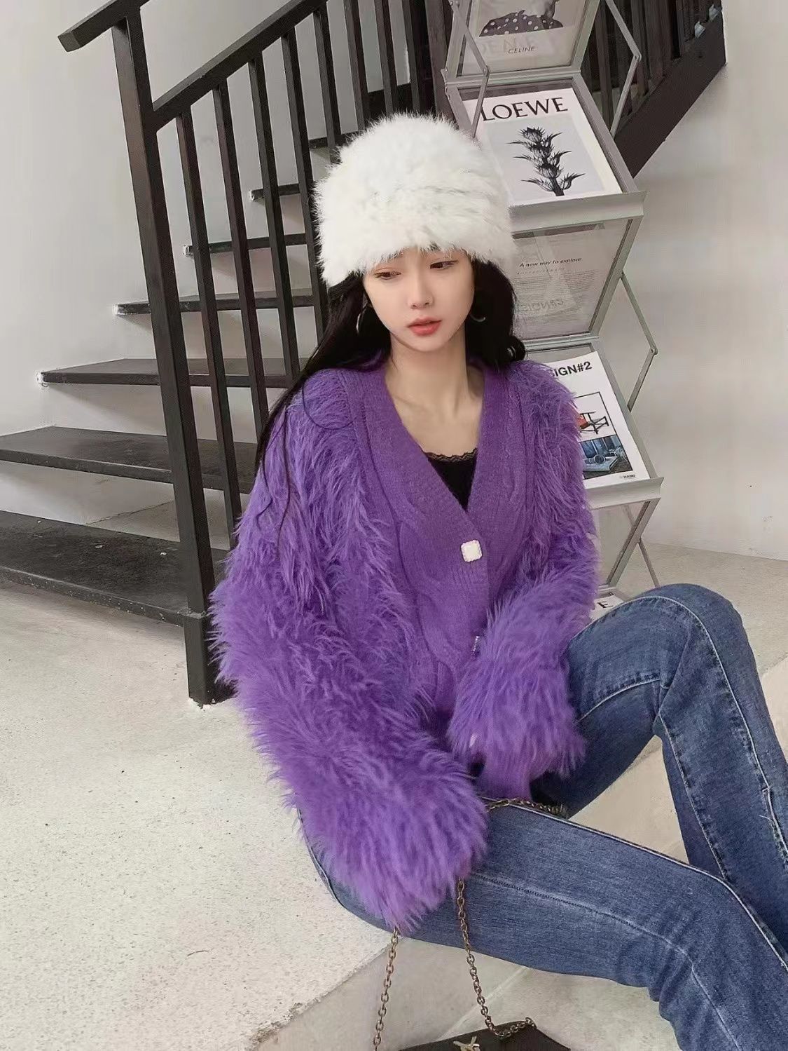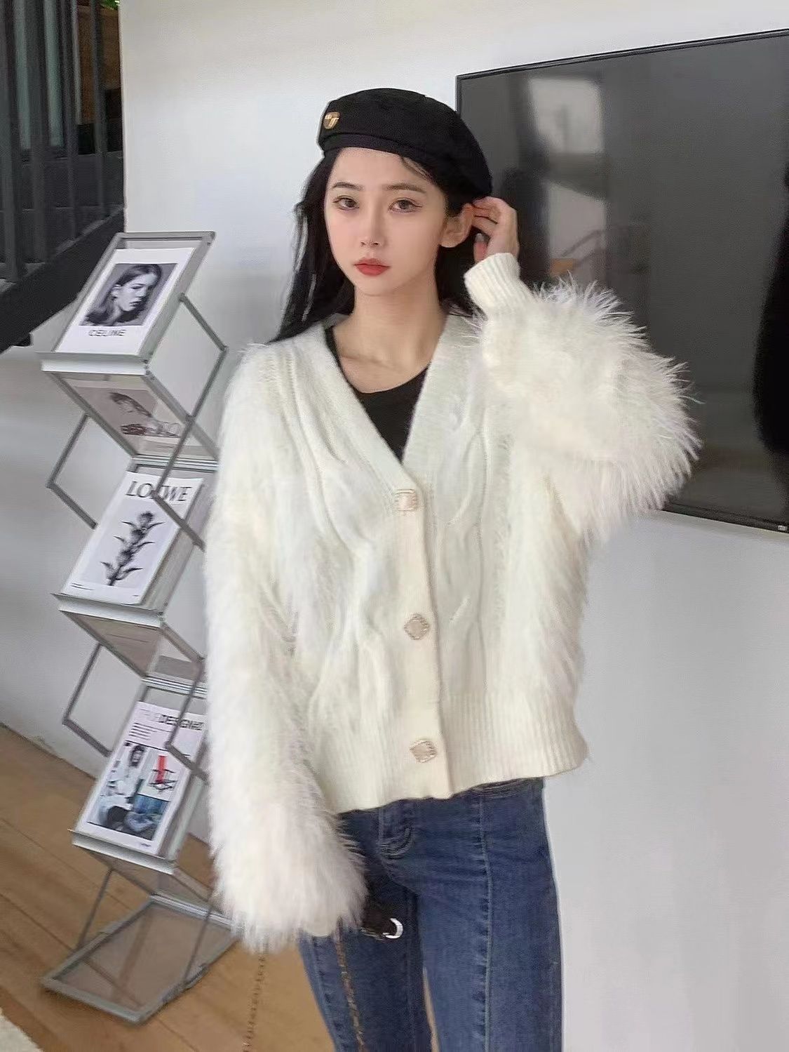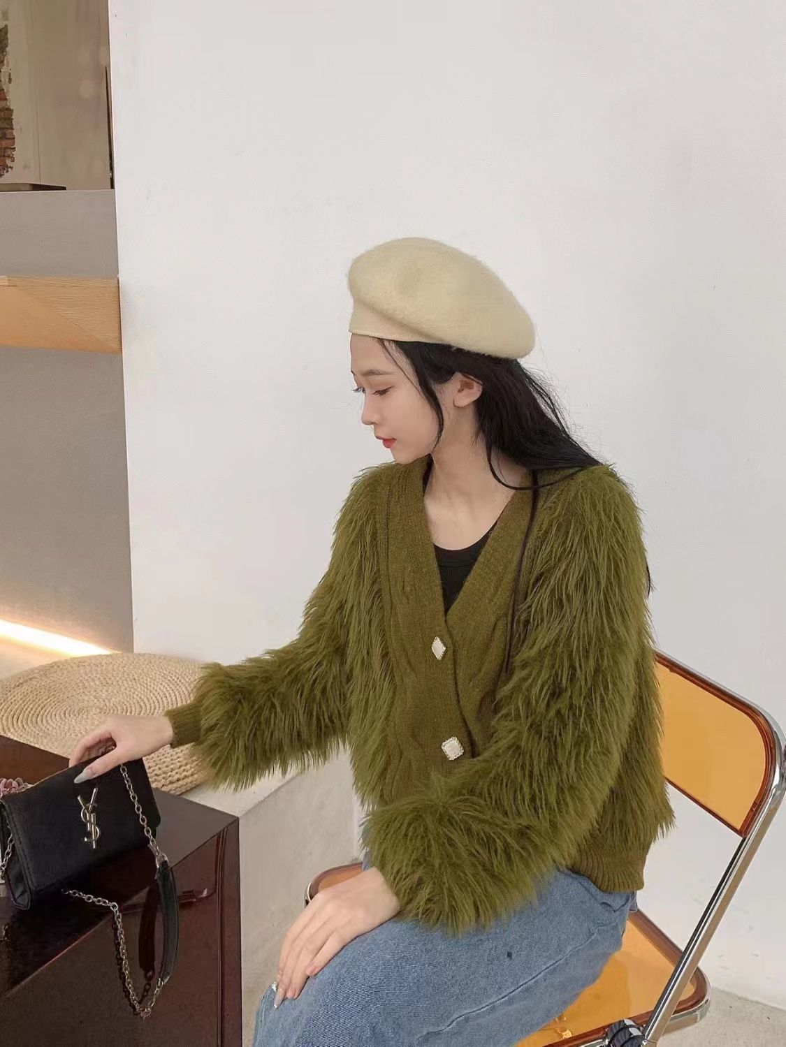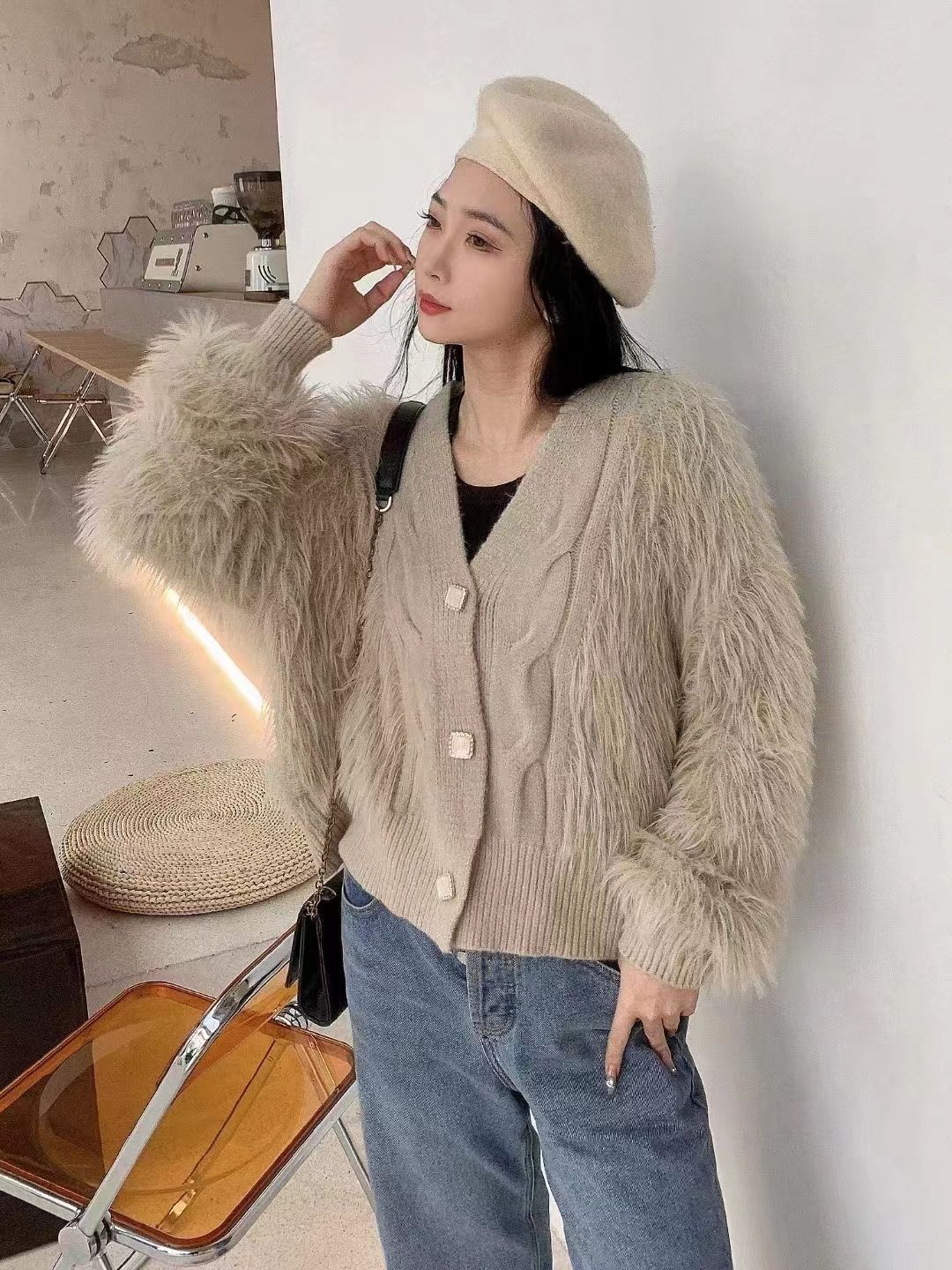2023 Otoño e Invierno Nueva Llegada Estilo Occidental Tejido Cárdigan Corto Grueso de Imitación Visón Terciopelo Suéter Holgado Adelgazante para Mujer