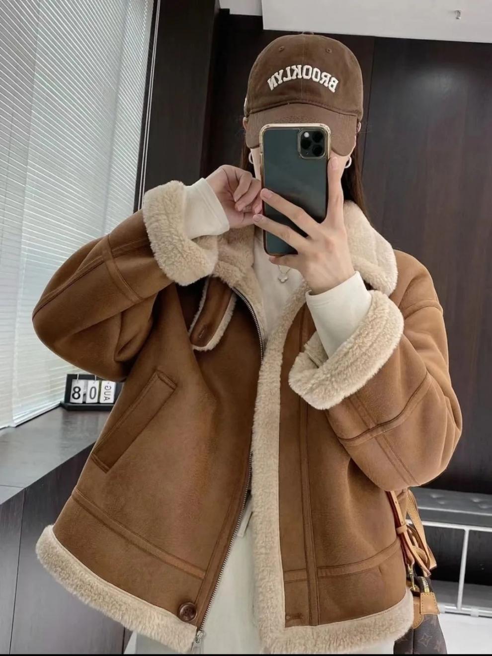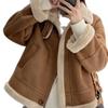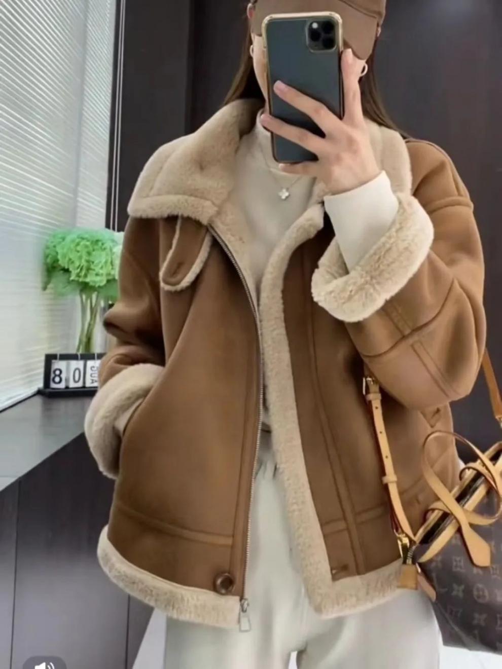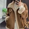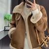 Abrigo de Lana de Cordero para Mujer Otoño e Invierno 2024 Nuevo Acolchado de Piel Todo en Uno Chaqueta de Motociclista Top de Algodón de Felpa Corta
