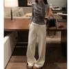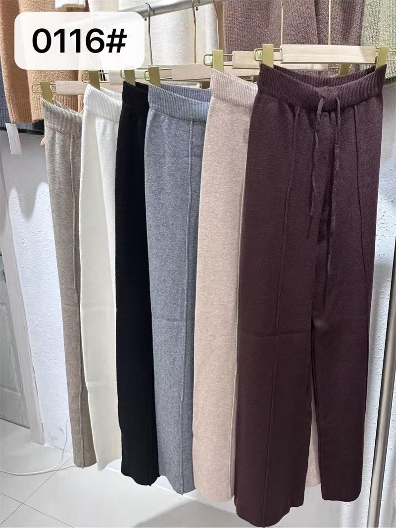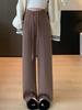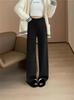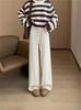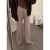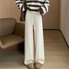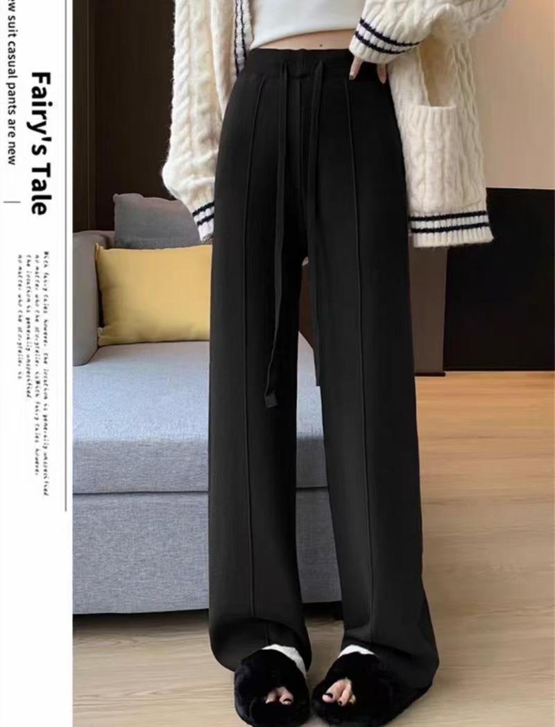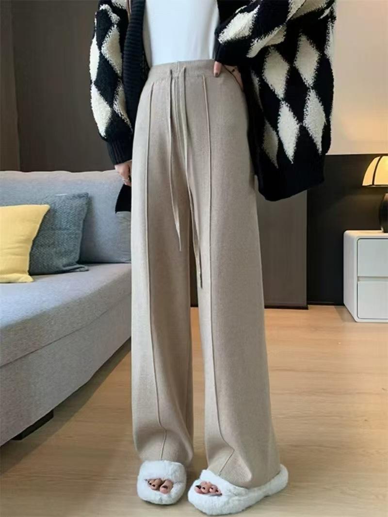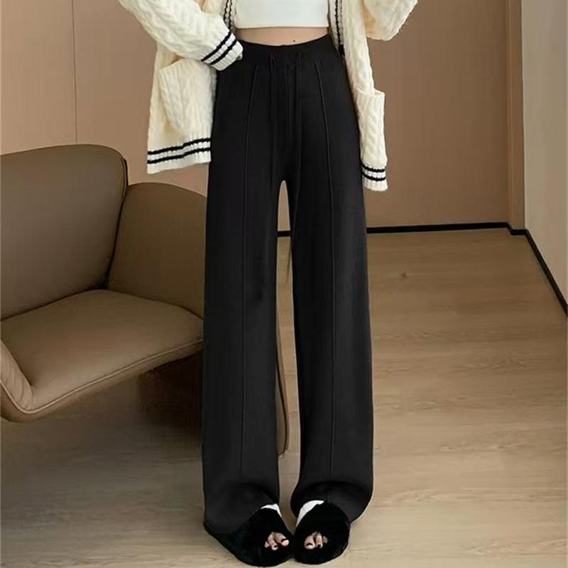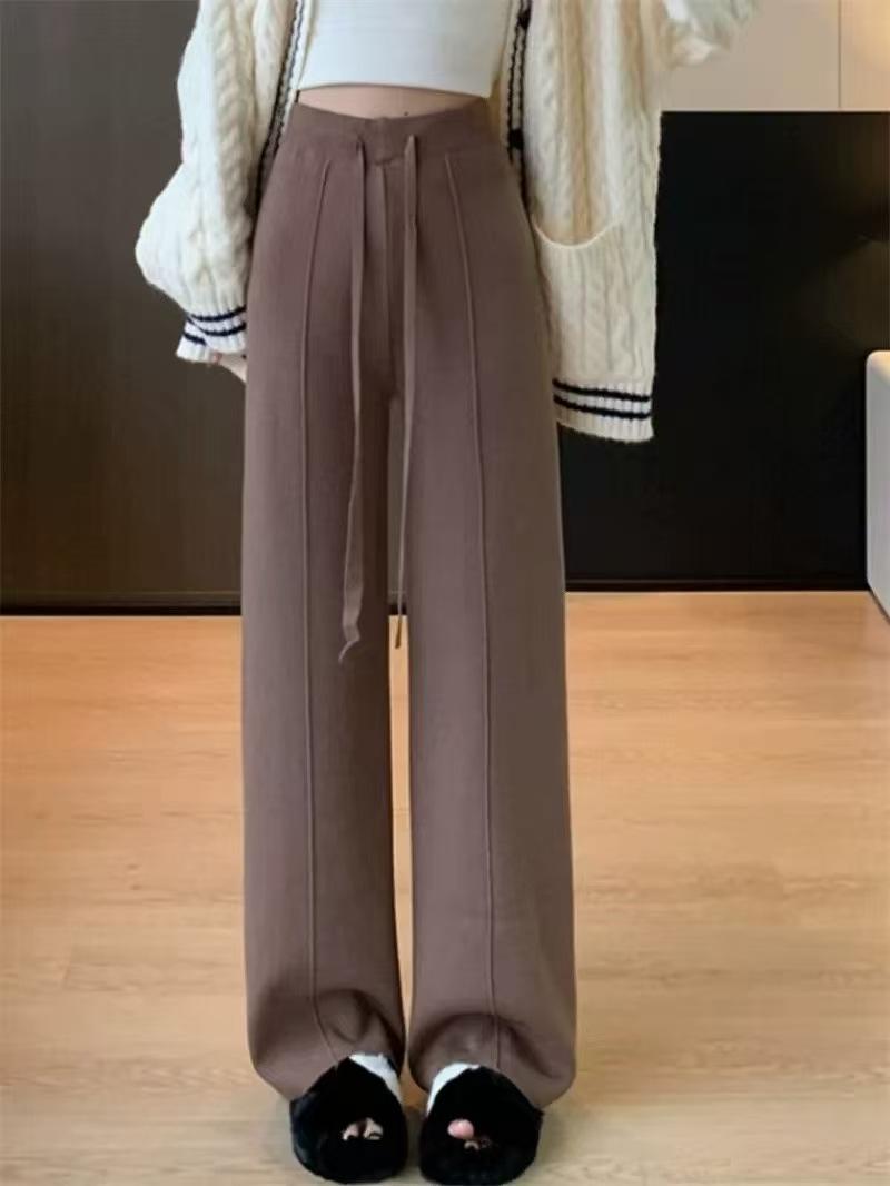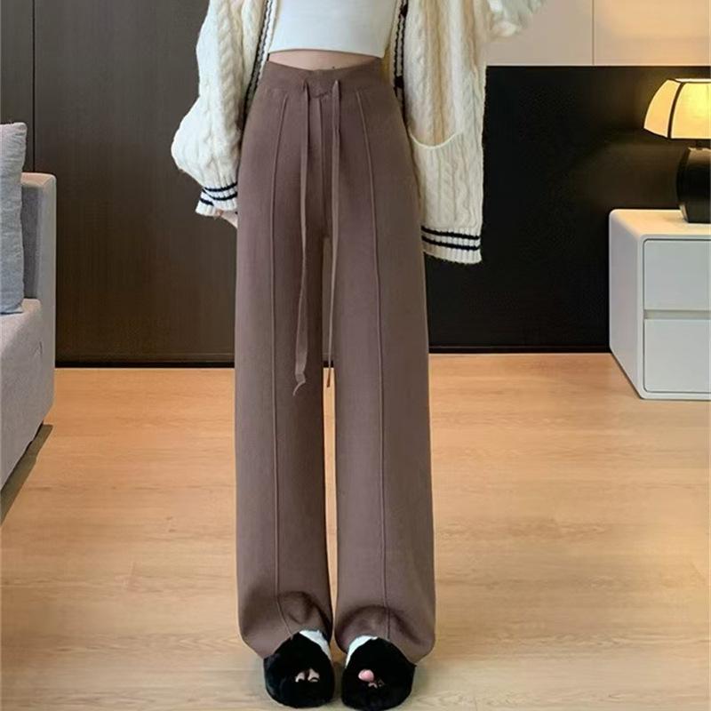Pantalones de Punto de Cintura Alta y Pierna Ancha 2025 Nuevo Otoño e Invierno Moda Casual Slim Versátil Color Sólido Petite Rectos