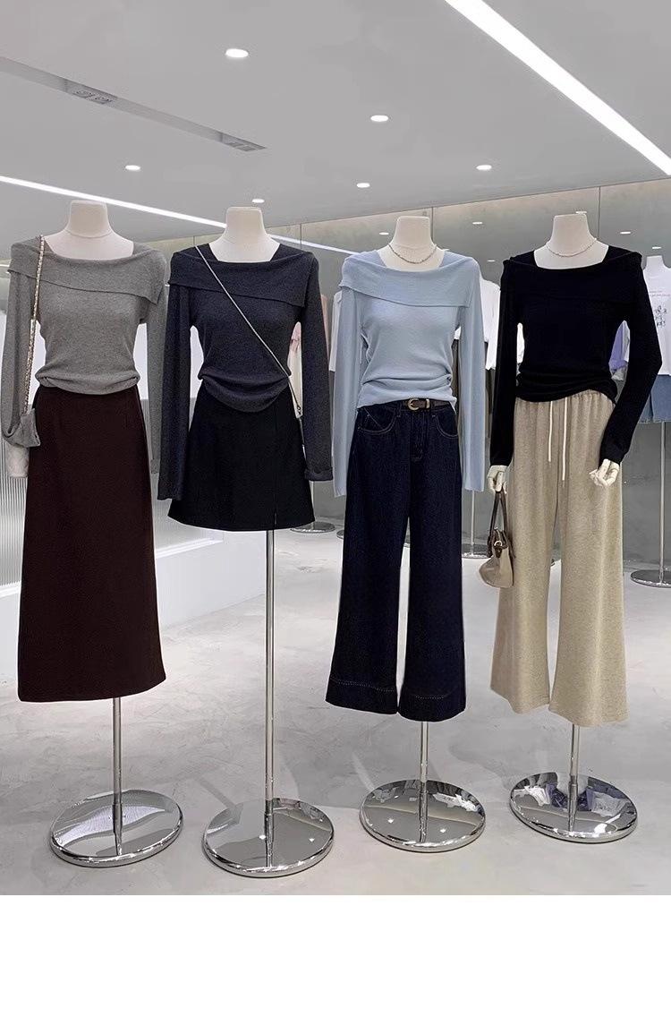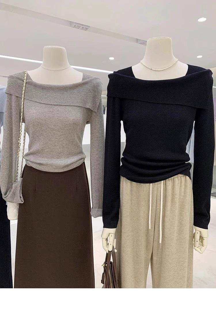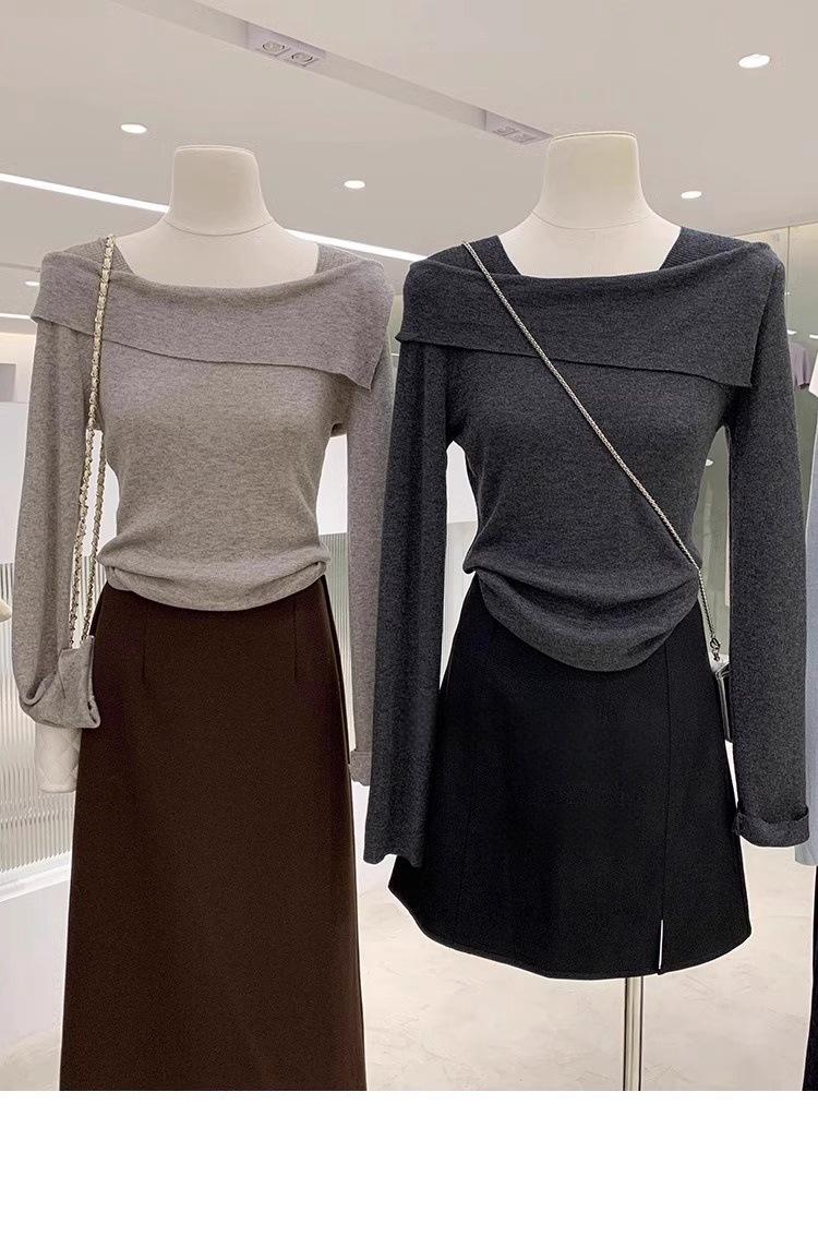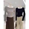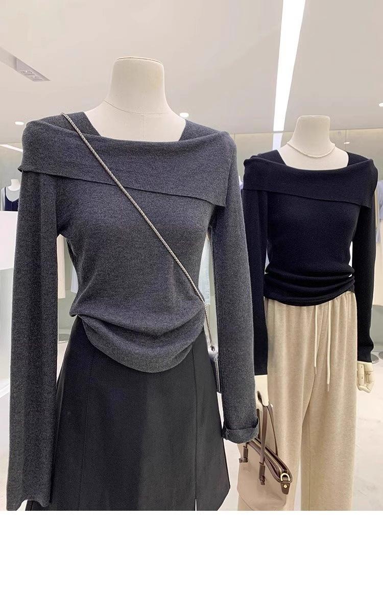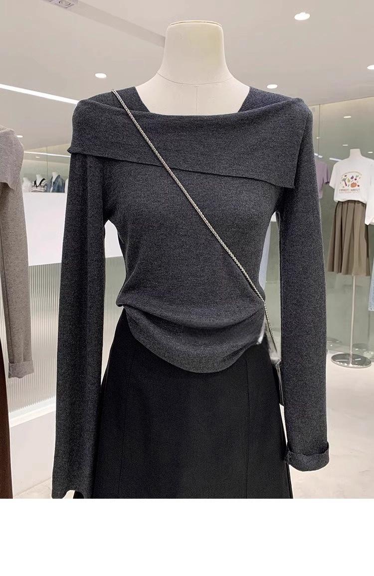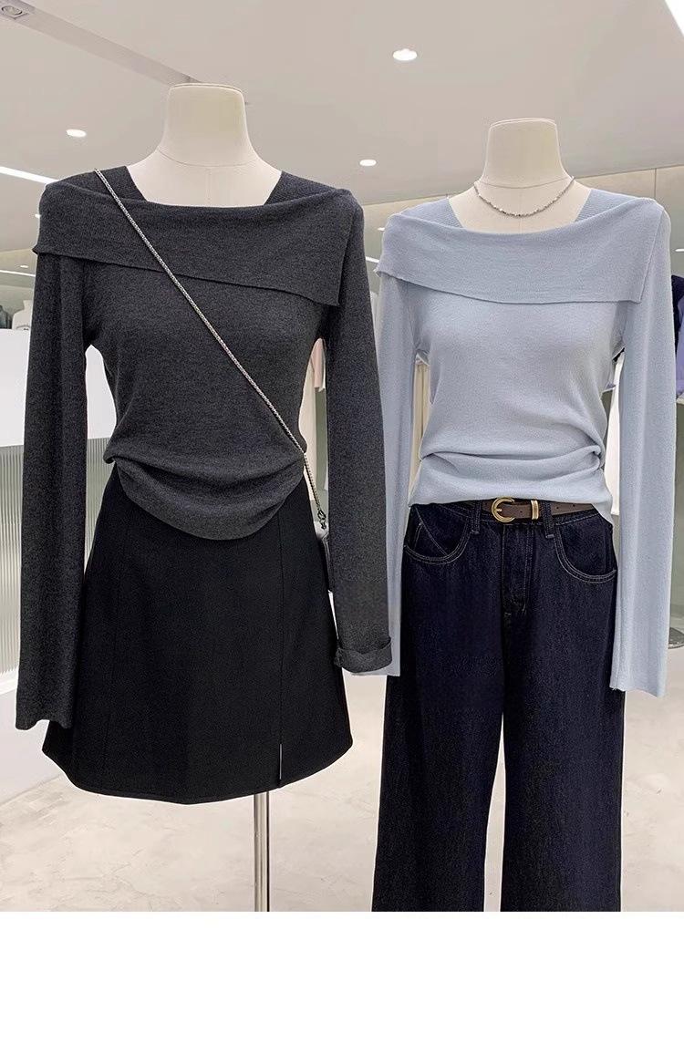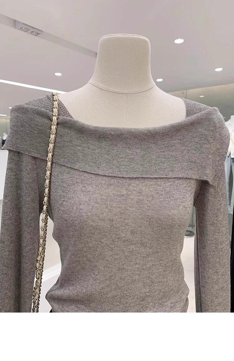 Top Irregular de un Hombro Descubierto para Mujer Primavera 2025 Suéter de Punto Suave y Encerado Estilo Coreano Elegante Slim Camiseta Básica