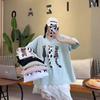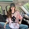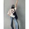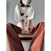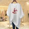 Comercio Exterior Transfronterizo Verano Suelto Largo Medio Algodón Puro Manga Corta Camiseta Tops Estampado de Gato Personalizado Camiseta Básica para Mujer
