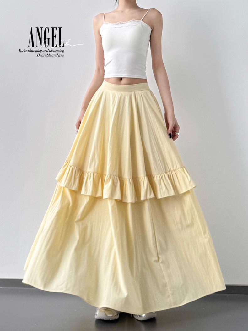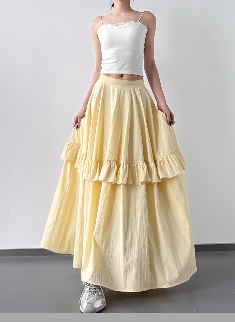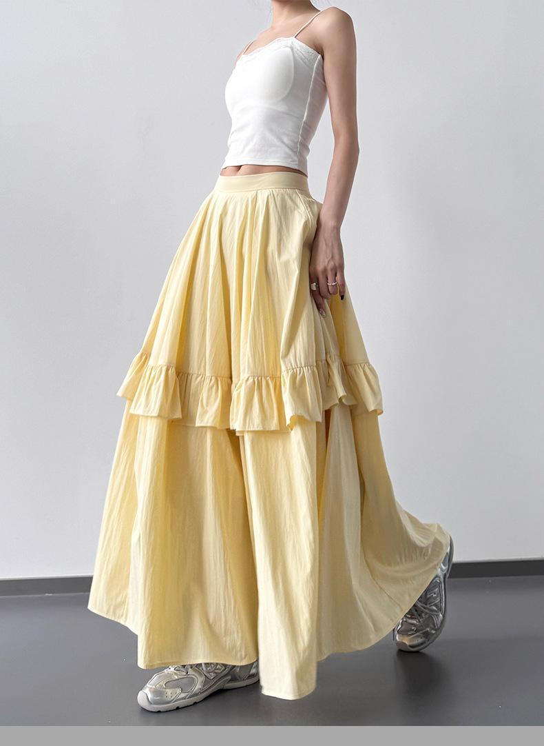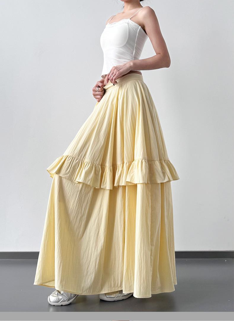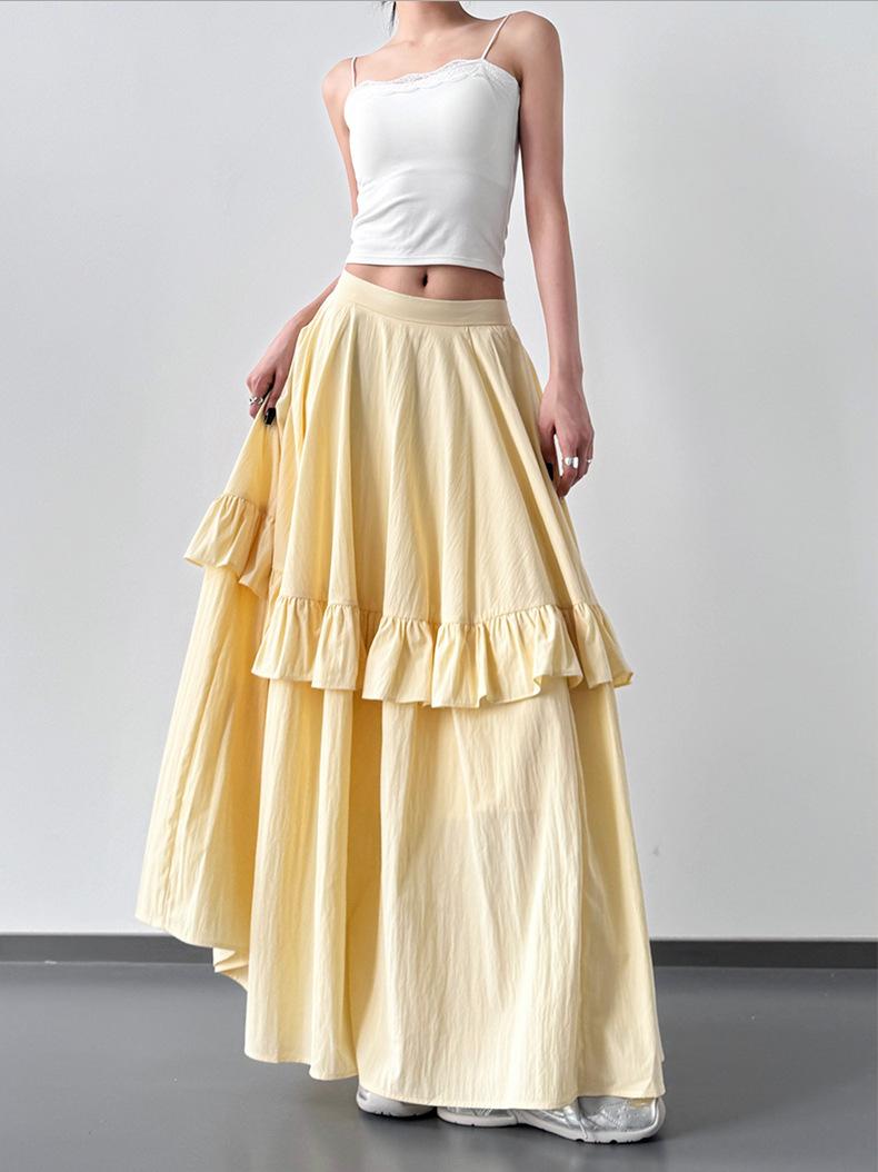 2025 Nueva Falda Amarilla de Verano para Mujer Falda Larga Versátil Casual Suelta Ajustada de Cintura Alta para Mujer Falda de Pastel