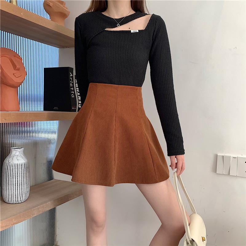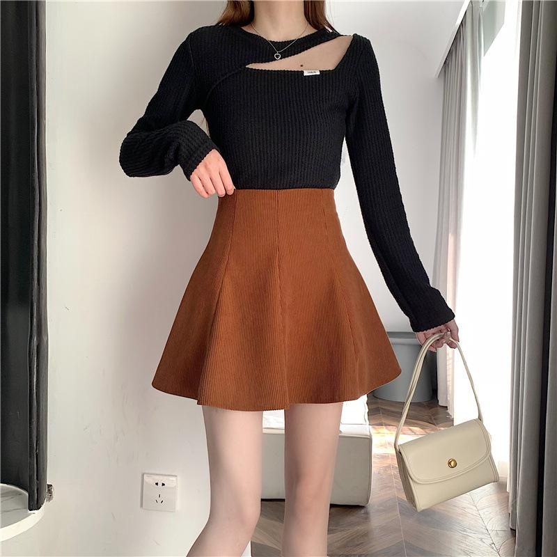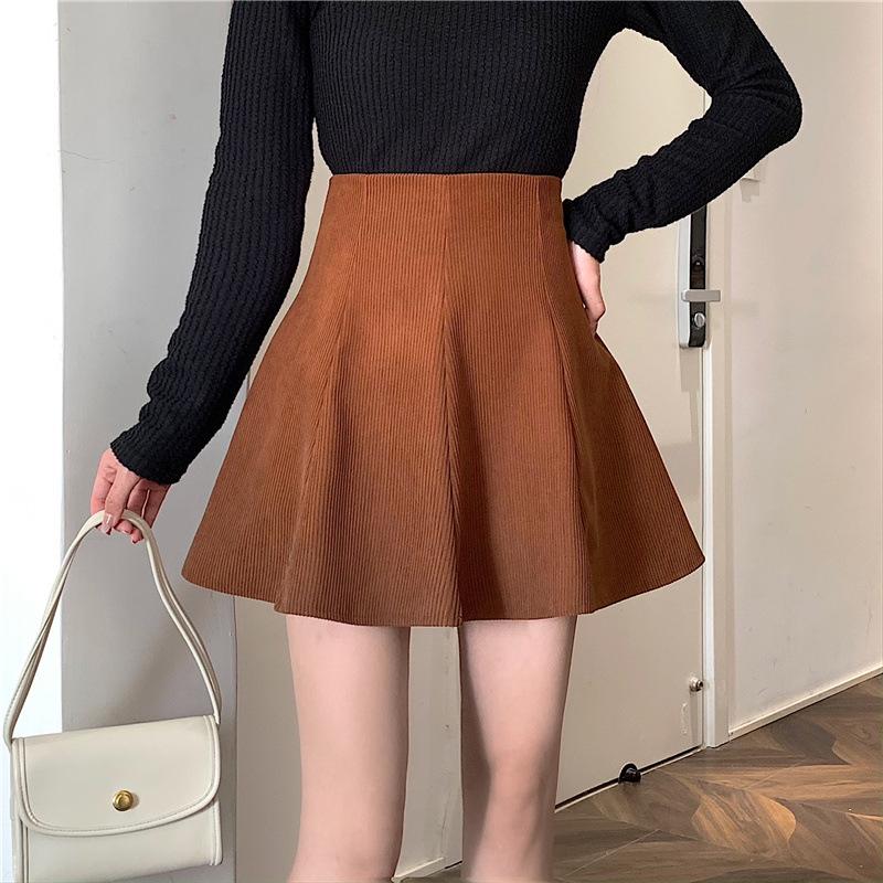 Falda midi de pana acampanada para mujer 2025 otoño e invierno nuevo estilo cintura alta acampanada petite falda corta para combinar con suéter