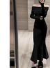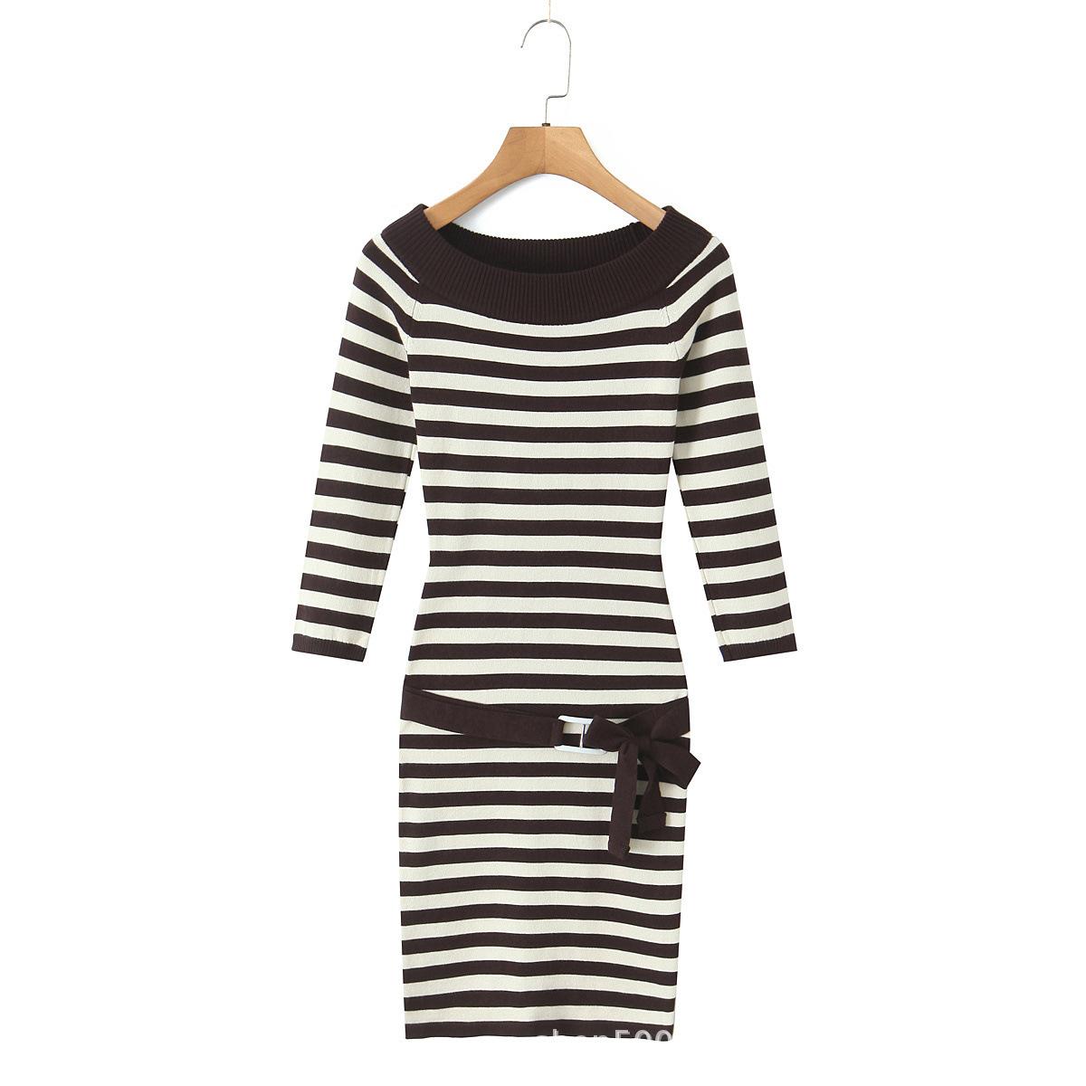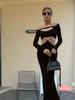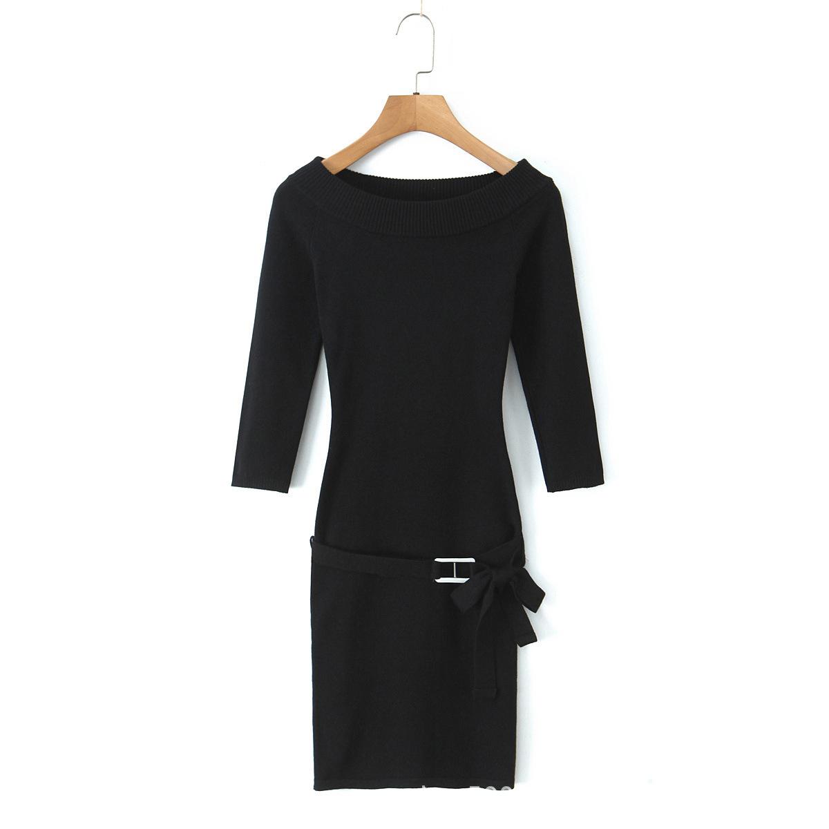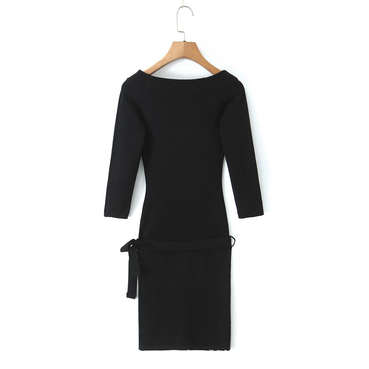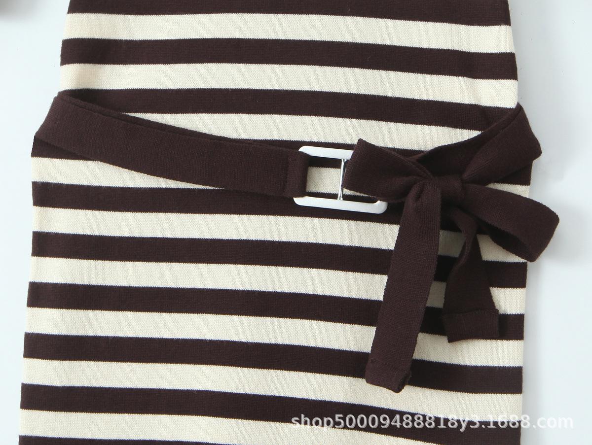 Vestido de Falda Tejida con Diseño Retro Americano Sexy de Otoño 2025 de un Hombro con Aspecto Adelgazante y Cinturón