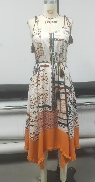 Vestido de Tirantes Estilo Vacacional Europeo y Americano 2025 Verano Nueva Moda Encaje Estampado
