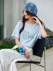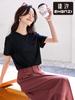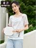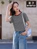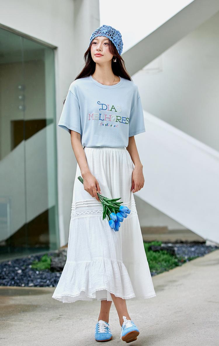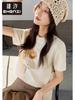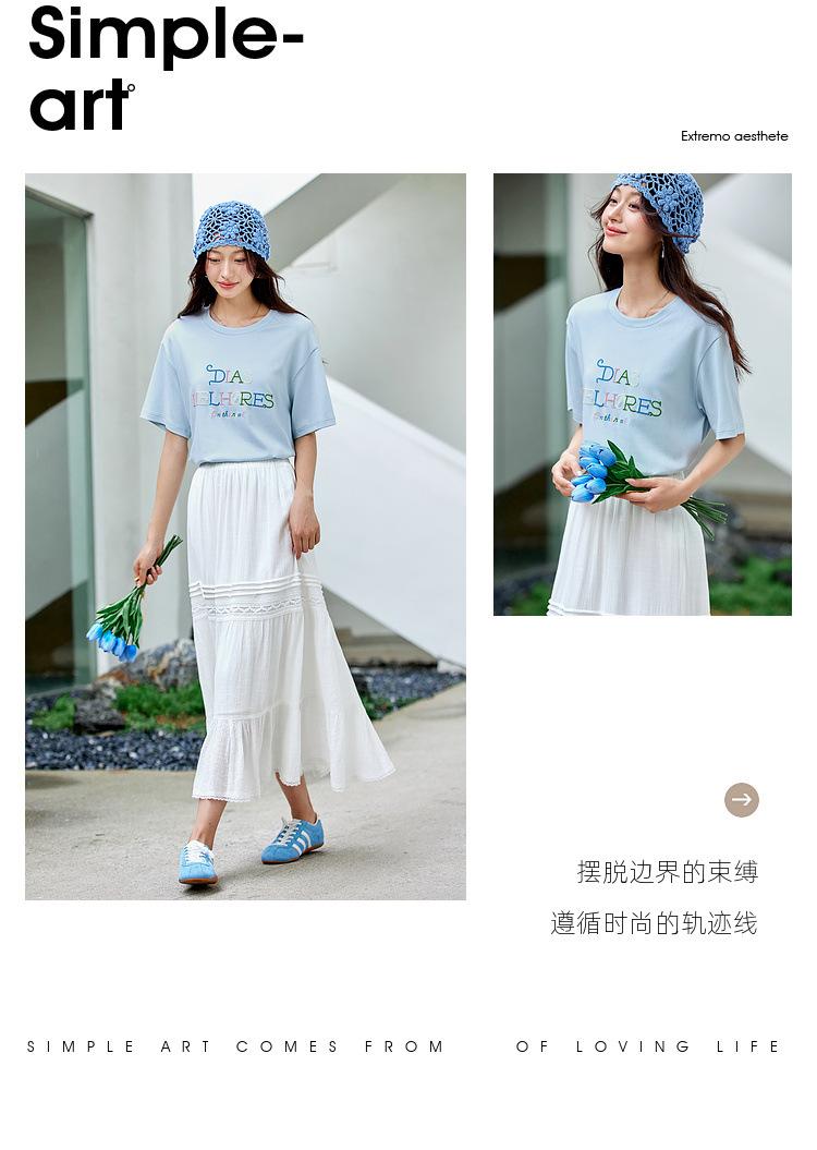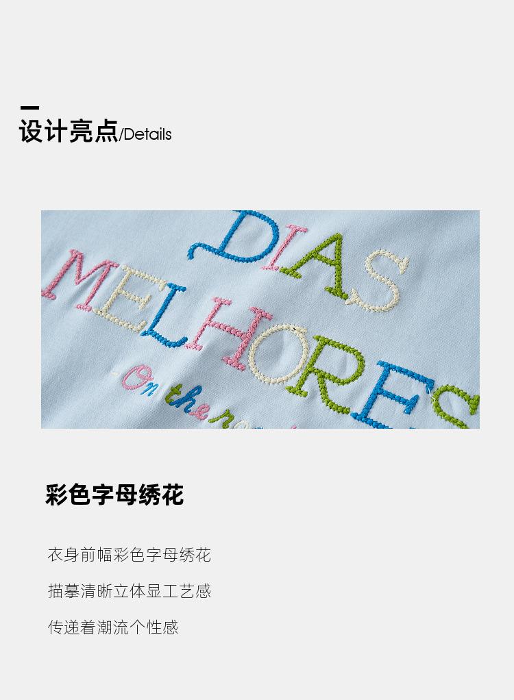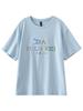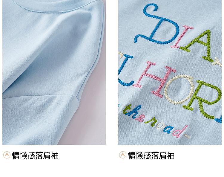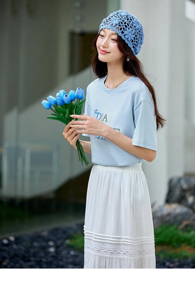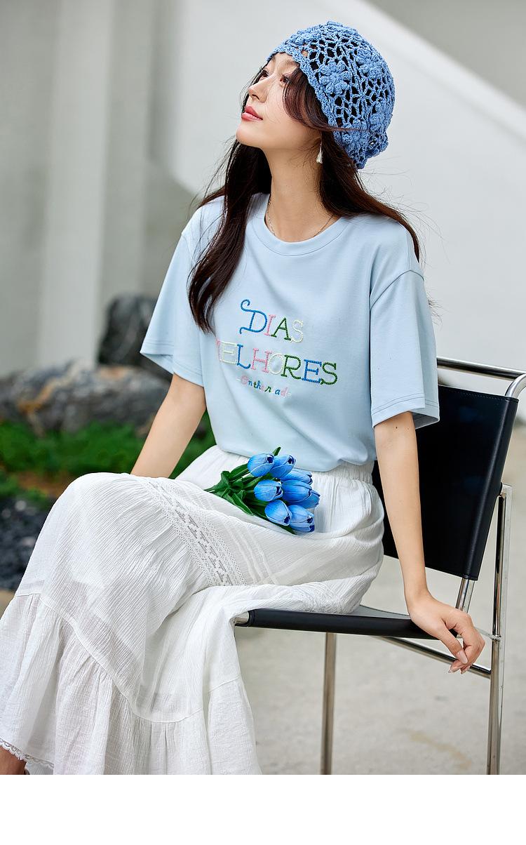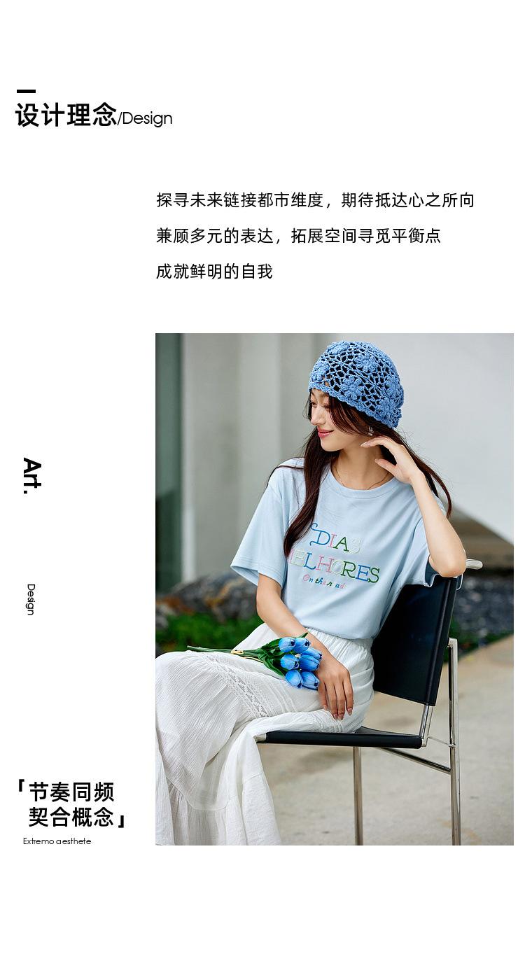 Zhenxi Nueva Carta Bordada Cuello Redondo Manga Corta Algodón Camiseta para Mujer Holgada Casual Versátil Top Sq916