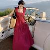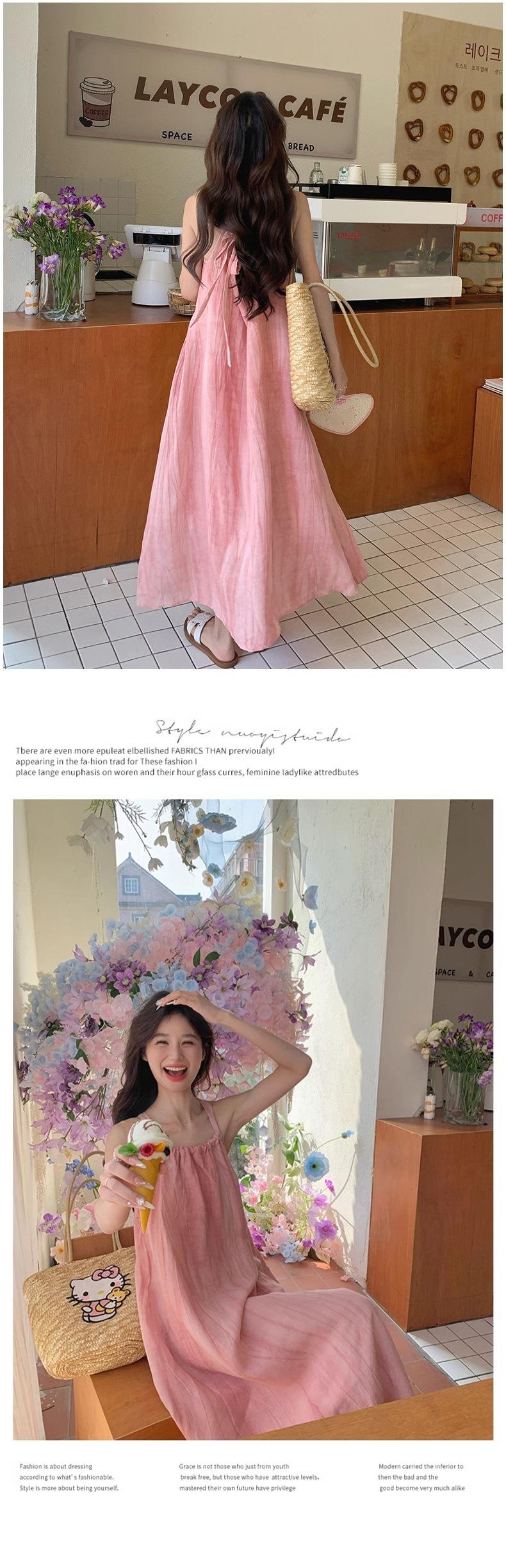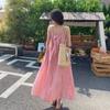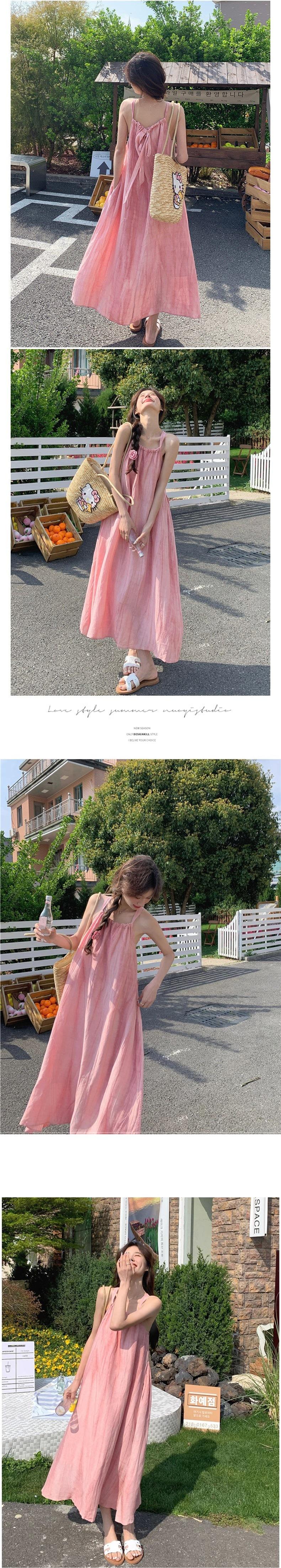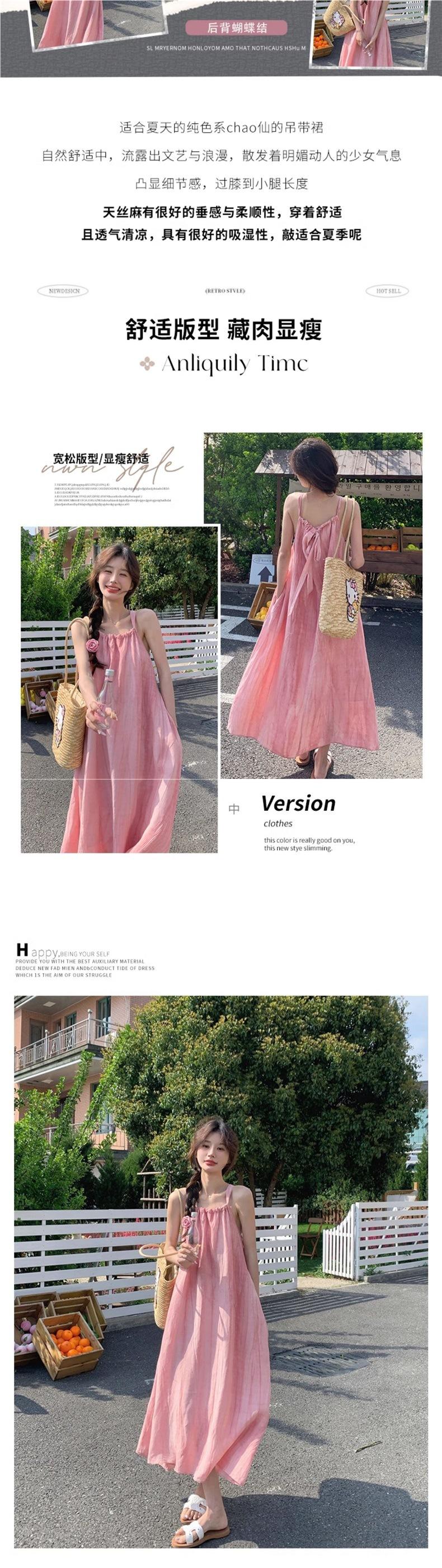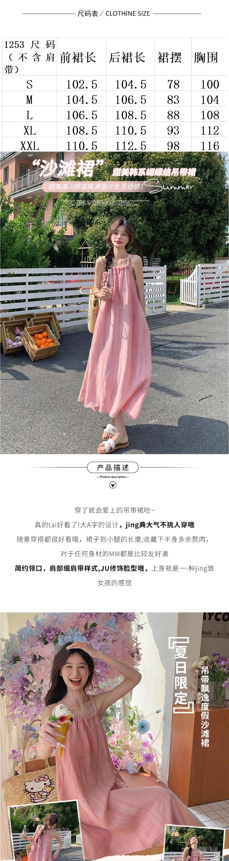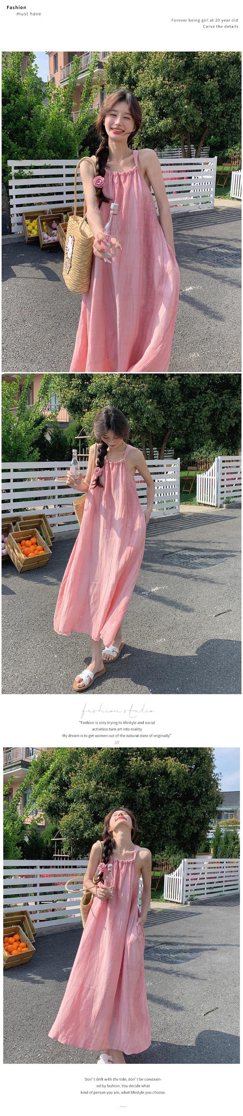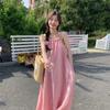 Vestido Largo de Tirantes Espagueti Rosa para Mujer Verano Nuevo Estilo Vacaciones en la Costa Vestido de Playa Sentido del Diseño Nicho Vestido a la Moda