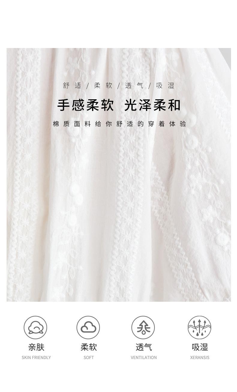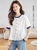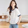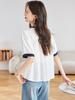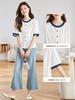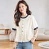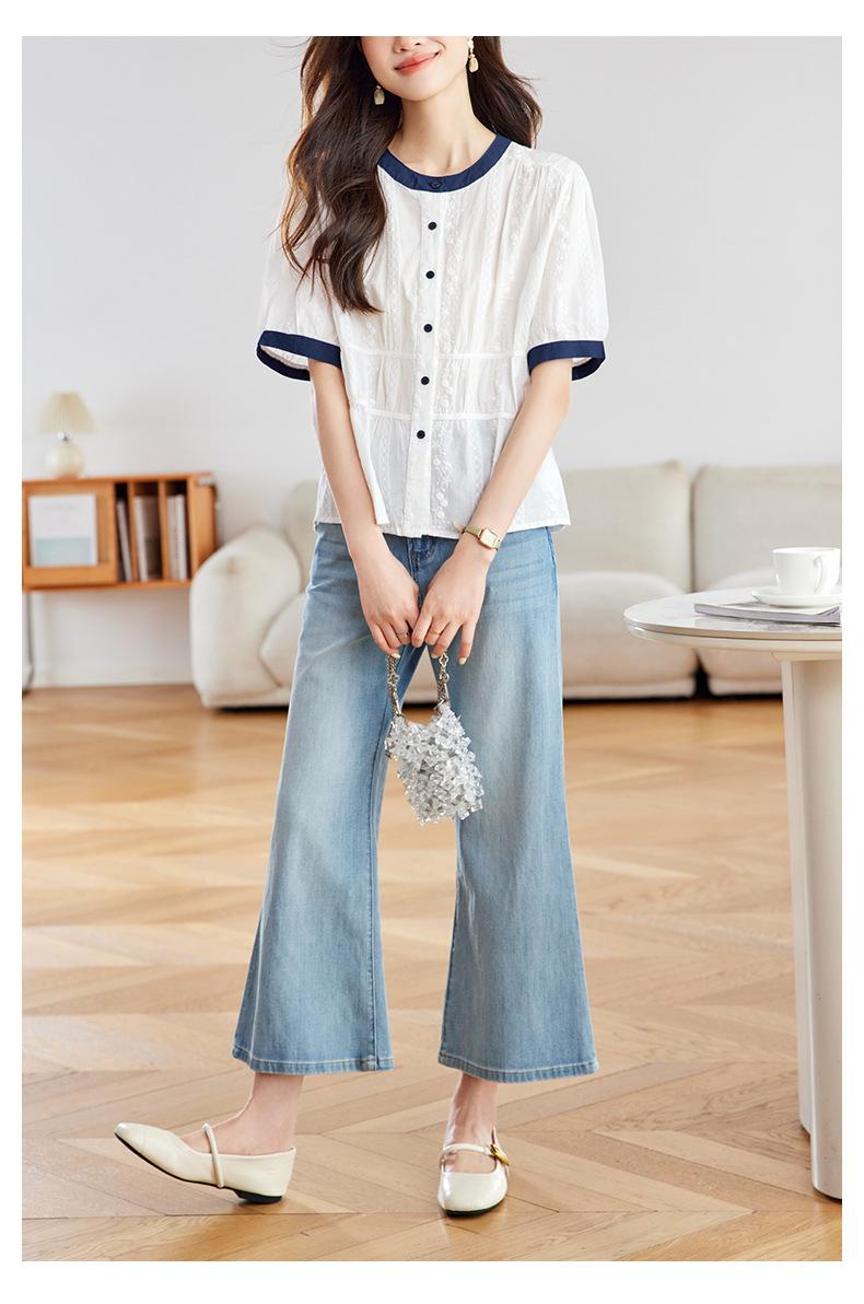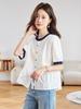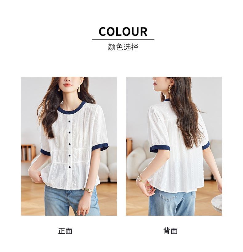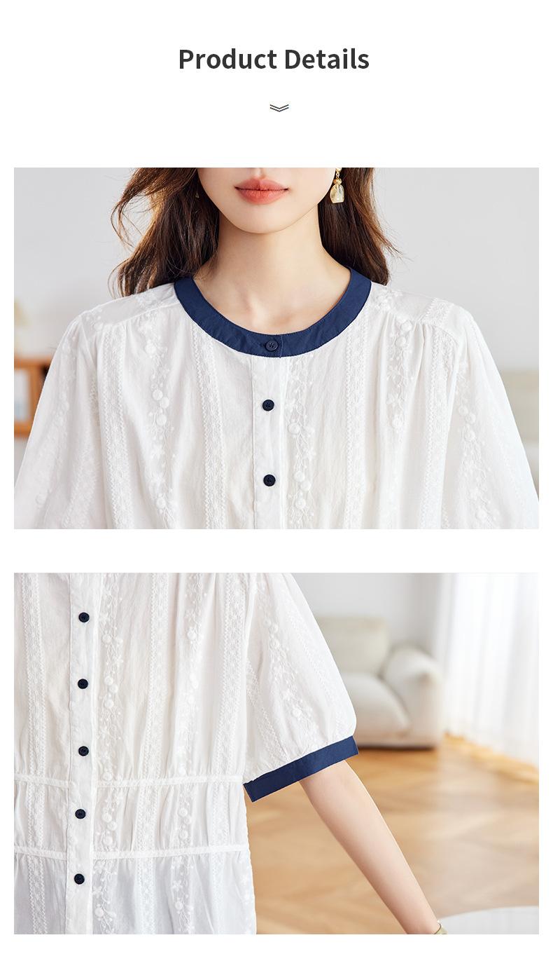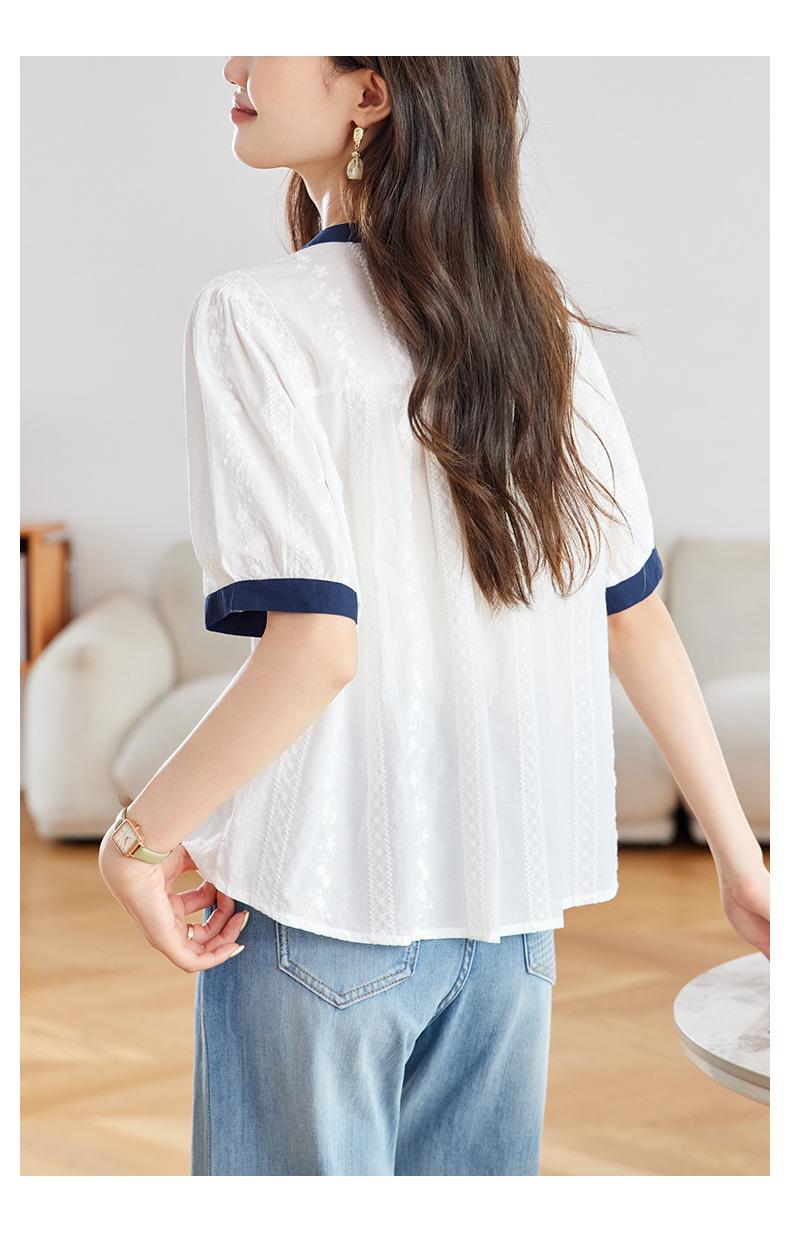 Camiseta de Algodón Capullo Bordado Cuello Redondo Manga Corta Mujer Verano 2025 Nuevo Temperamento Bloque de Color Camiseta Todo Algodón Blusa Casual