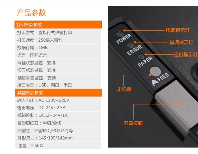 Impresora de Recibos Especial para Cocina Kemi 80mm Impresora de Recibos para Llevar Impresora Térmica con Cortador