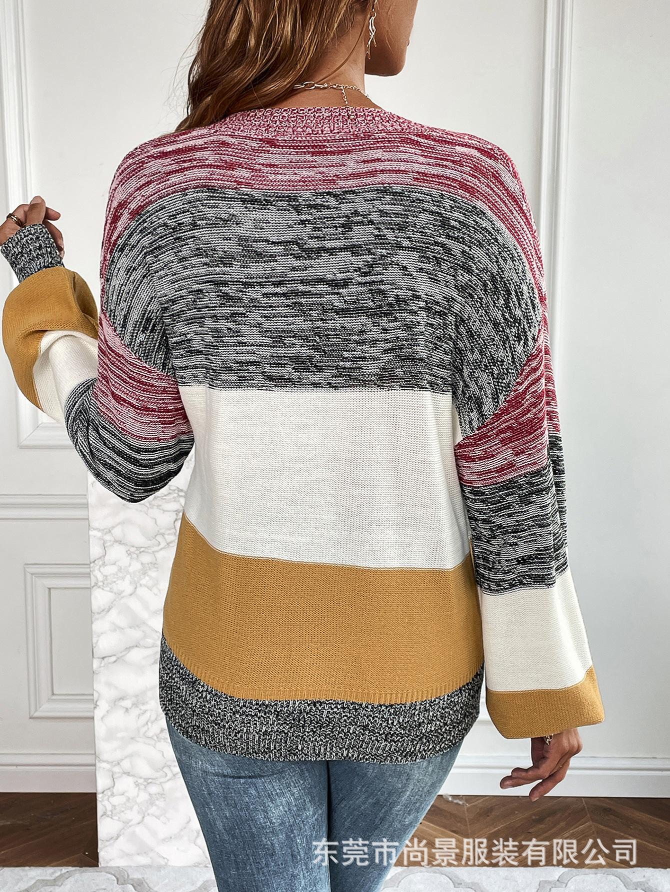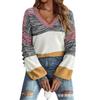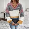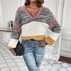 2025 Europeo y Americano Transfronterizo Nuevo Otoño e Invierno Jersey Cuello en V Suelto Suéter Bloque de Color Prendas de Punto para Mujer