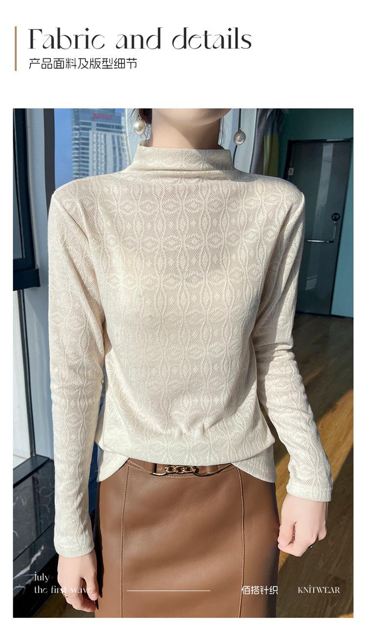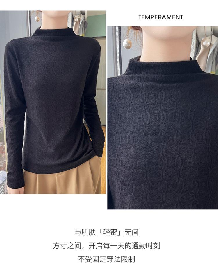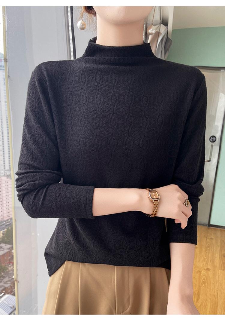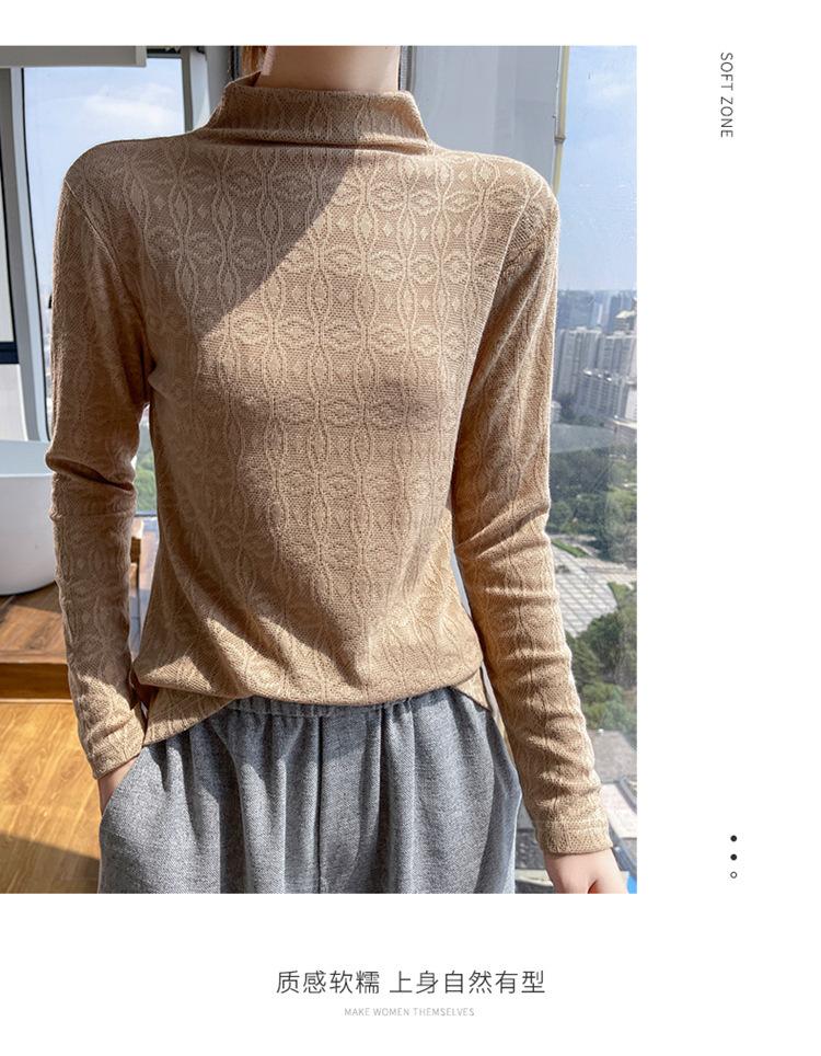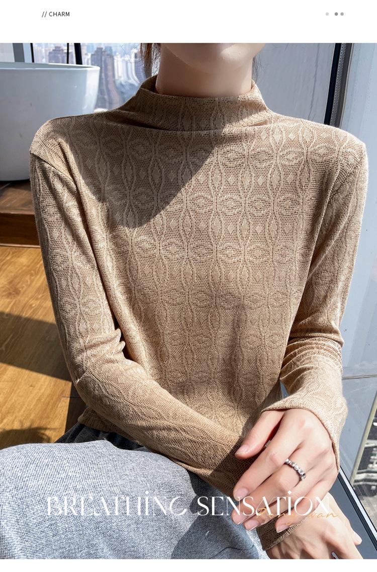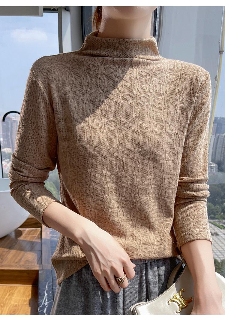 Jacquard Medio Alto Principios de Otoño Camiseta Base Cuello Redondo para Todo el Año Camiseta Tejida Diseño Sensorial Top Manga Larga Mujer Nuevo 24 Vintage Francés