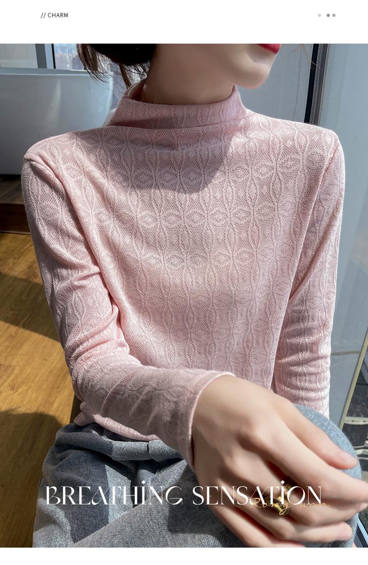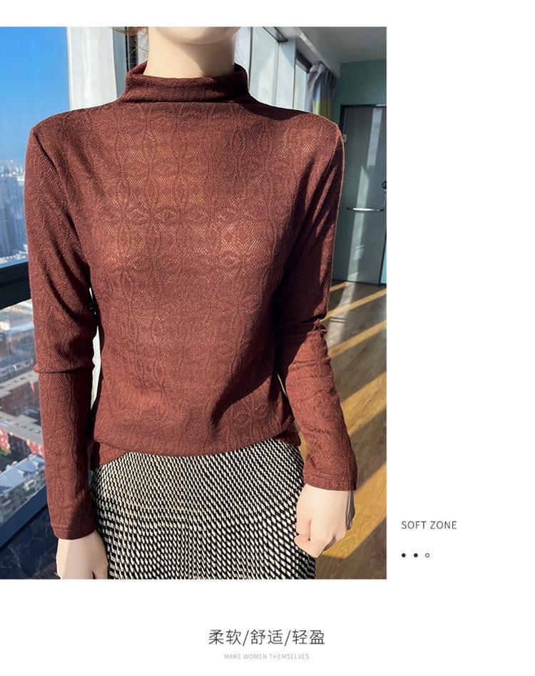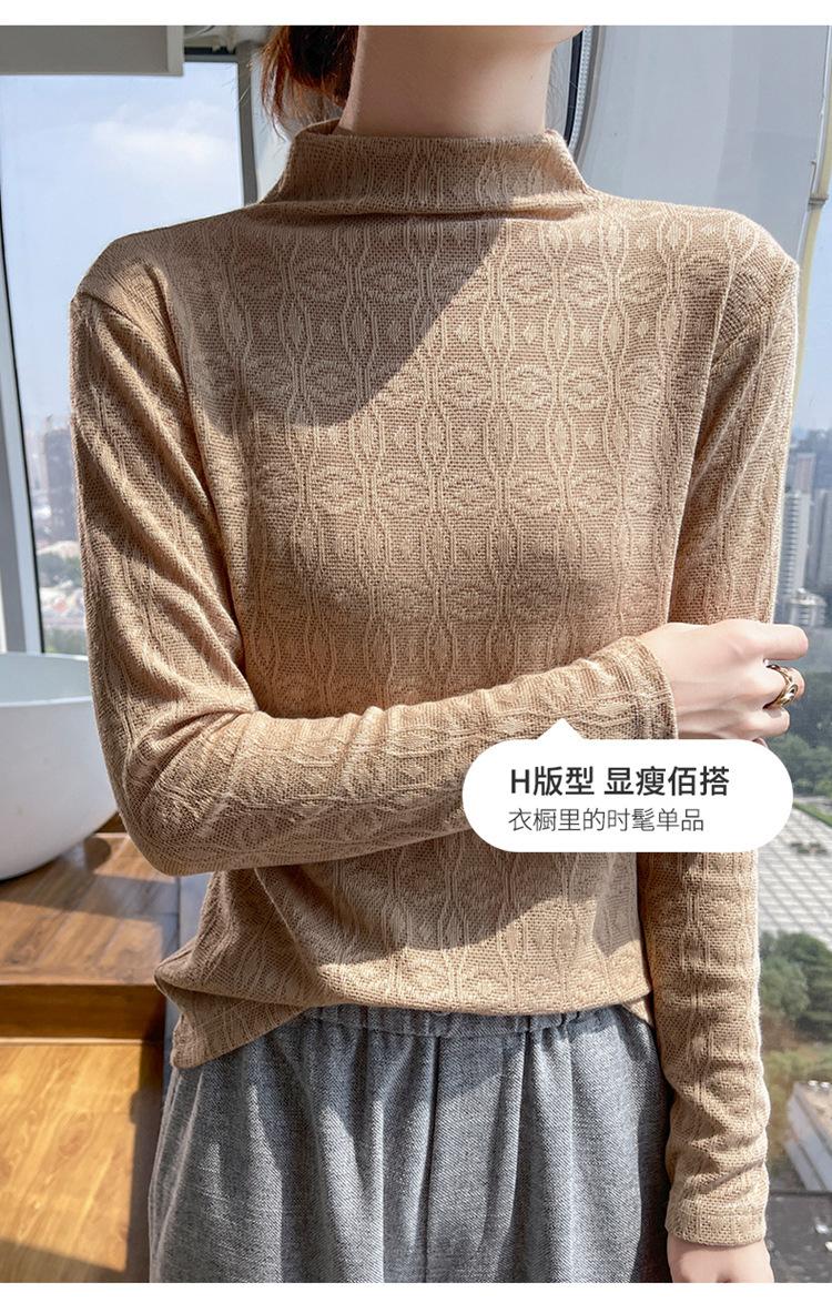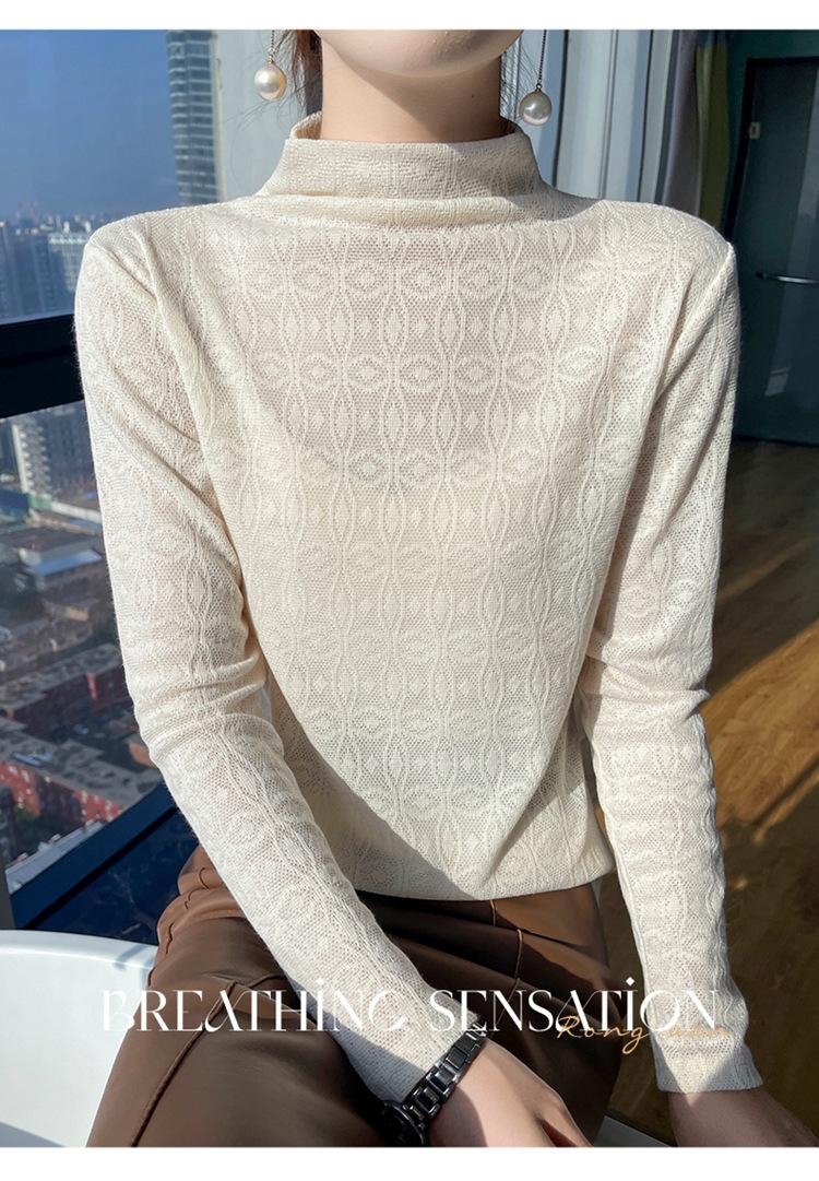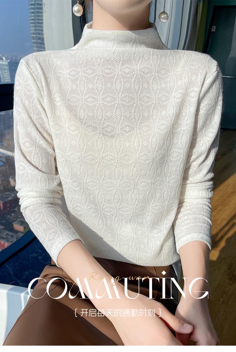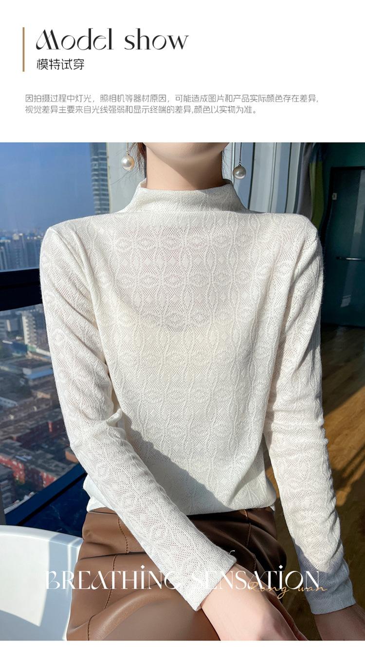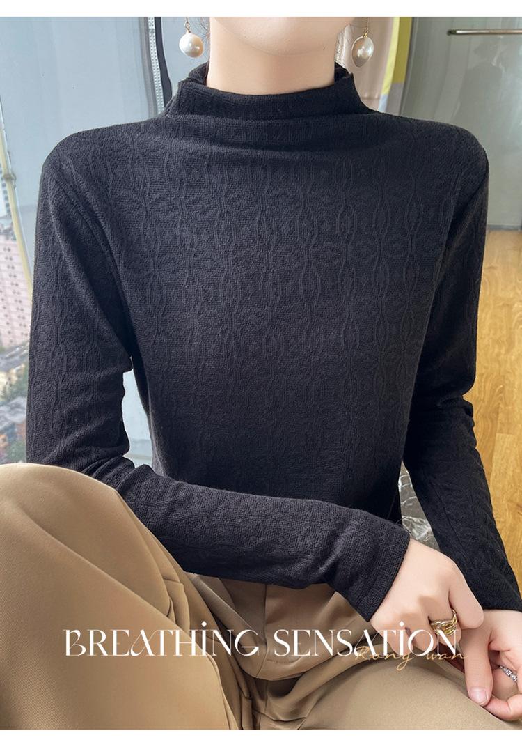 Jacquard Medio Alto Principios de Otoño Camiseta Base Cuello Redondo para Todo el Año Camiseta Tejida Diseño Sensorial Top Manga Larga Mujer Nuevo 24 Vintage Francés