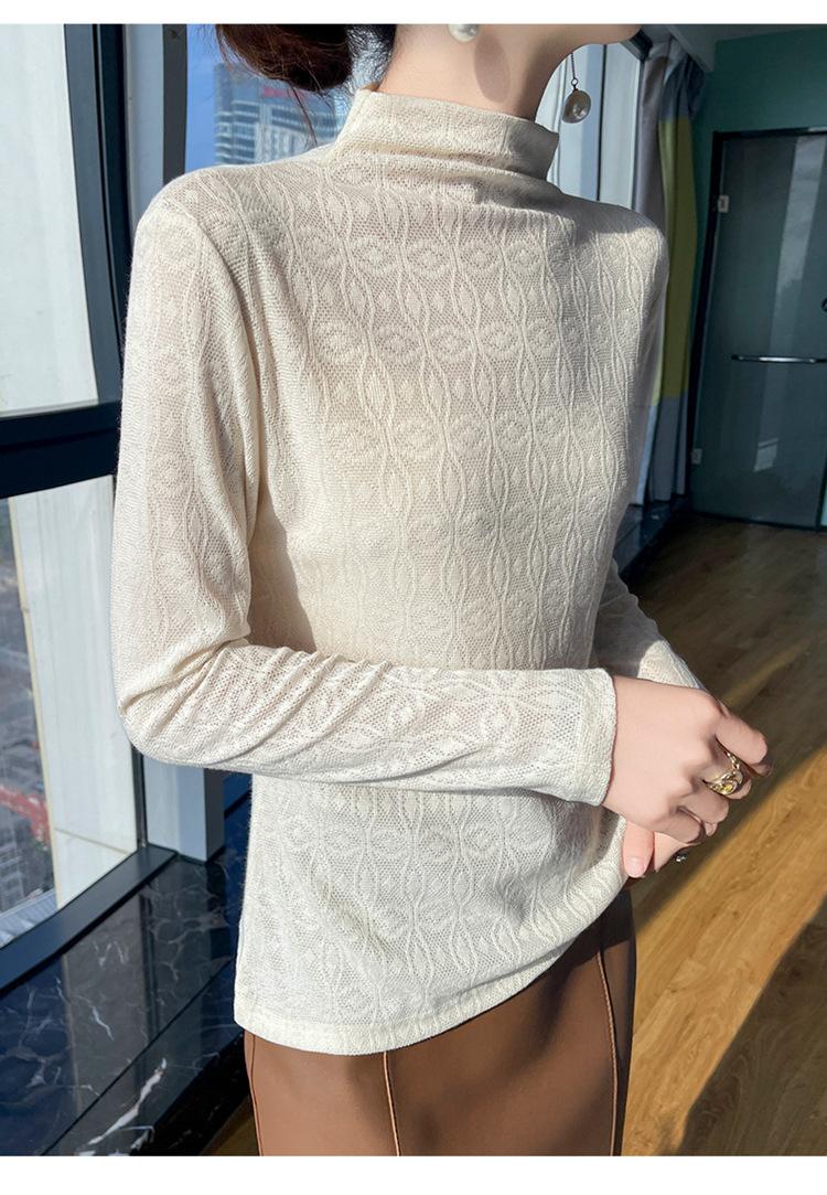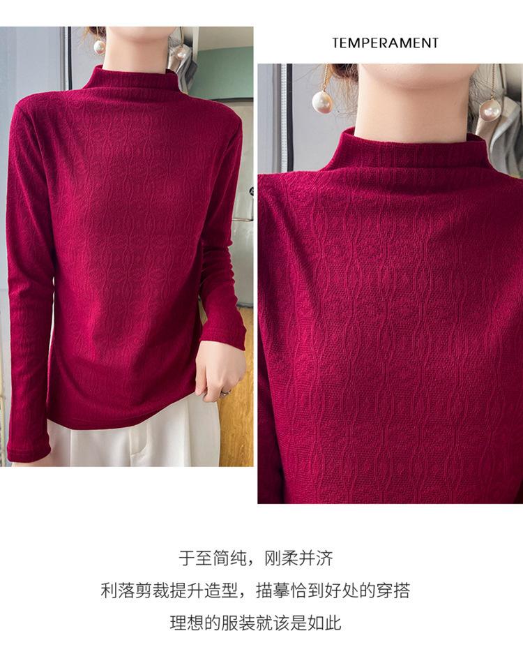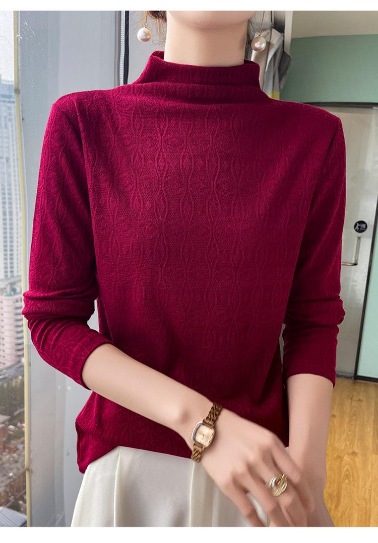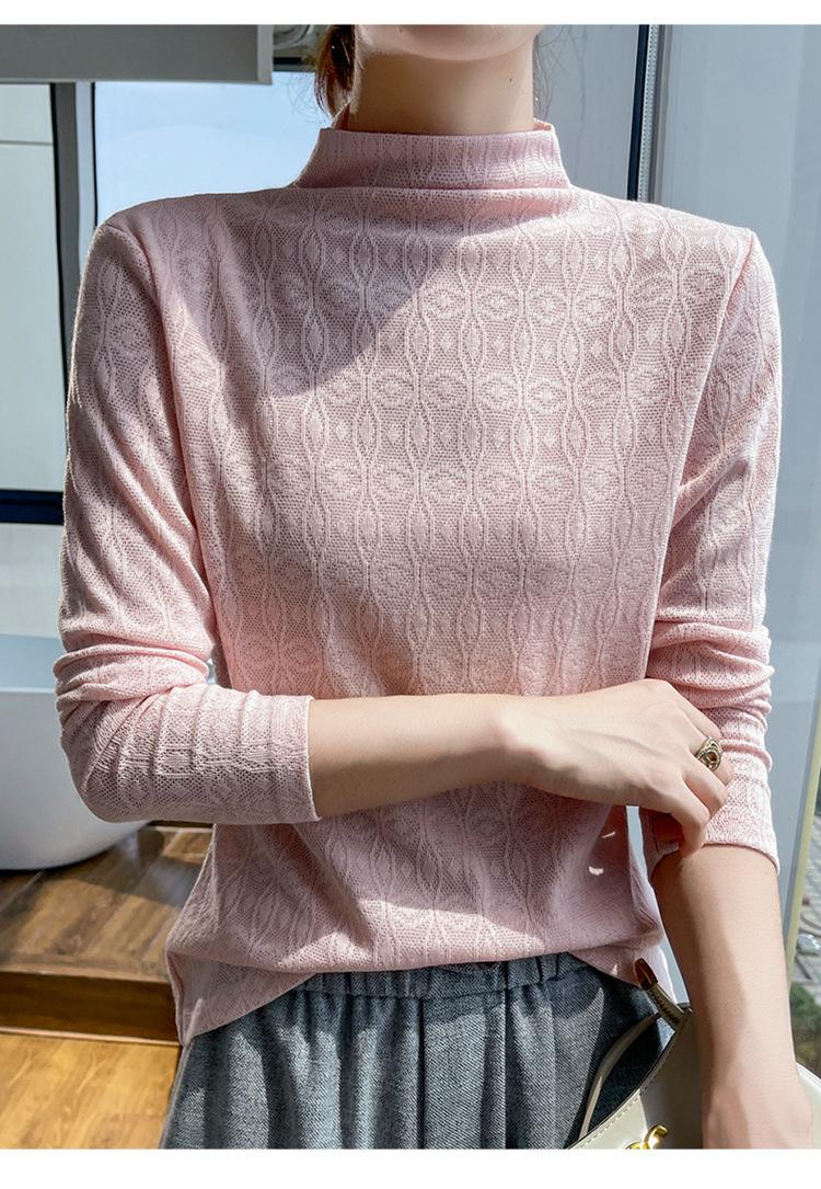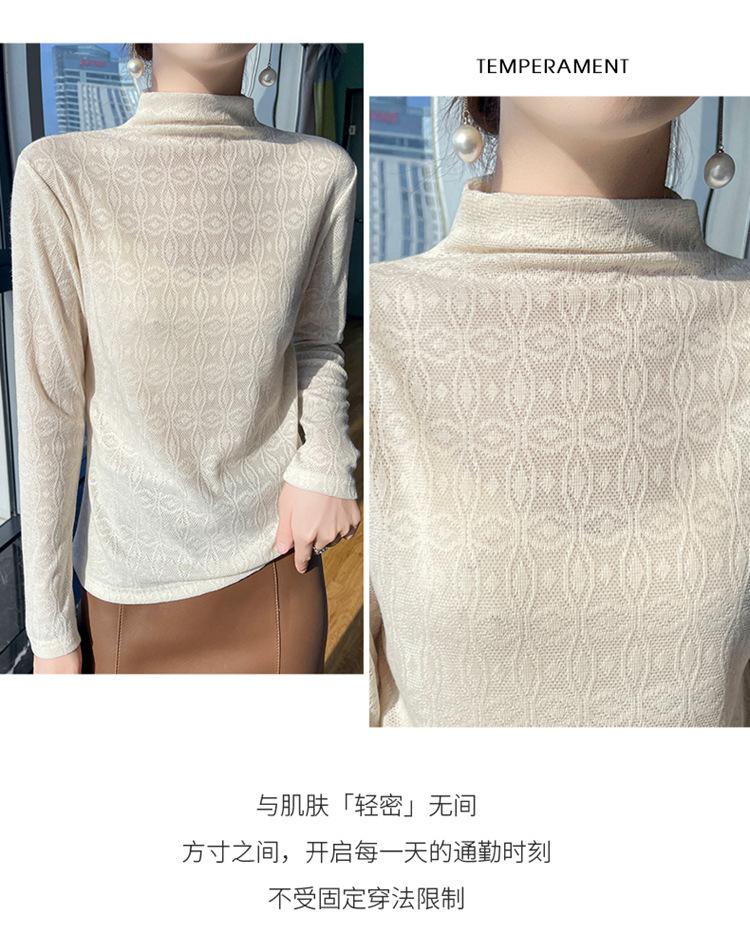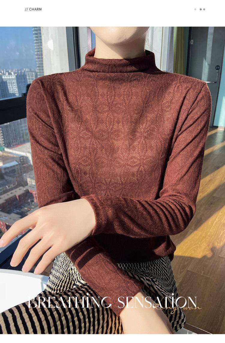 Jacquard Medio Alto Principios de Otoño Camiseta Base Cuello Redondo para Todo el Año Camiseta Tejida Diseño Sensorial Top Manga Larga Mujer Nuevo 24 Vintage Francés
